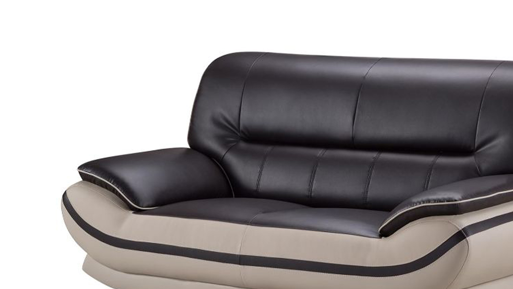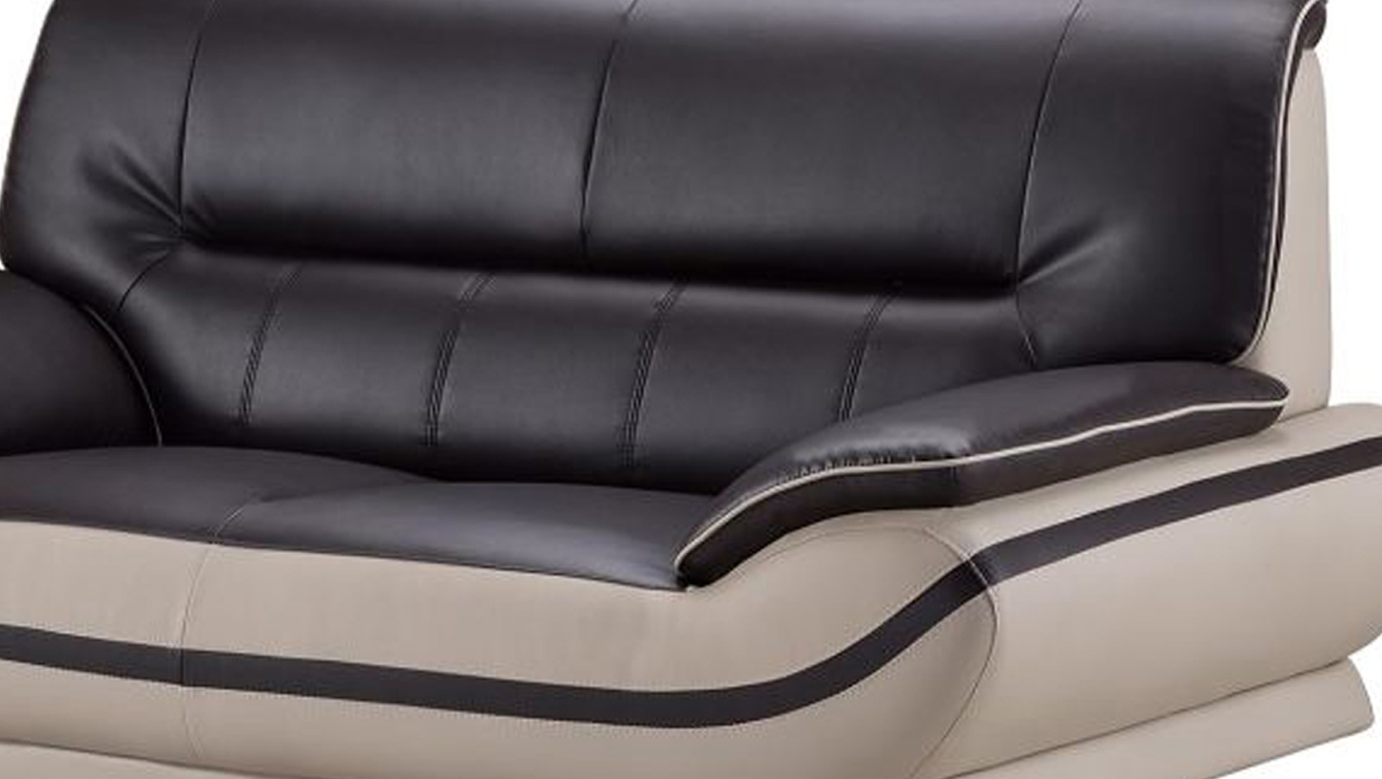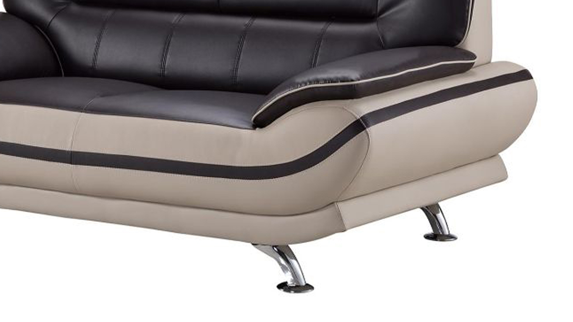 Add a stylish and modern sophistication to your home with this luxurious loveseat, designed in contemporary style. Constructed from quality wood, this loveseat features a premium black color faux leather upholstered scooped seat with gray colored straight back with tufted cushioning, providing comfortable seating. Pillow top armrests with contrast welt trim details add an elegance to this loveseat while the stainless steel constructed slender legs in silver finish offers great support and sturdiness to the whole structure. Perfect to be placed in your living room for great seating experience.