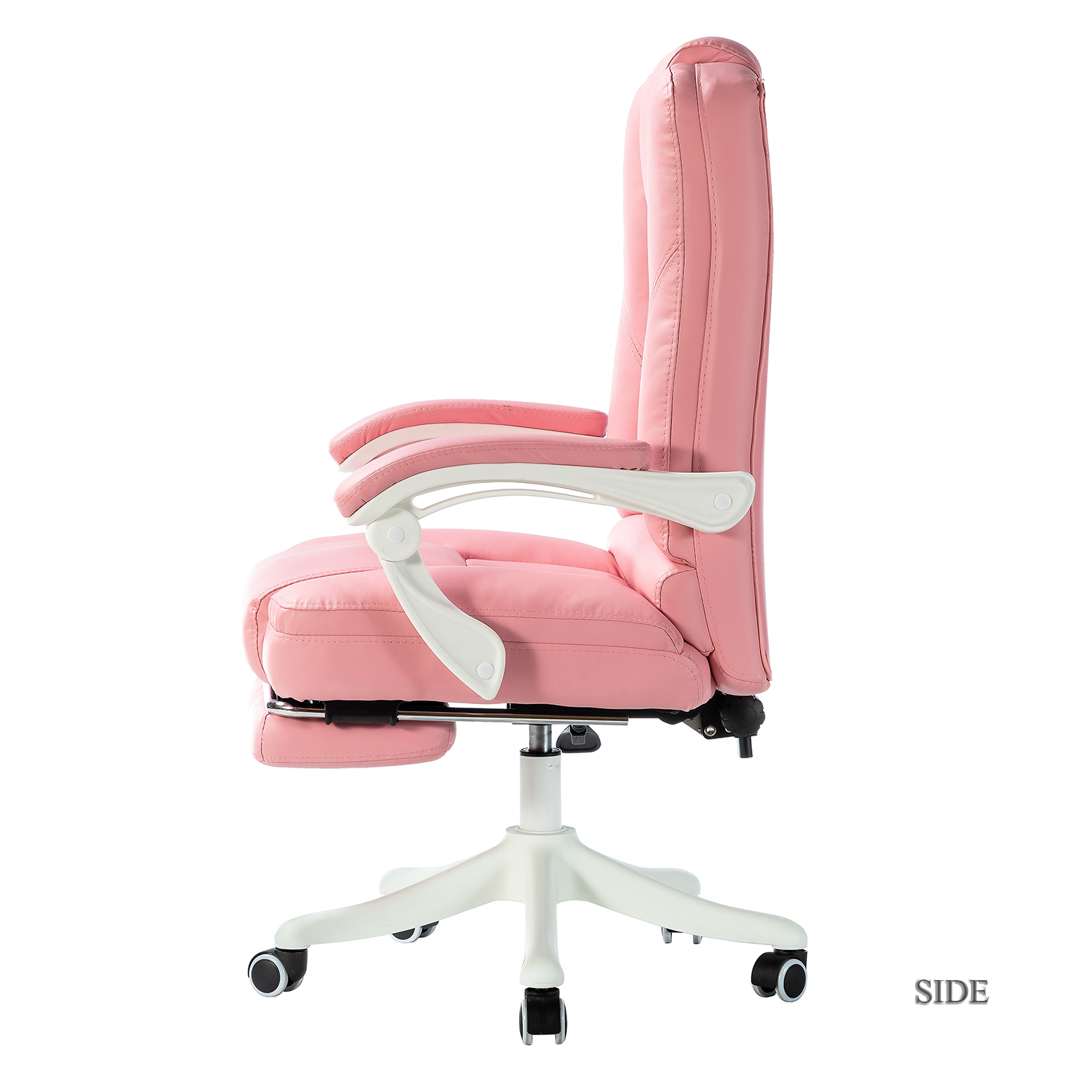 Our chairs are crafted to perfection and designed to the bodies natural shape, you will find complete comfort with its furniture quality faux leather. Designed in an ergonomic style with contoured segmented padding, a high back, and integrated headrest, this chair provides high-performance comfort whether used during intense gaming sessions or long workdays. The chair tilt and lift levers are located on the right, beneath the chair, and the armrests are padded for elbow relief. A 150-degree recline angle at the maximum, with infinite angle lock, allowing you to choose your best angle. Put your feet up and relax with a built-in extendable footrest. Additional features include seat height adjustment and 360-degree swivel. Faux Leather and contrasting color upholstery complete the modern, high-quality look. The gaming chair with a sturdy and ergonomic structure includes a 220-pound weight capacity for long-lasting use. The comfort, style, and competitive price of this chair make it a perfect addition to your home or office.