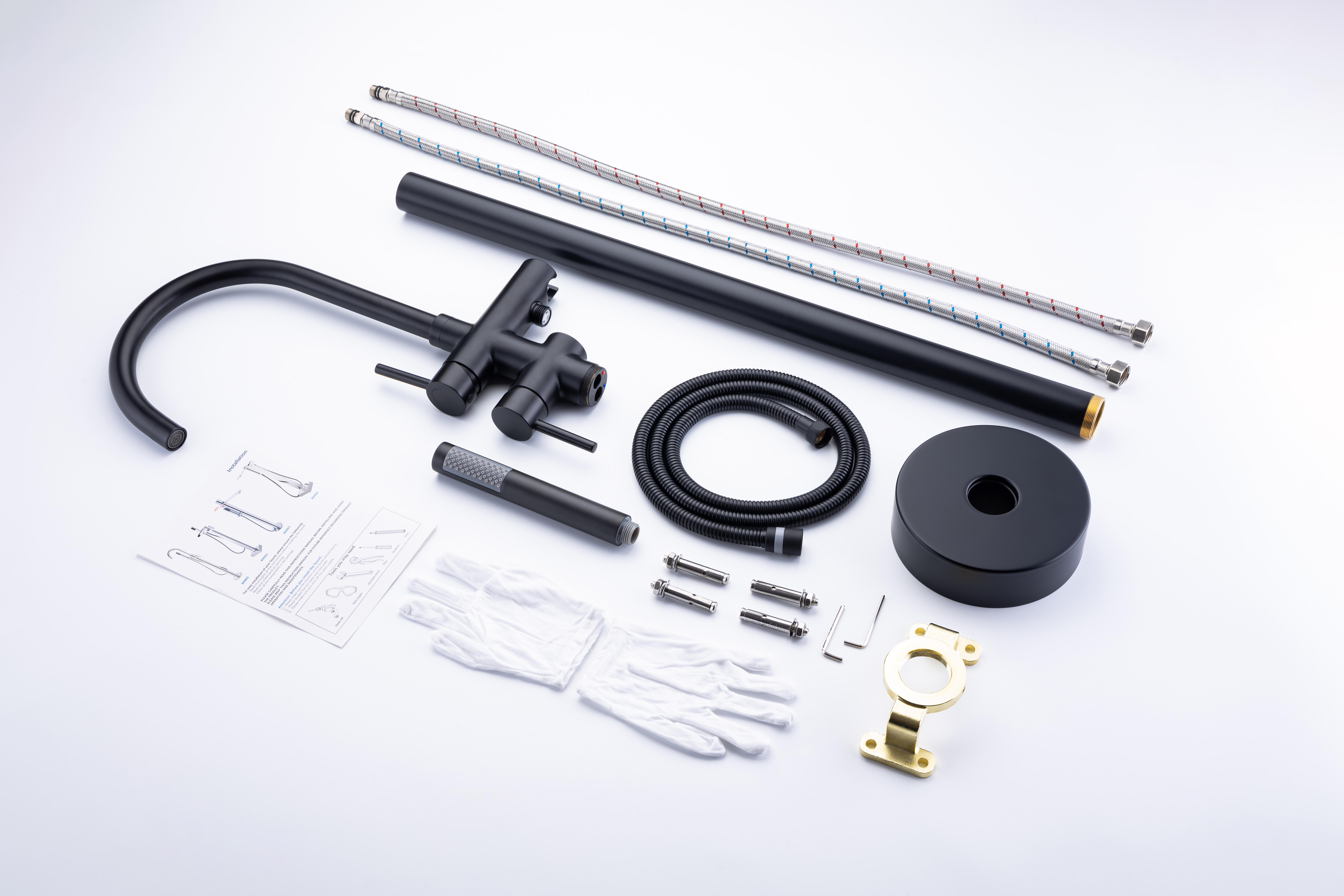 【What's Included】bathtub faucet body, brass faucet tube, handheld shower, cold and hot hose, base cover, mounting hardware and installation instruction.