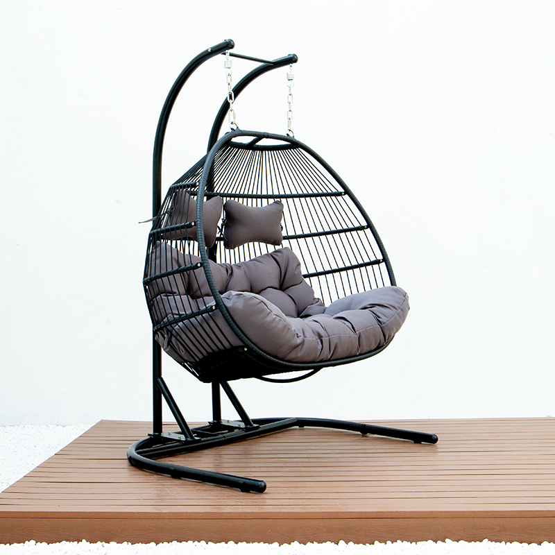 This porch swing chair has a folding feature for easy storage. The chair fits 2 people comfortably and was built to last in the outdoors with its strong durable iron frame it will be perfect for all weathers. This unique swinging Chair is the perfect addition to any space outside, a backyard patio, deck, in a sun-room or garden, or near a pool, or outdoor Bar.
