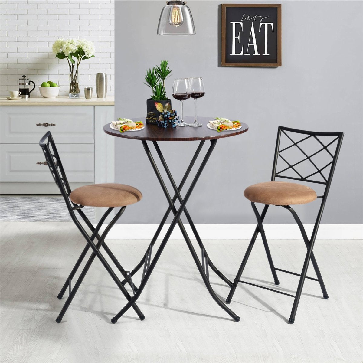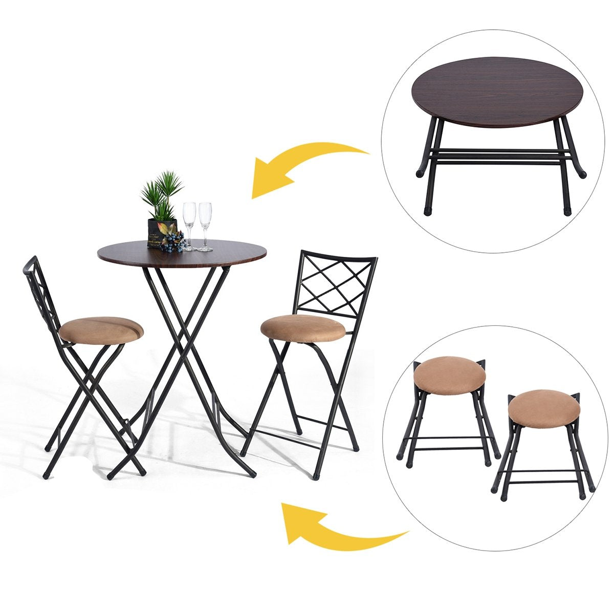 This is our brand new 3-piece Bistro set which add a fashion style to your home, garden or patio. It includes a folding sturdy round table and 2-folding armless chairs. With premium painted metal construction, this set is sturdy and durable, rust-resistant and UV-resistant, bringing new life to your patio or deck. It is the perfect way to enjoy a cafe-style experience right outside of your door with this set. Besides, it is easy to wipe clean with normal household wipes. You can enjoy meals, drink with this set and have a good leisure time. Don't hesitate to buy one set now.