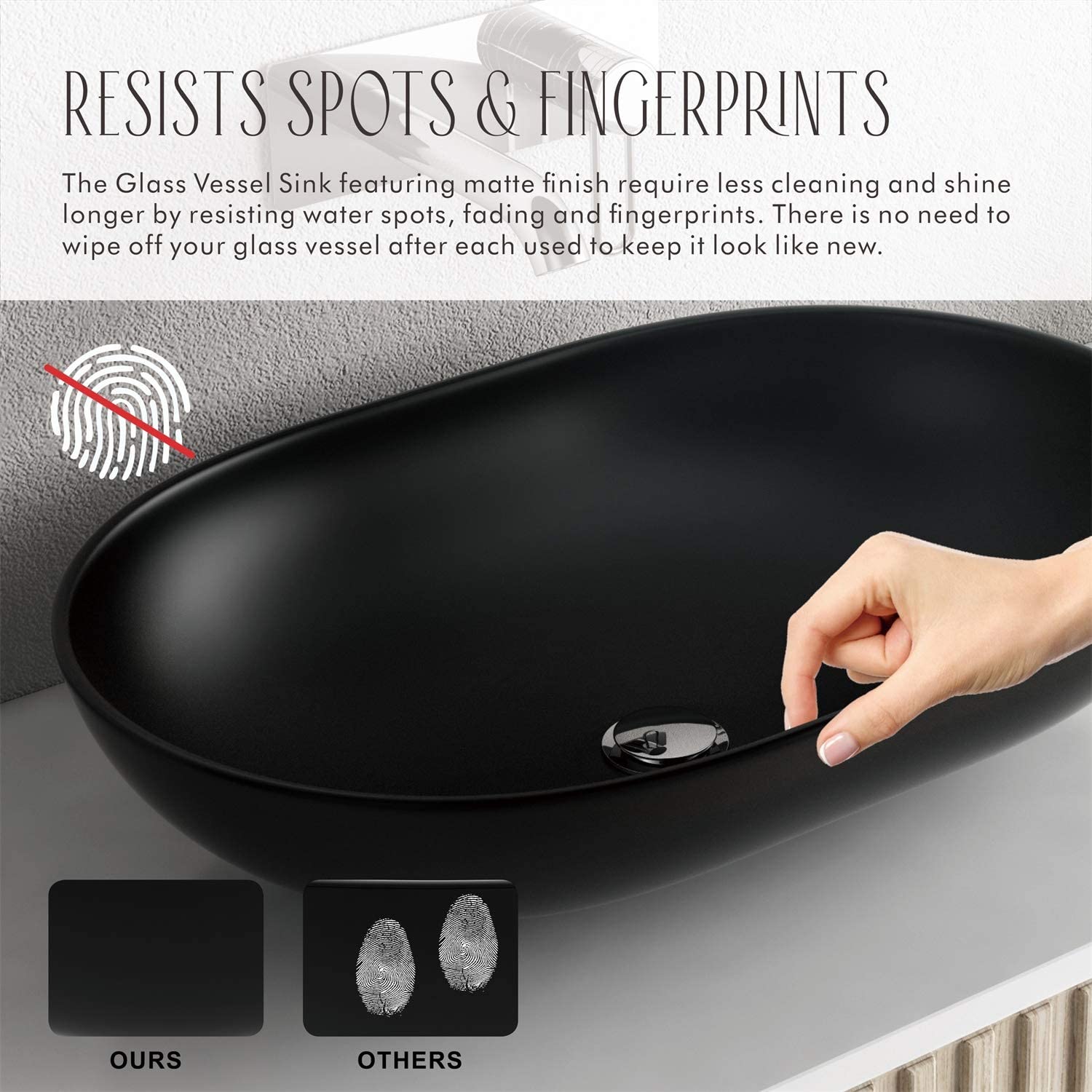 [EASY TO CLEAN]: The scratch-tough and stain-resistant smooth surface makes the glass vessel sink easy-to-clean and low maintenance.