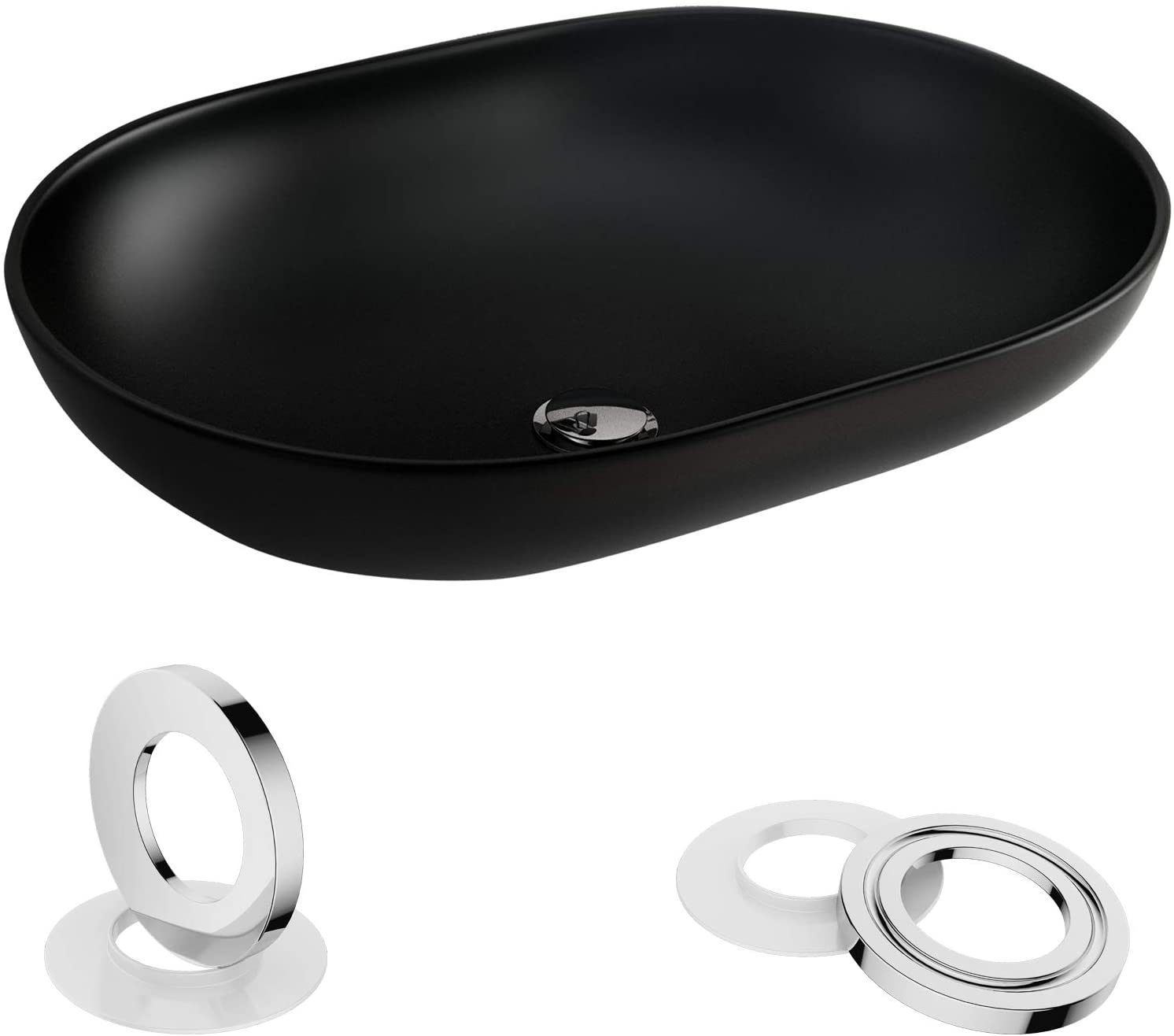 [Hassle-free Installation]: The glass vessel sink comes complete with a standard sized (1-3/4” diameter) drain opening, allowing for the use of any standard, non-overflow type drain. Can be mounted either above-counter or partially recessed into the countertop.