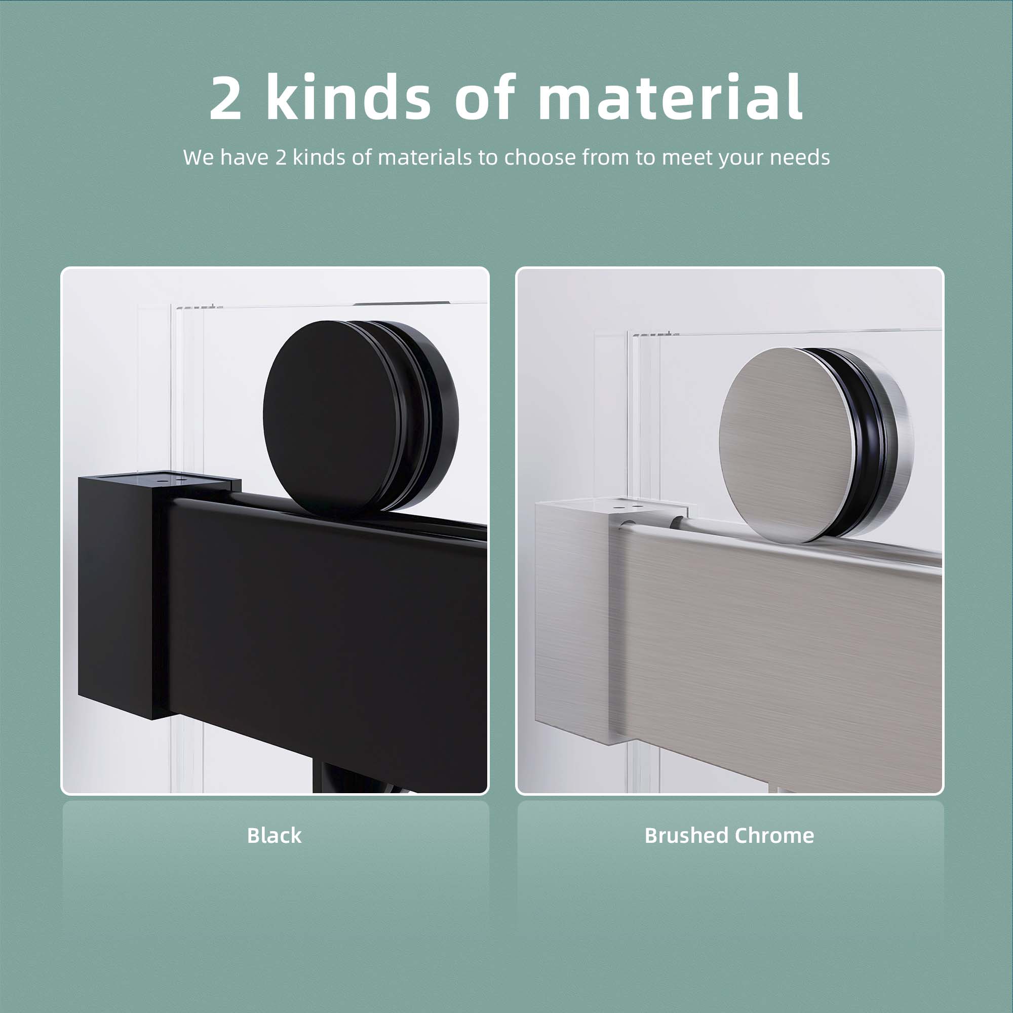 - 3. Premium Quality Hardware: this shower door build in premium quality top guide rail, it's super sturdy and stable. 304 stainless steel large wheel assembly with an anti-jump system creates effortless sliding operation, durable and long-lasting, and will not rust, chip, or scratch off. new design wall mount bracket with anti-collision effect, simple design, and more safety.