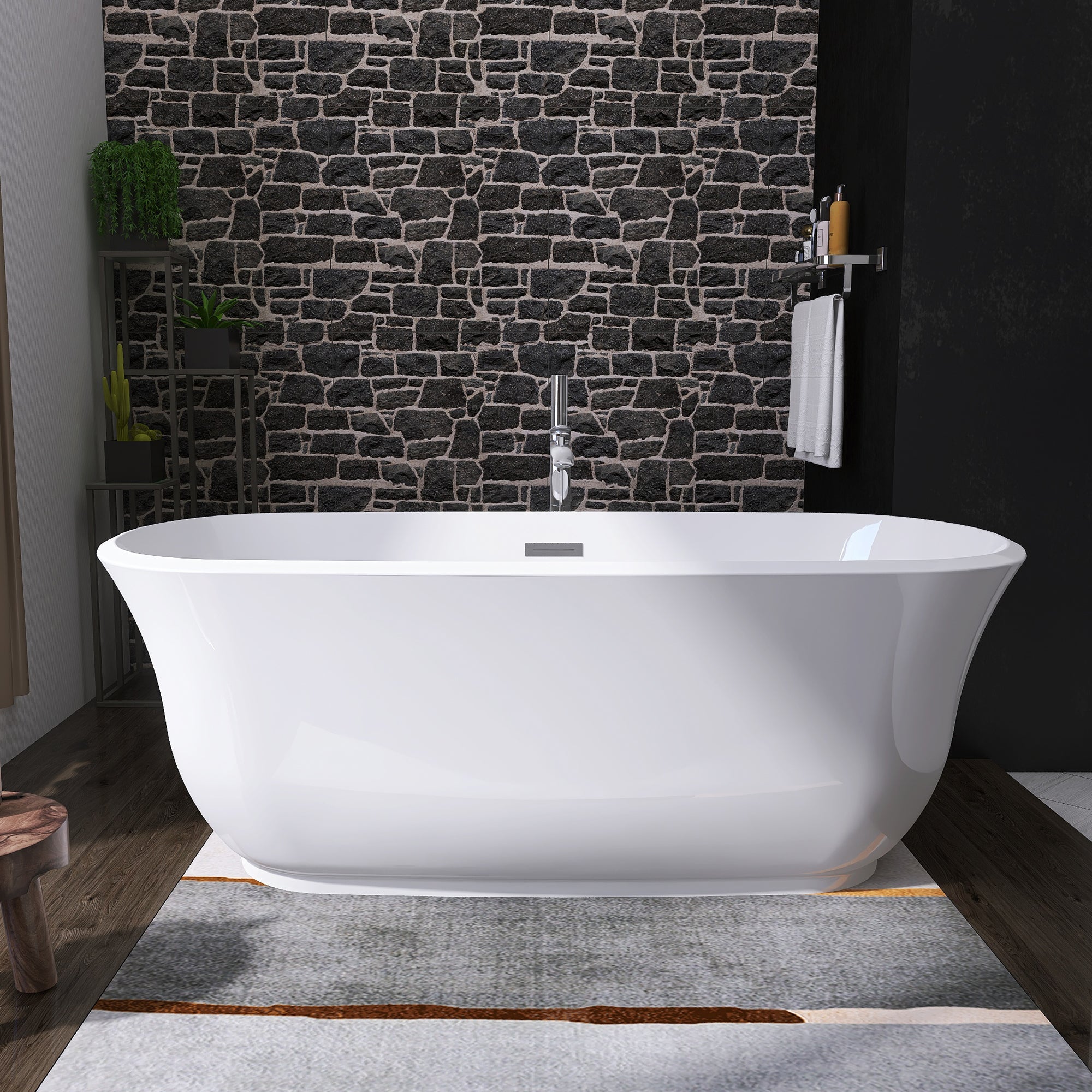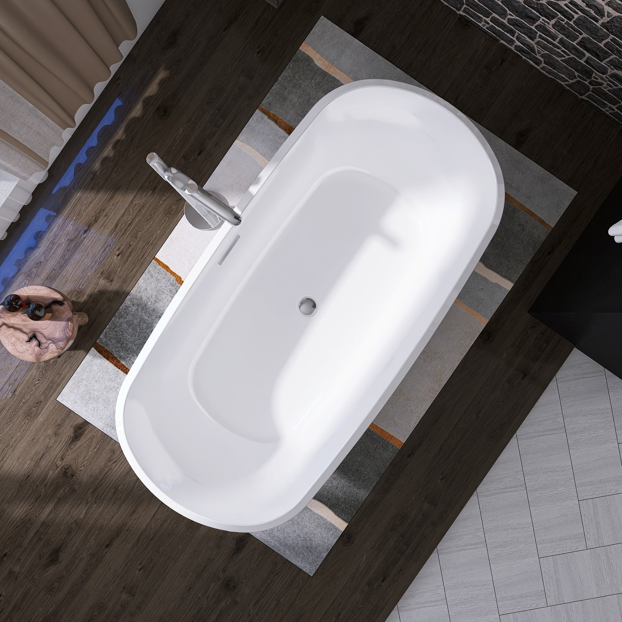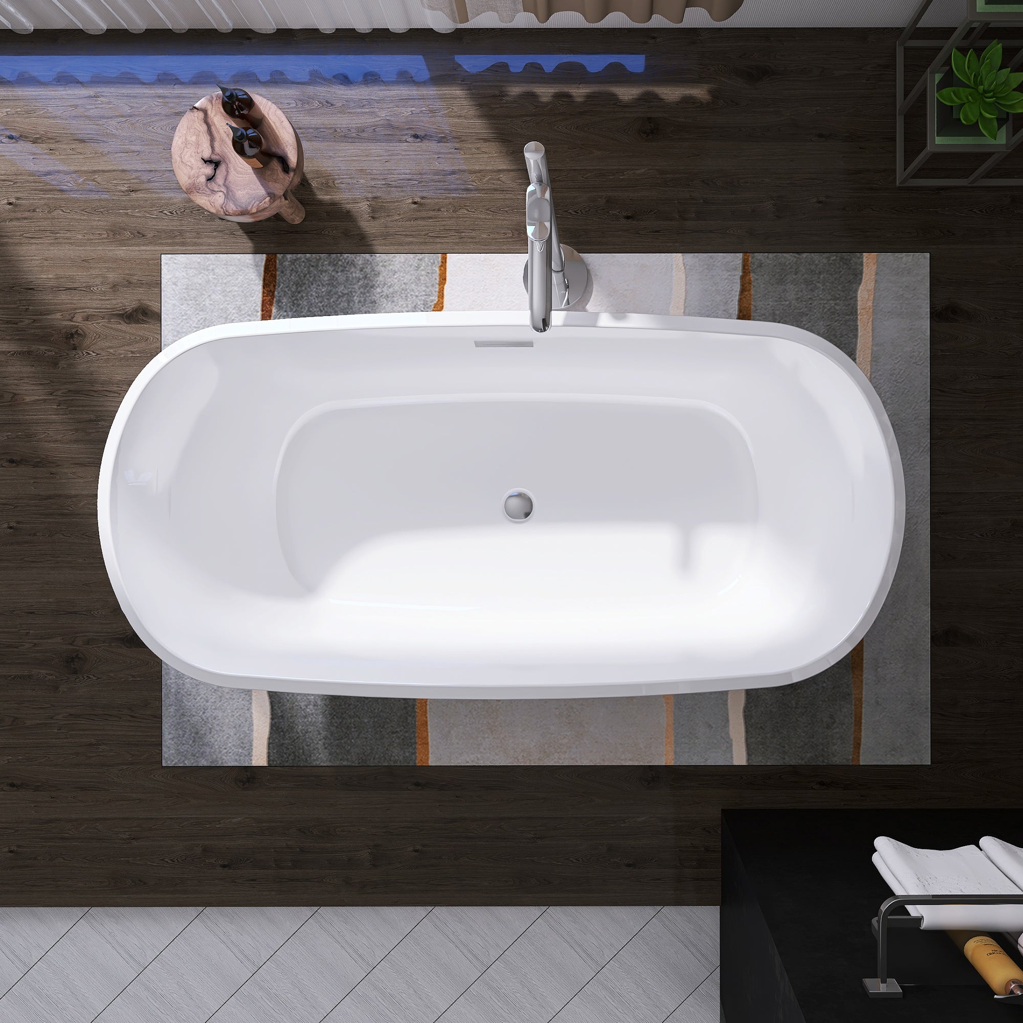 Freestanding Bathtub Non-Yellow Anti-Slip Oval Acrylic Shaped Soaking Tub for Bathroom with Drain & Overflow