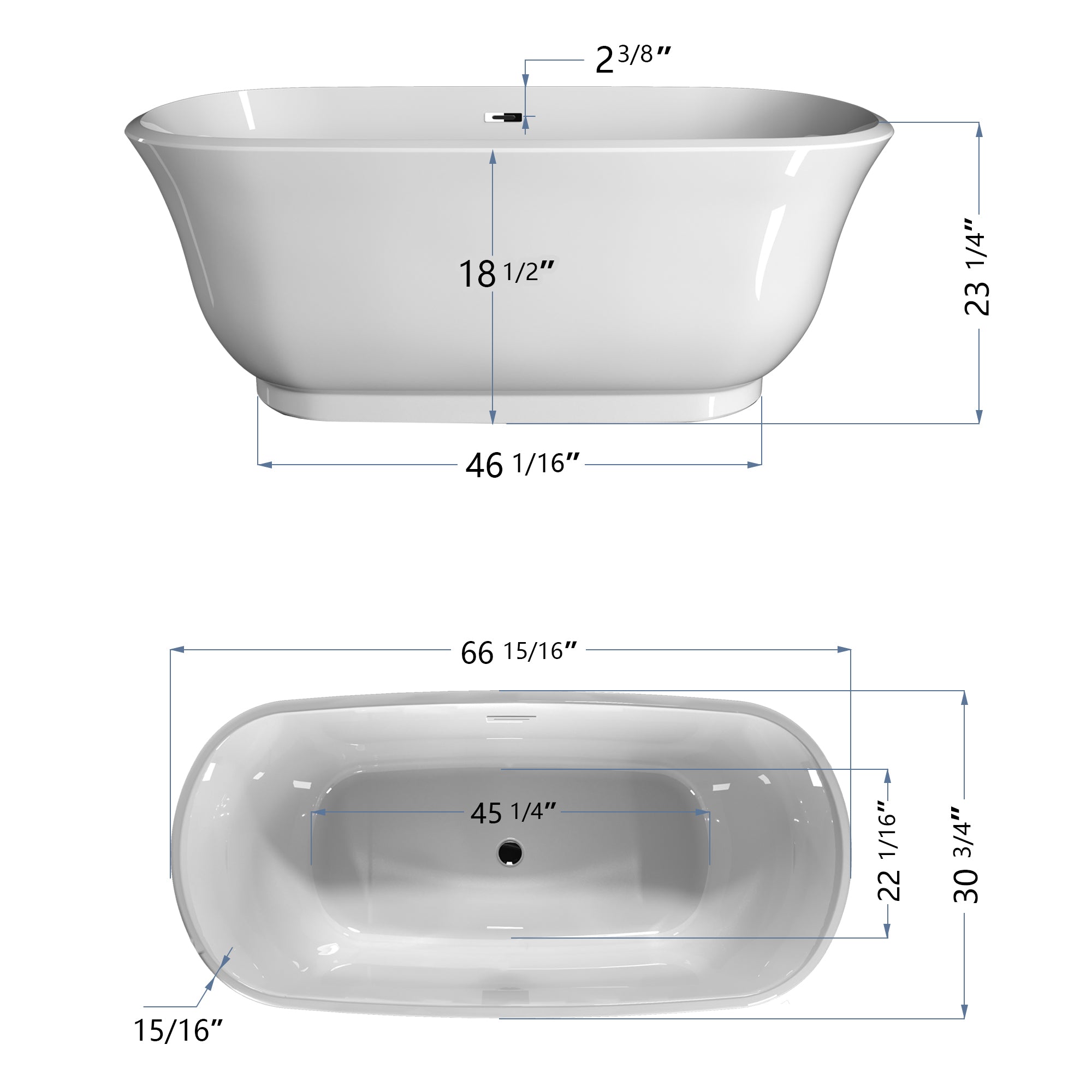 High-end material: Environment-friendly acrylic material as body with rust-proof stainless steel overflow and drain consist our long-service time bathtub.