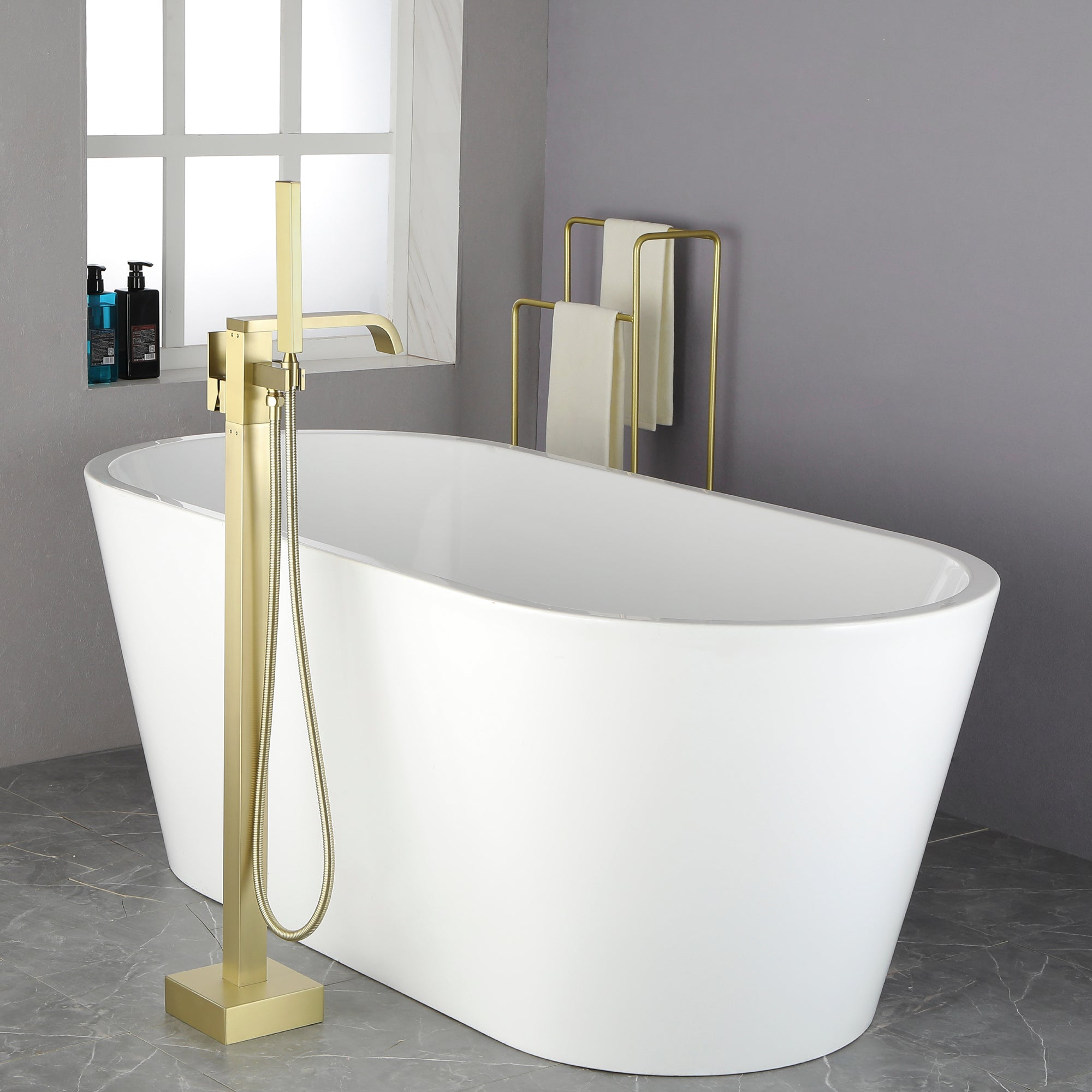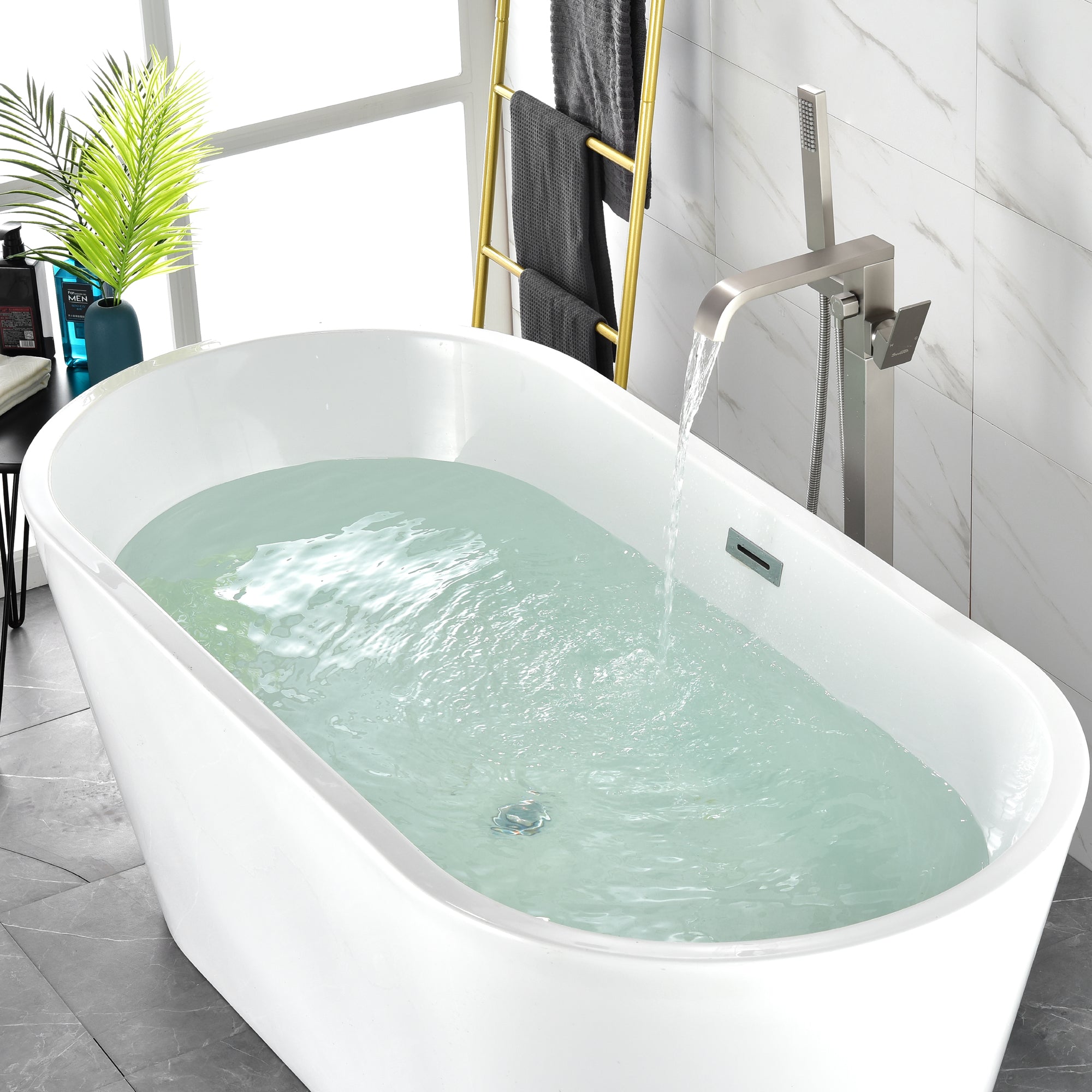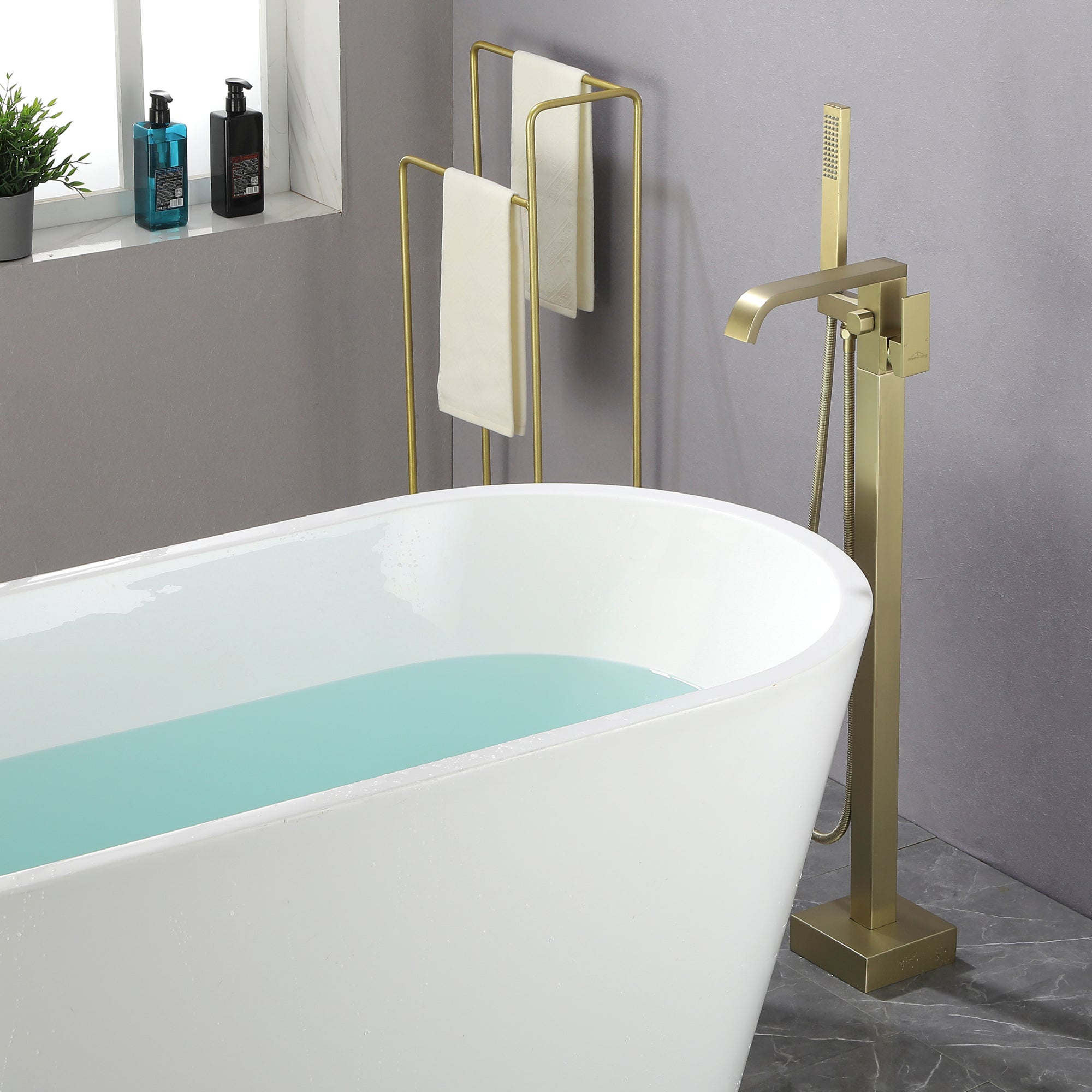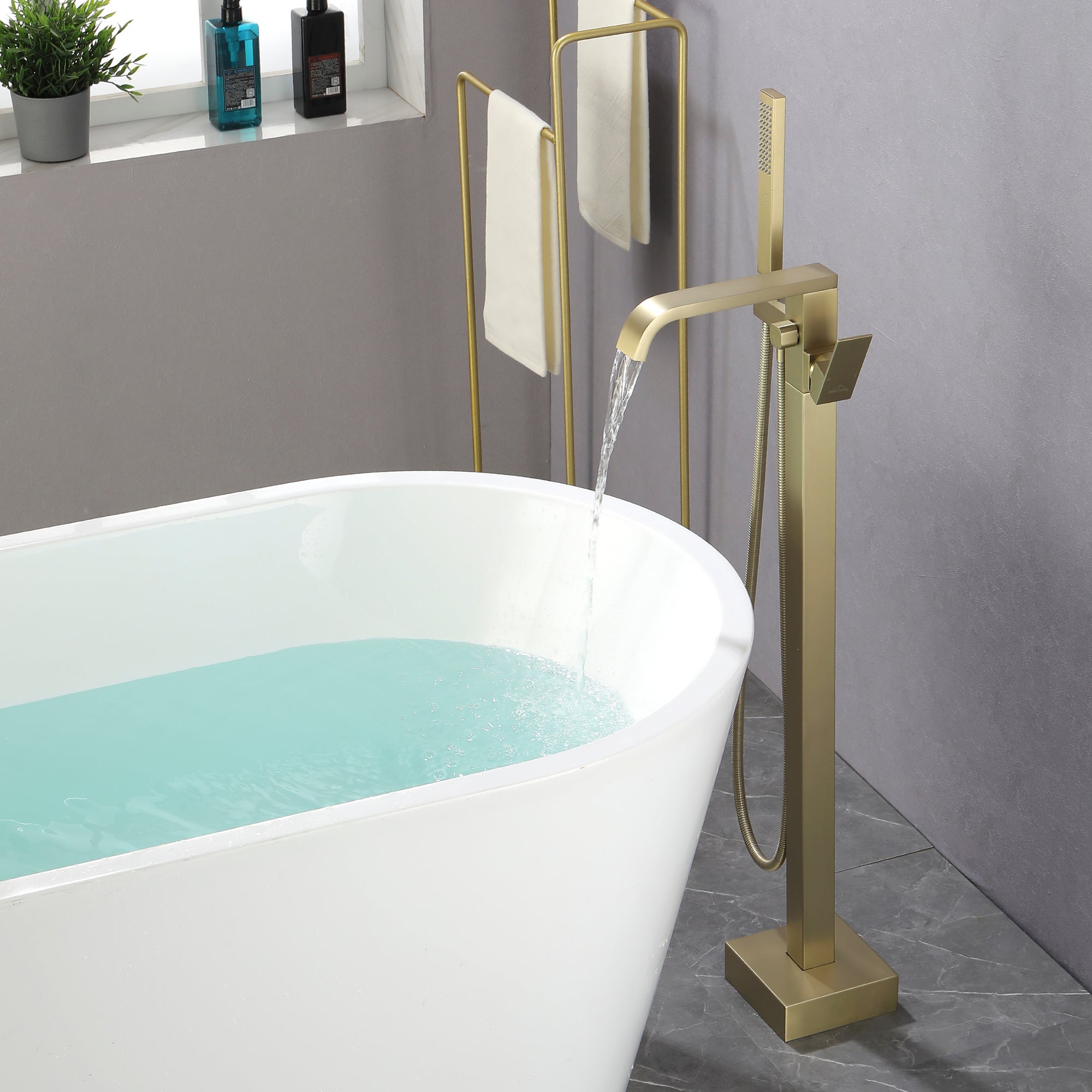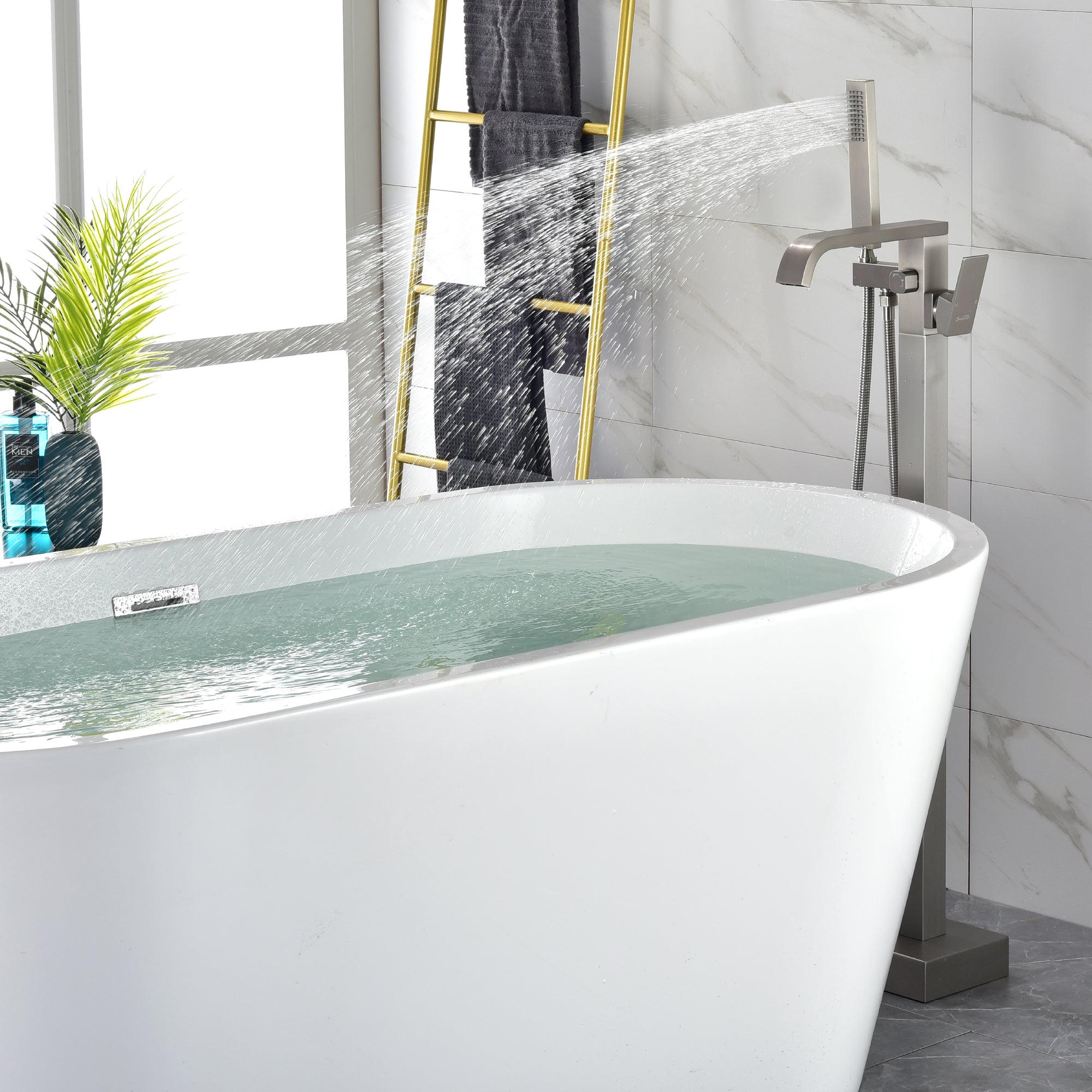 The great design can make our freestanding tub filler more stable than other's and will not wobble like others when the tub filler is working. The main body is constructed of premium solid brass, the sturdy brass construction can prevent corrosion and make the product more durable.
