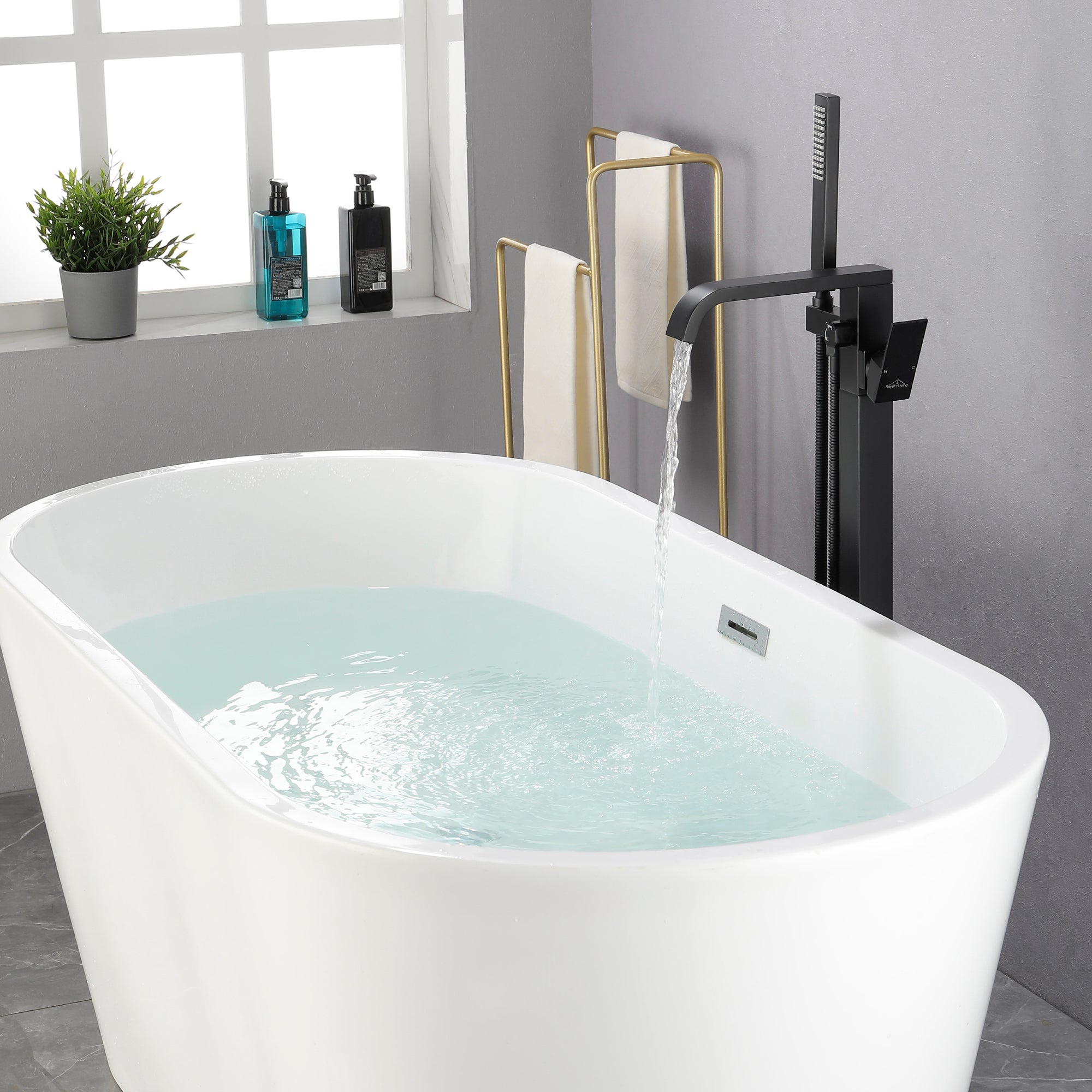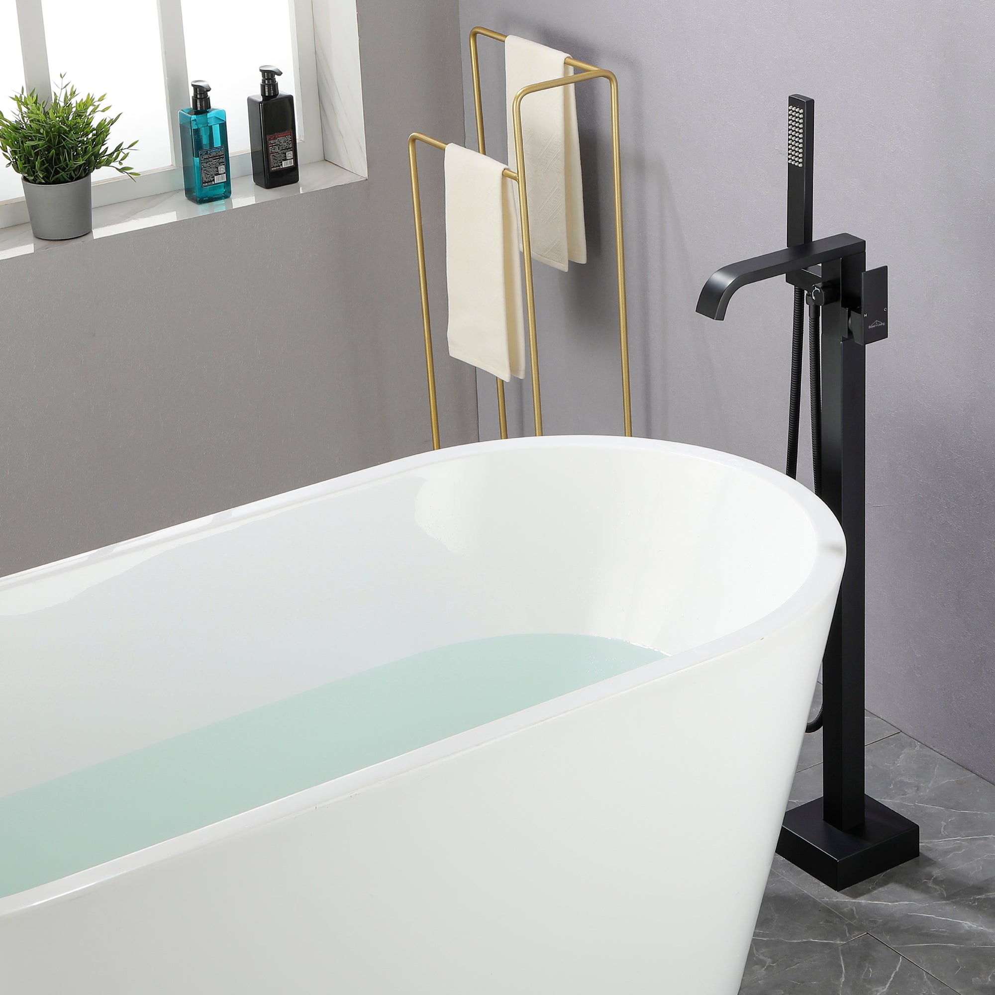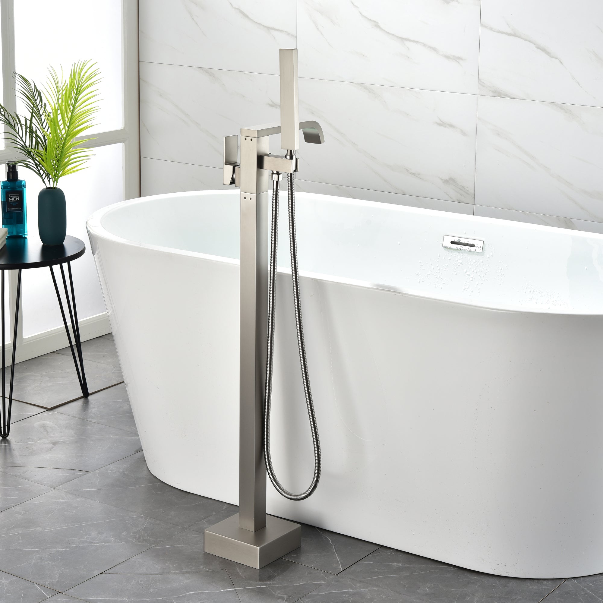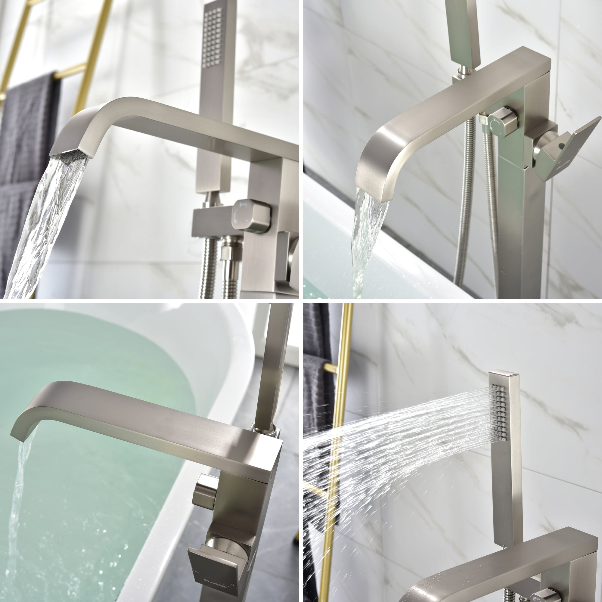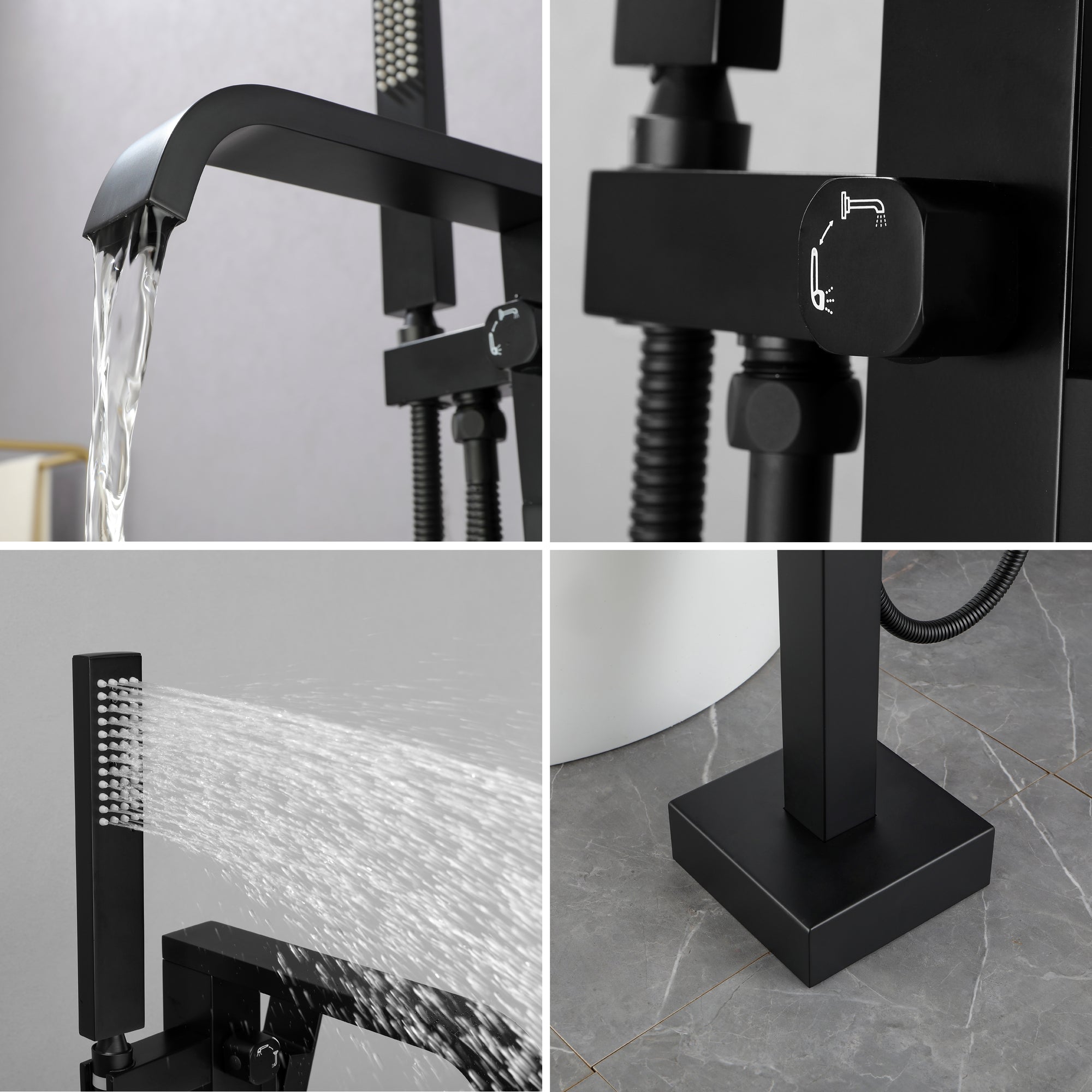 - Stable Floor Mount Design: The tub faucet is floor mounted; design a brand new base which screwed with 4 bolts and one screw to install the tub filler, the great design will make our freestanding tub faucet more stable than other's and will not wobble like other's when the tub faucet is working.