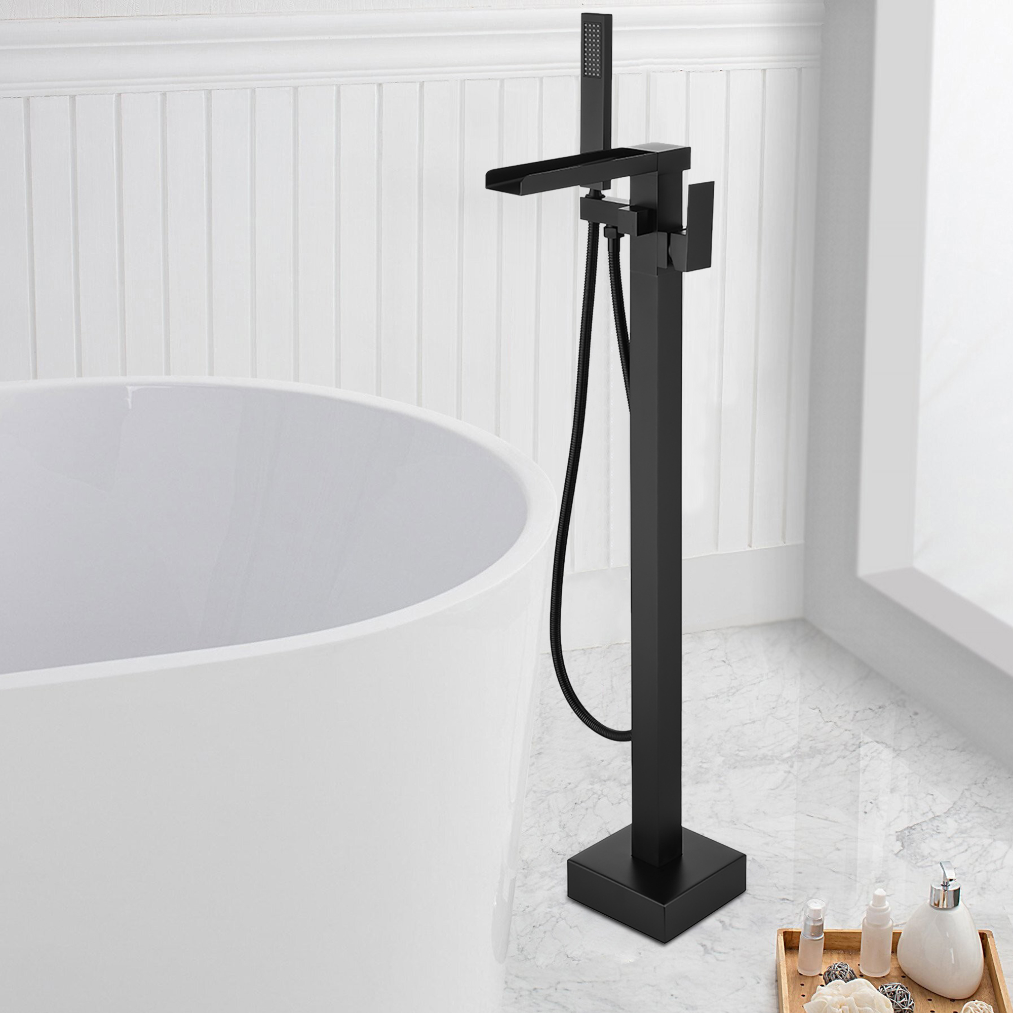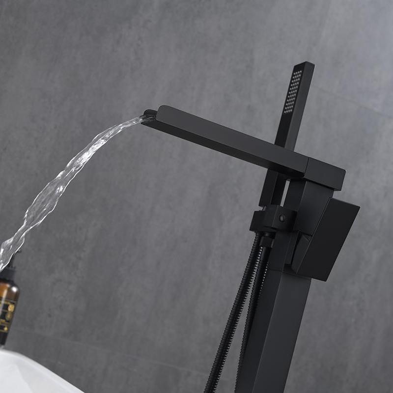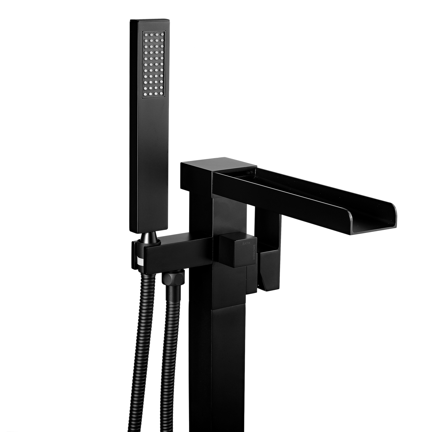 Freestanding Floor Mounted Single Handle Bathtub Faucet Filler with Handshower in Matte Black