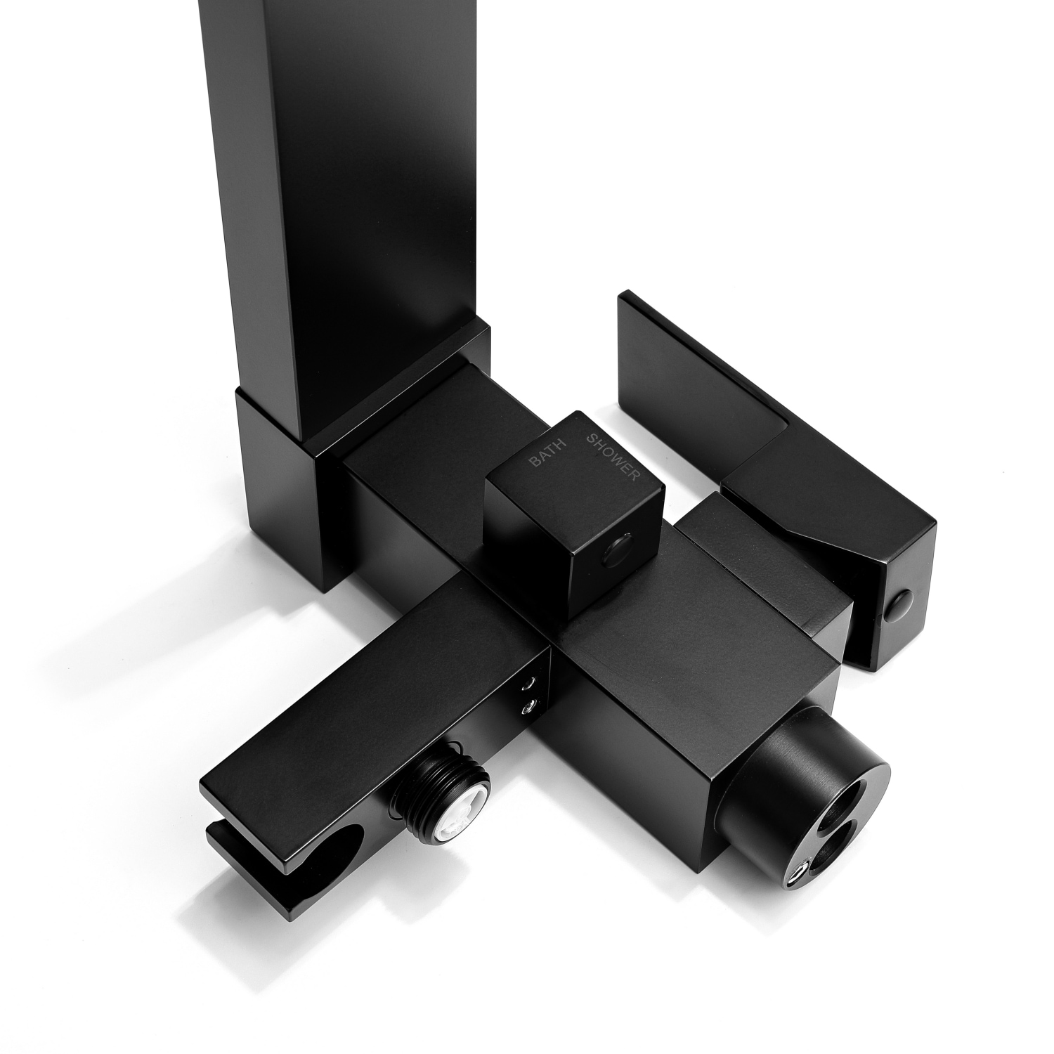 • Single handle offers precise water control and a square knob to switch between hand shower and filler spout