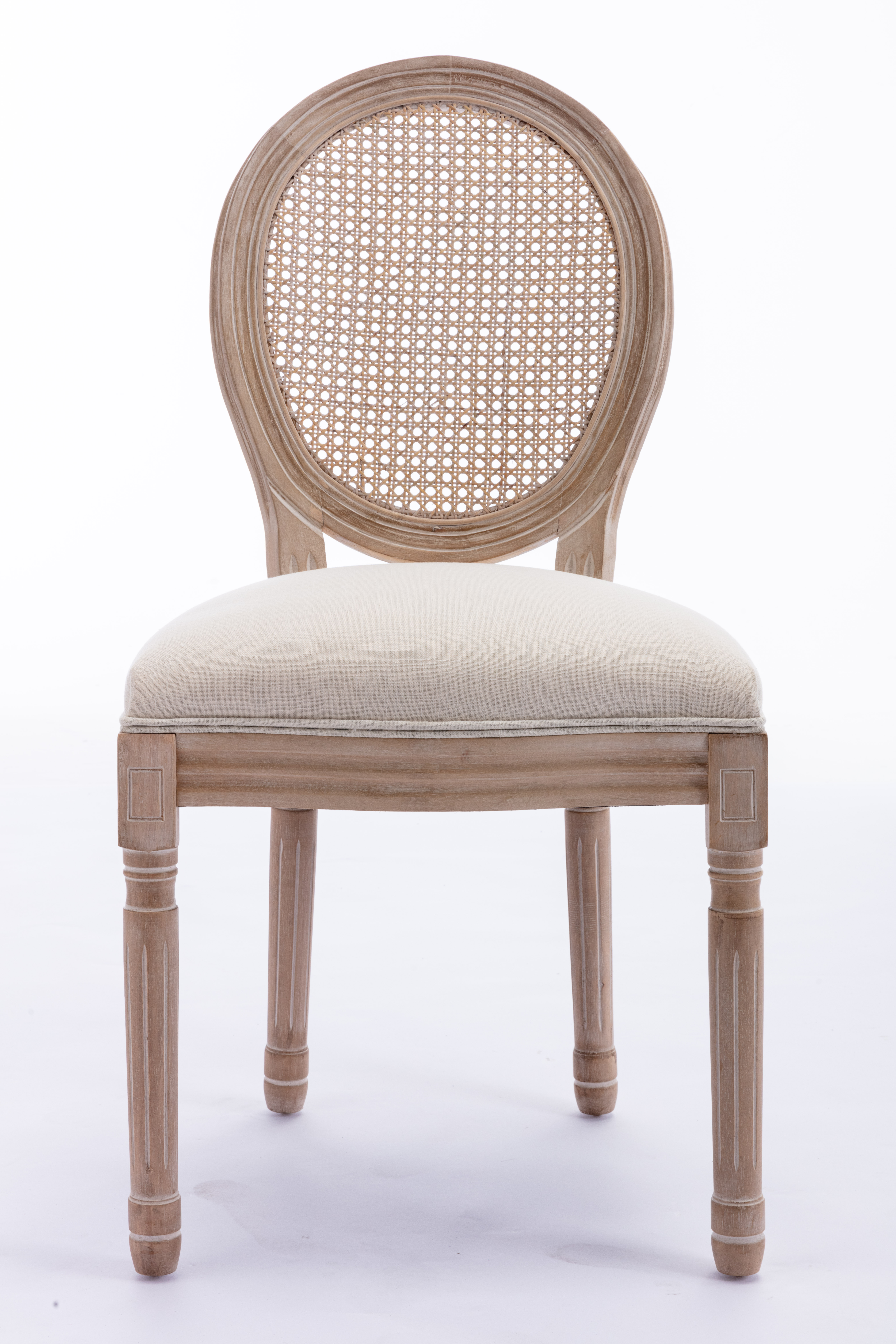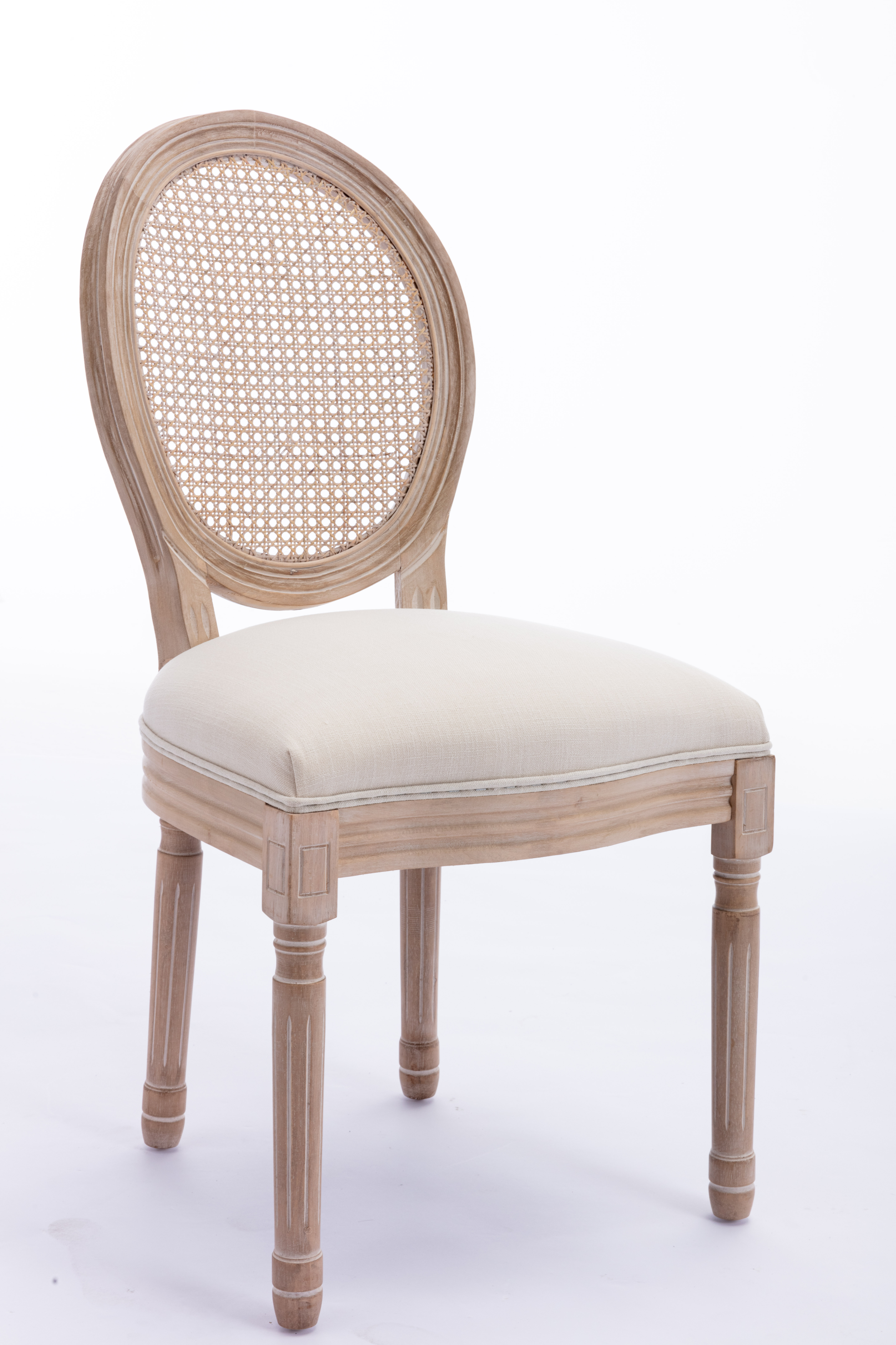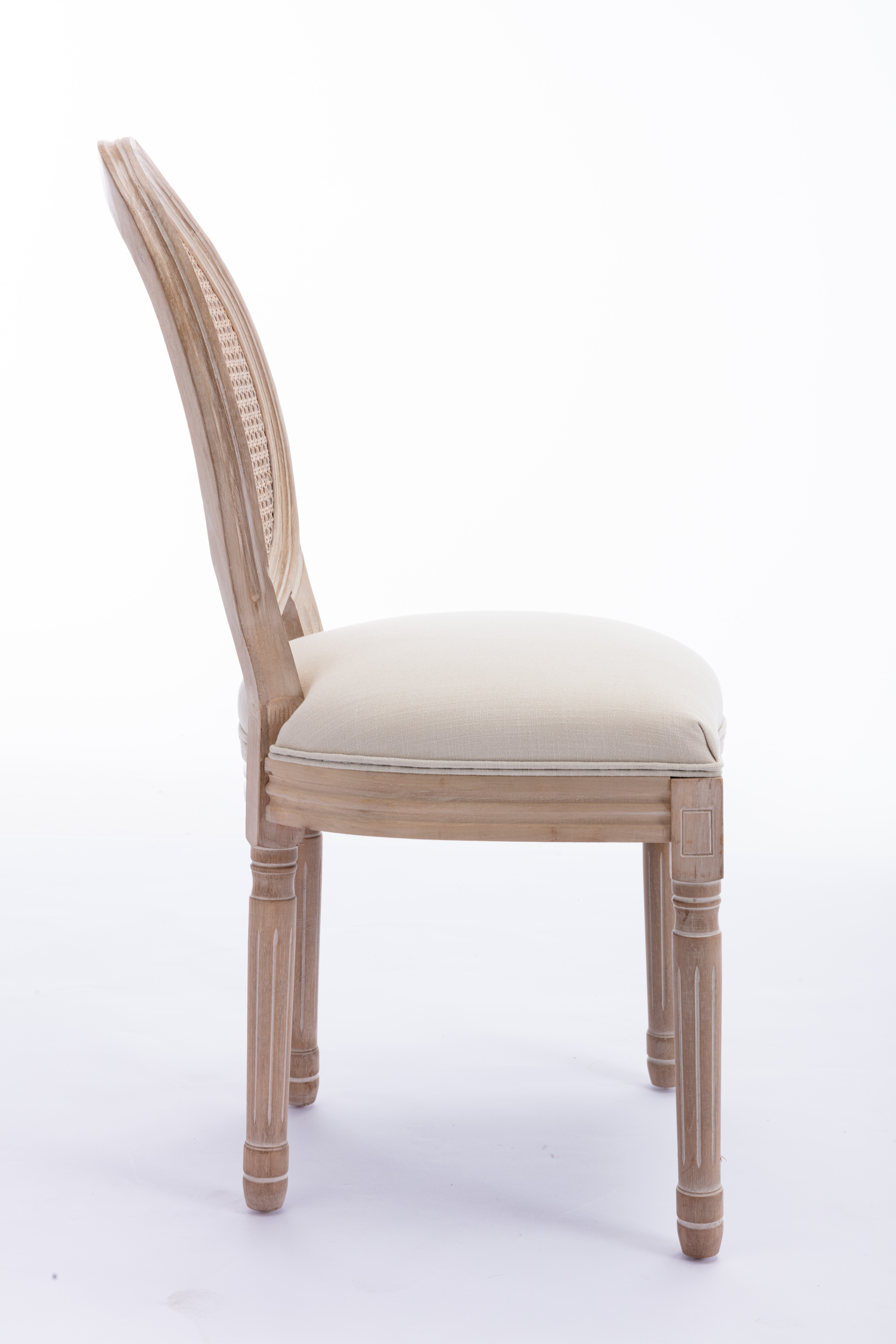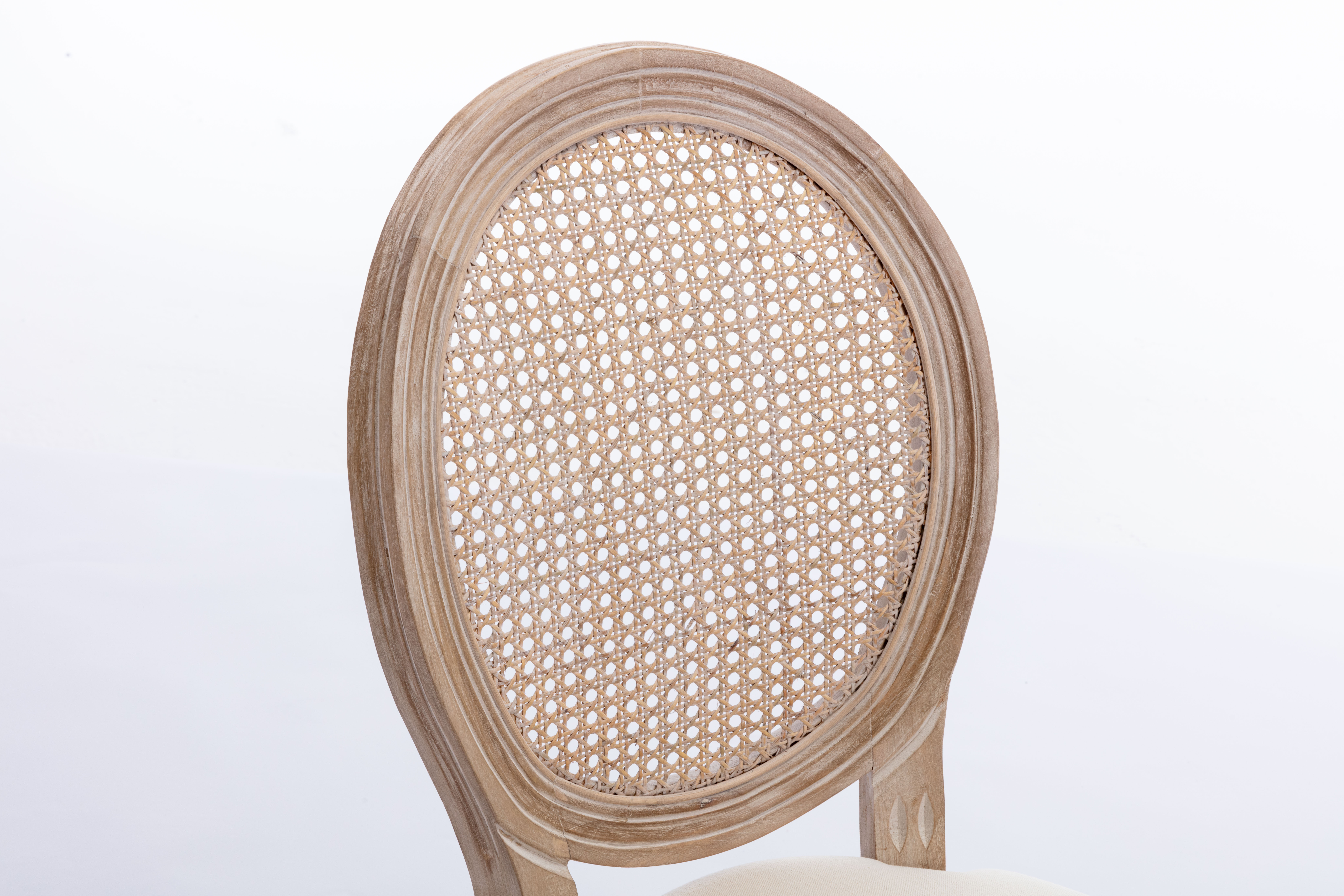 French Style Solid Wood Frame Antique Painting Linen Fabric Rattan Back Dining Chair,Set of 2,Cream