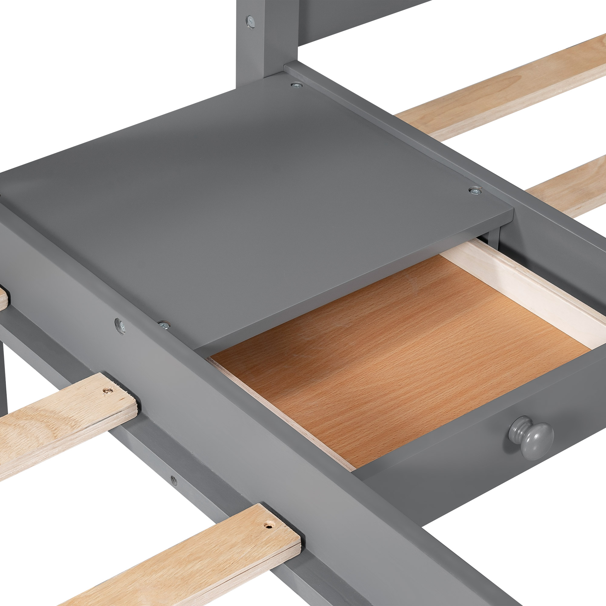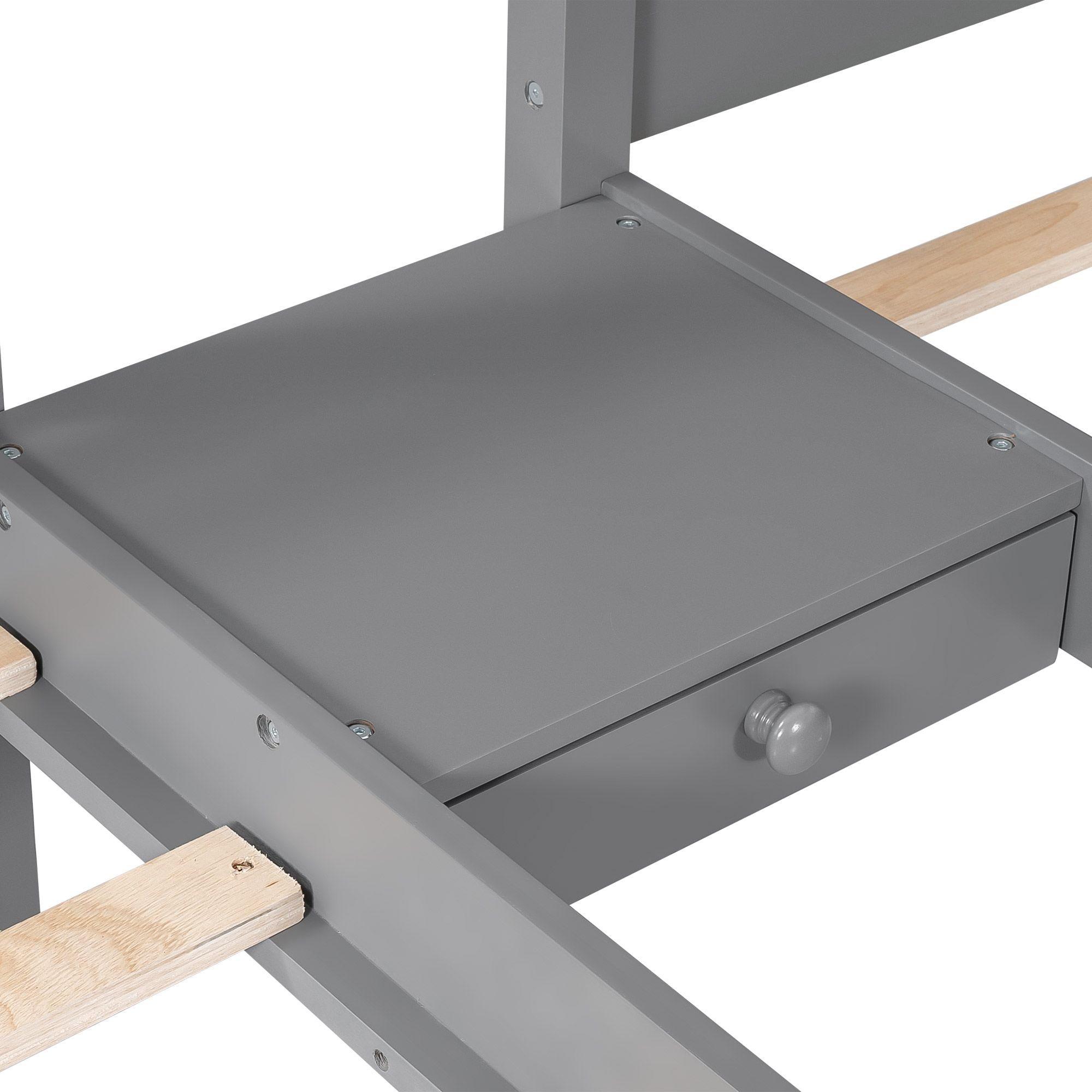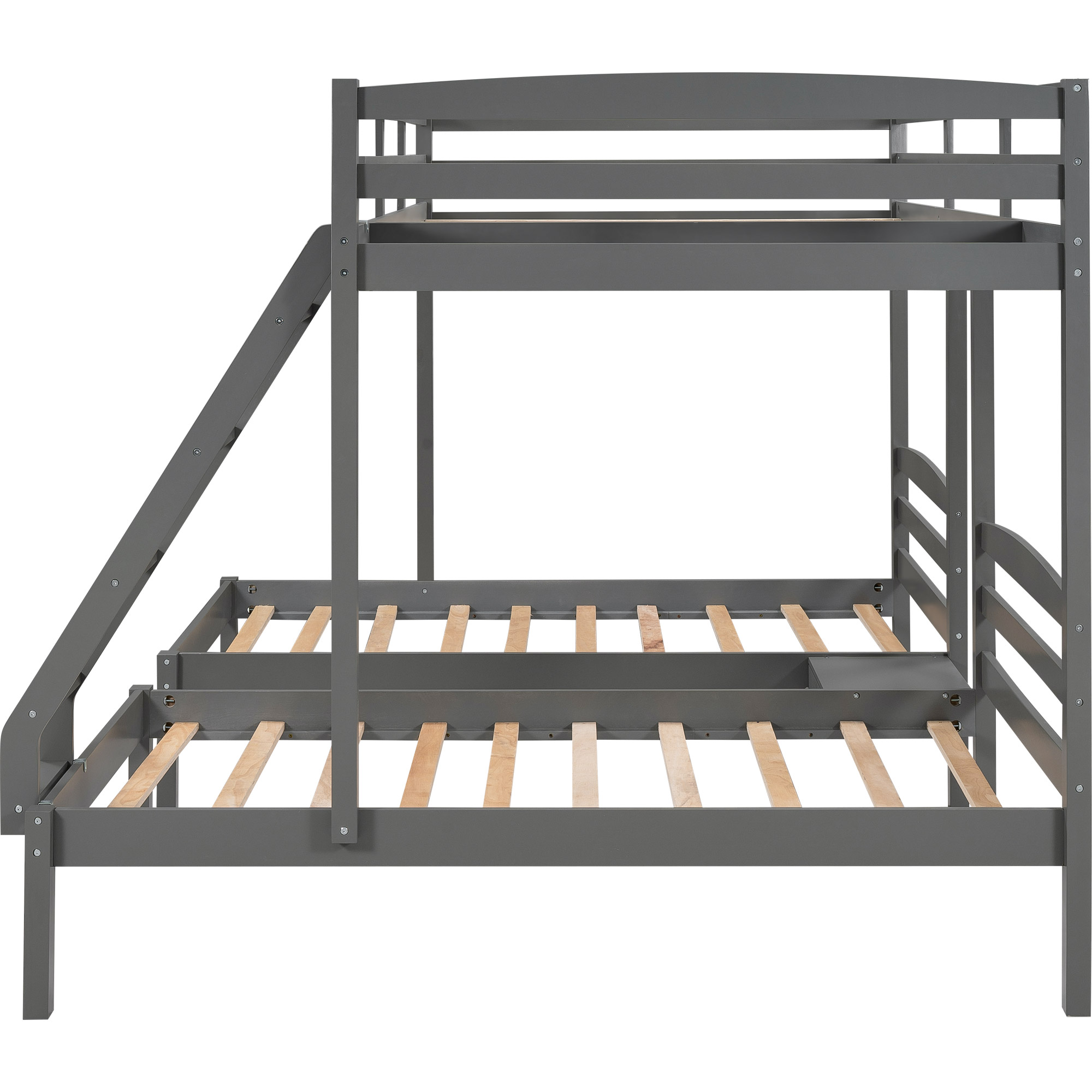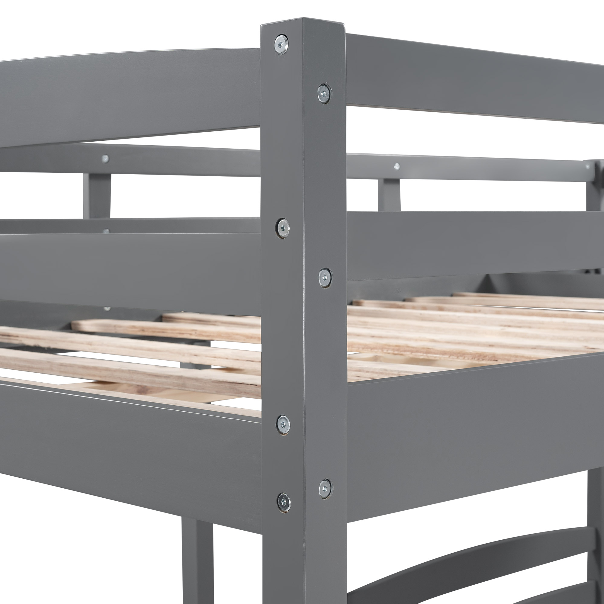 This bunk bed features three beds in one, truly a space-saver. With a full size bed on top and two twin size beds underneath, this bed is ideal for accommodating guests and sleepovers, and also perfect for family with multiple members. The drawer between beds is available for storage and the down bed is 11” off the floor, so there’s spacious space under the down beds, you can use it to store your stuff. The top bed is equipped with full-length guardrail, keeping user’s safe from falling. Coming with great quality and multiple function, this bed will be the best addition to your bedroom.