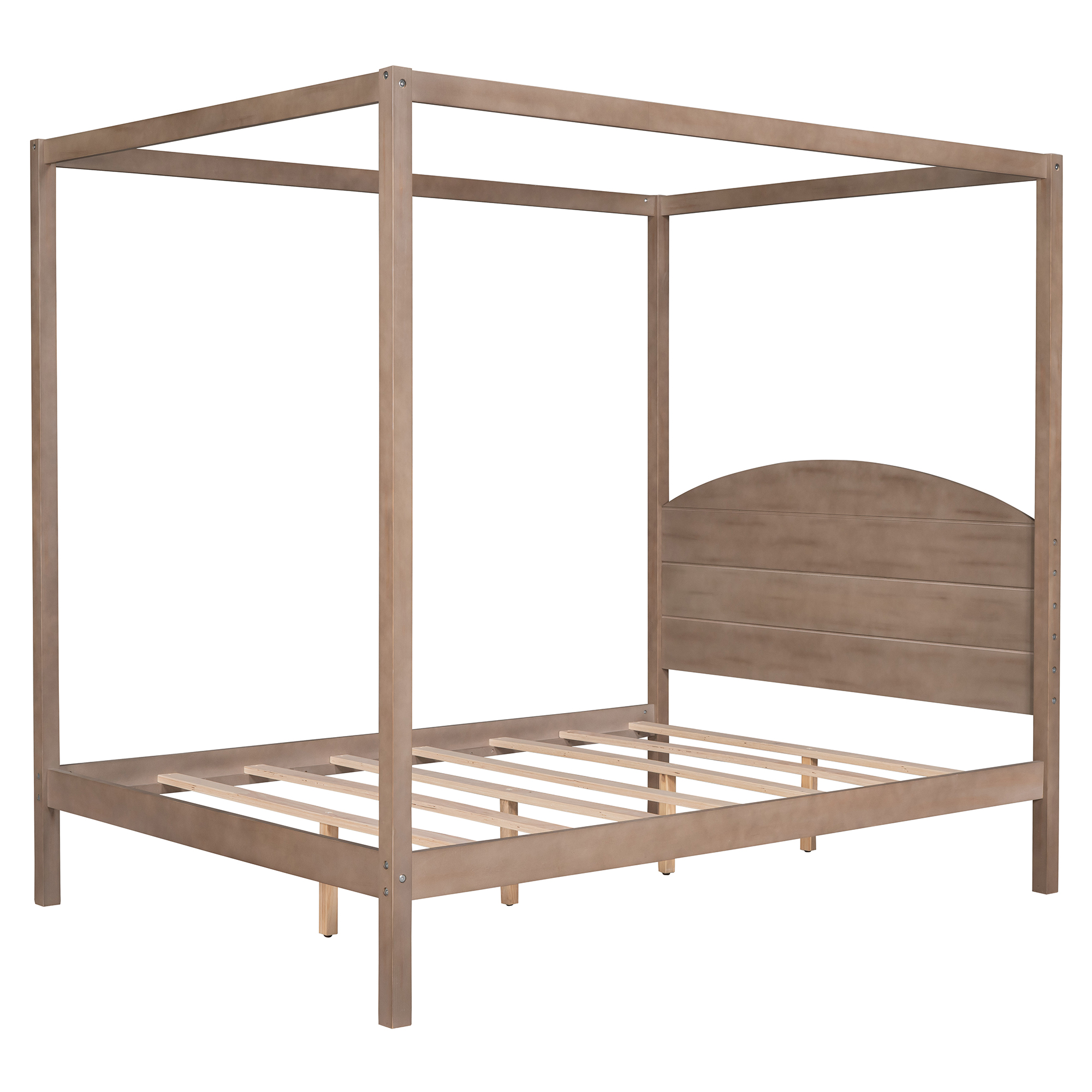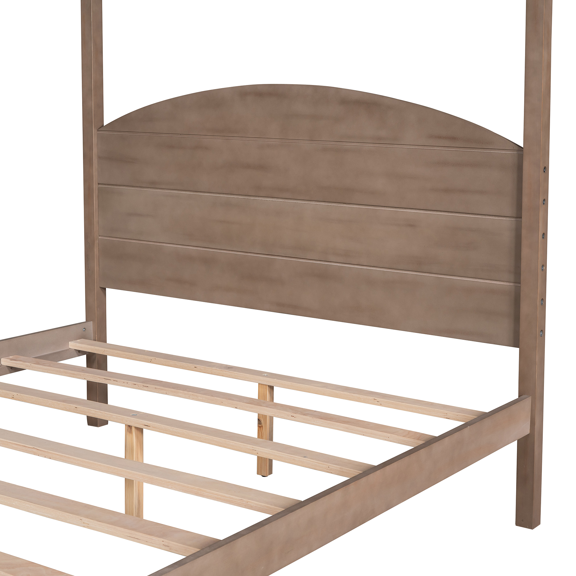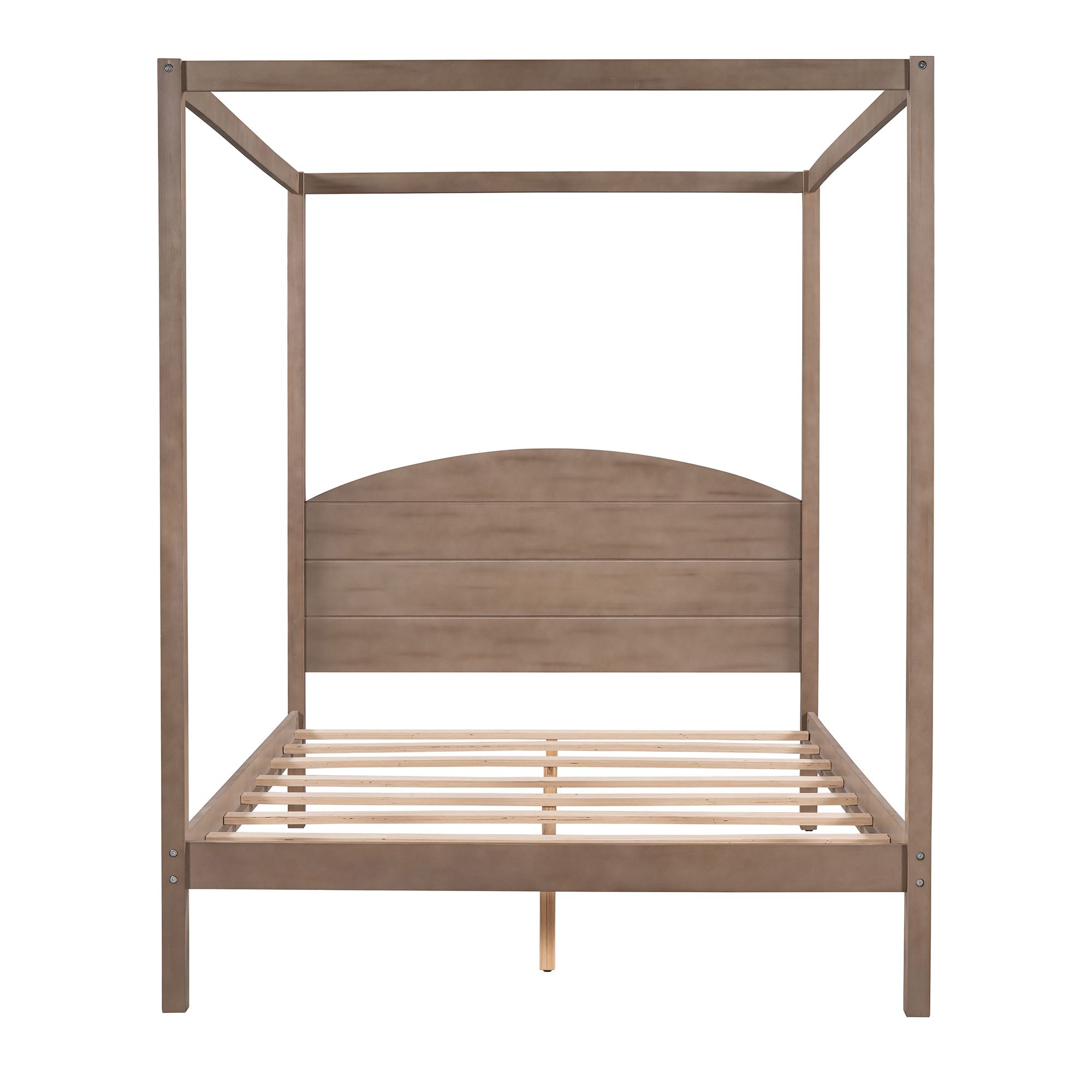 Modern with this striking canopy bed—the perfect addition to any bedroom, no matter your style. The straight, simple lines add a contemporary touch, with a built-in bed headboard and an wash wood finish for a truly timeless look. When it comes to comfort, this canopy bed has it all: a sturdy bed frame, as well as side rails for guaranteed stability and durability. Simply add your favorite bed mattress, some luxury bedding, and even canopy bed curtains to create a distinct look that’s all your own.