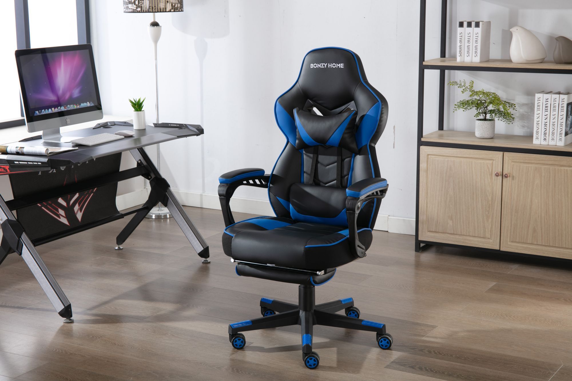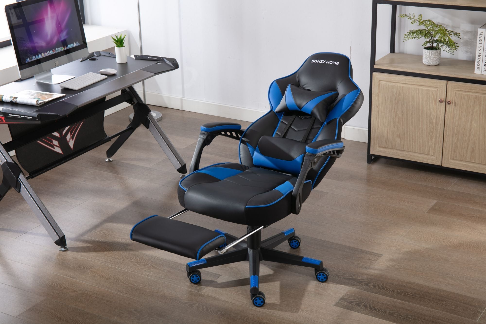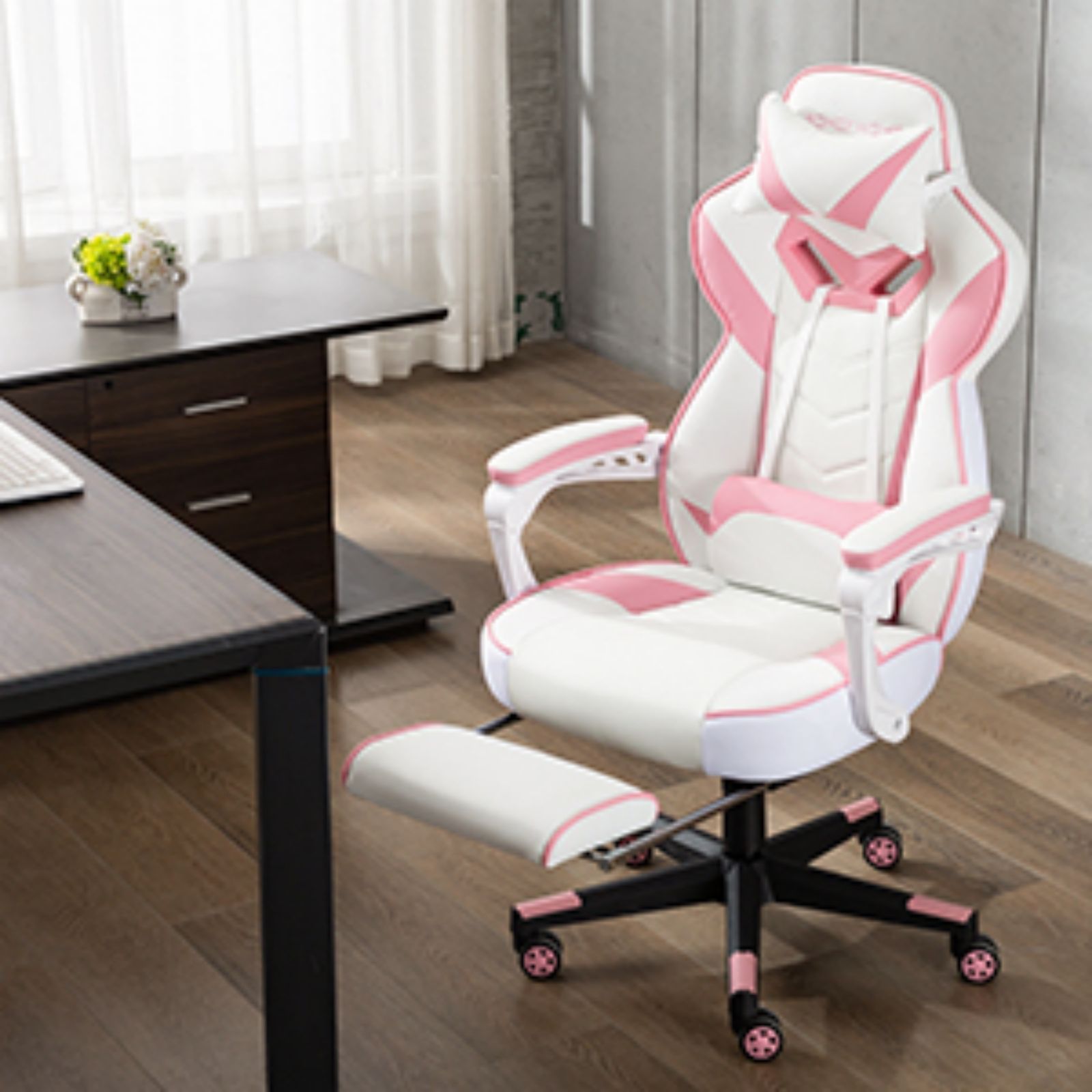 This gaming chair is suitable for you to play computer games, watch TV, do the work and have a rest. It will make your space more modern and elegant.