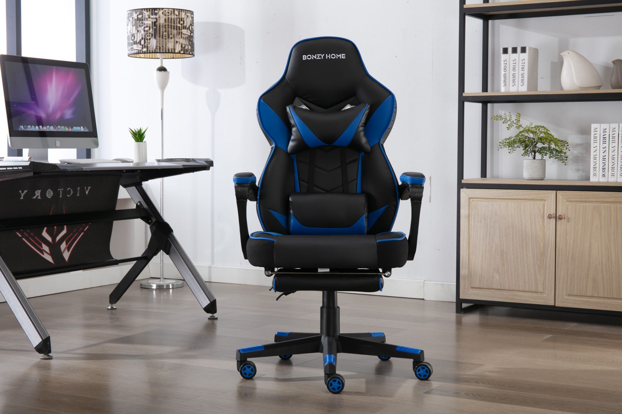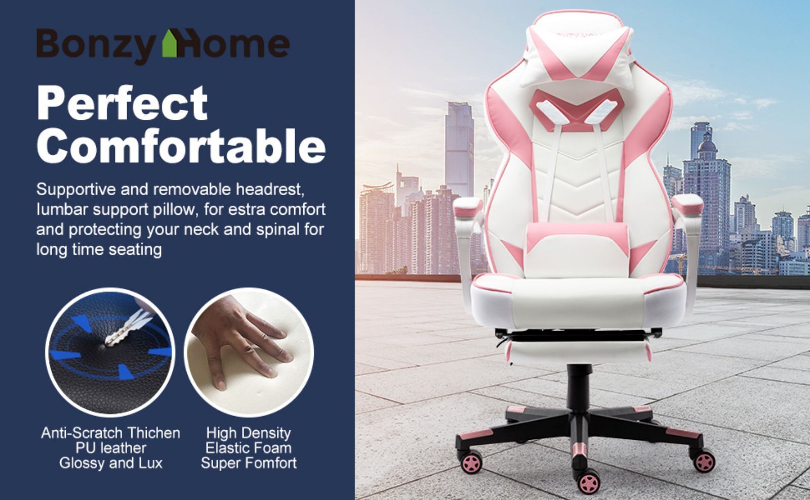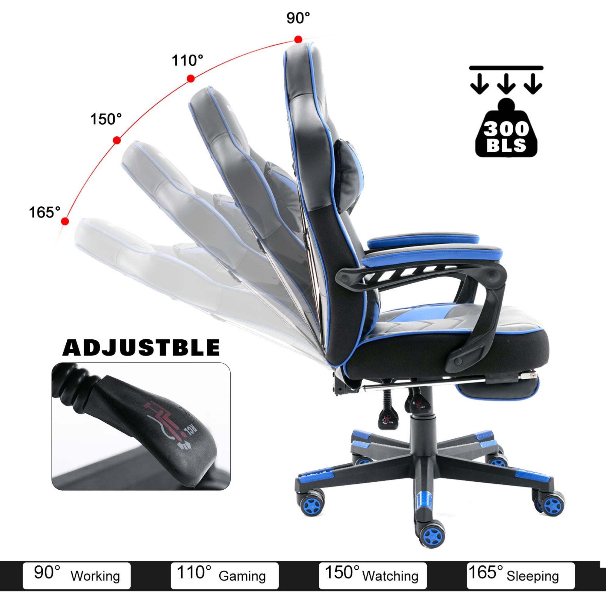 This gaming chair is suitable for you to play computer games, watch TV, do the work and have a rest. It will make your space more modern and elegant.