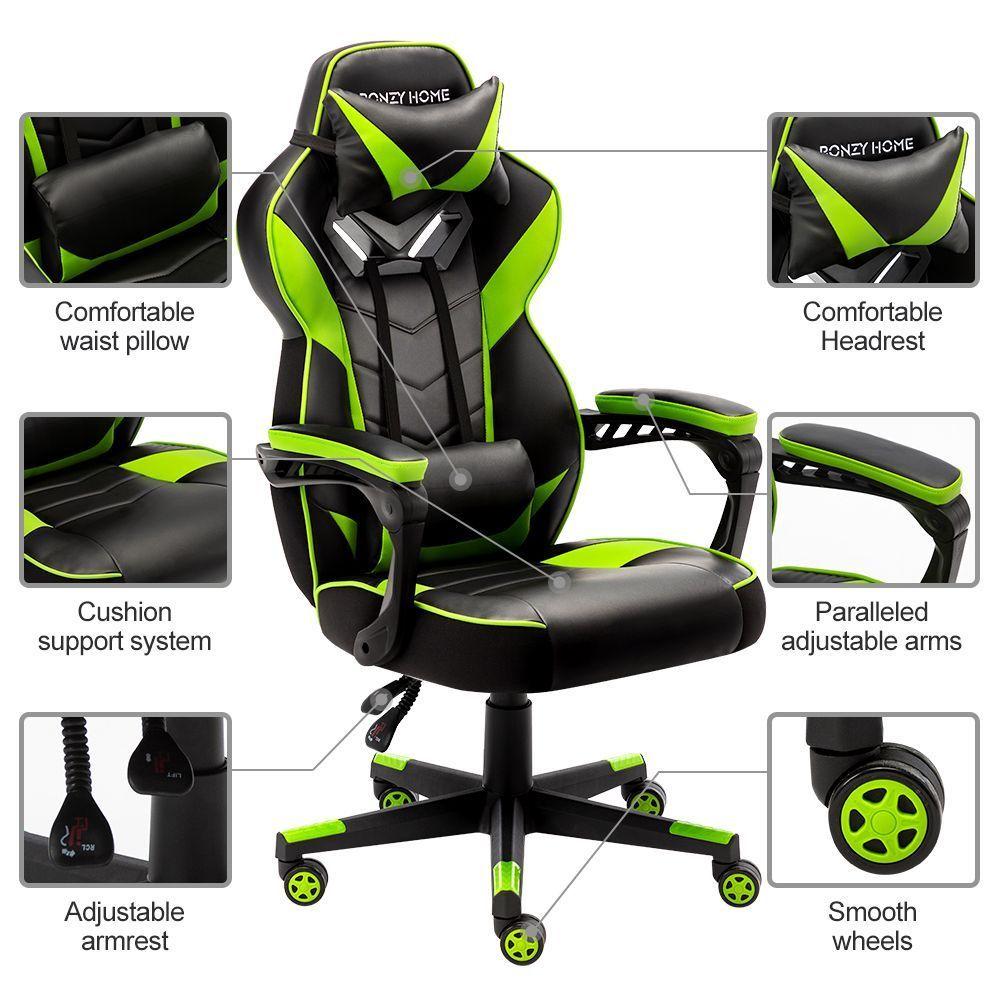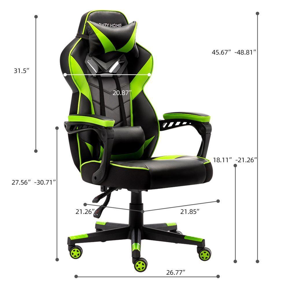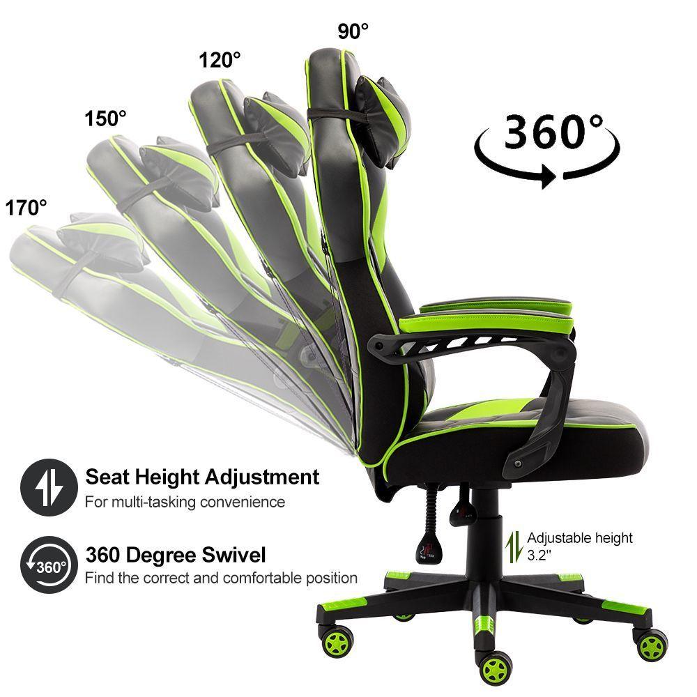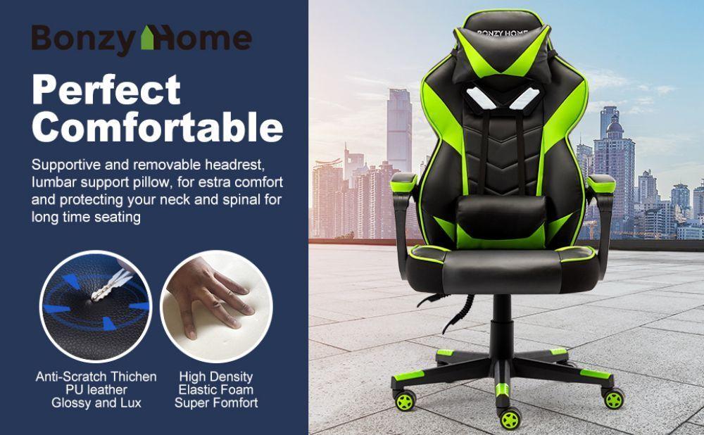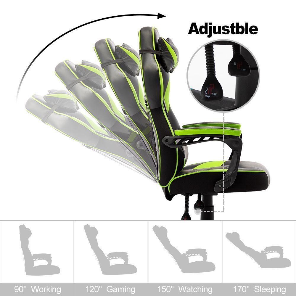 The gaming chair is equipped with adjustable backrest, which allows you to change its angle for different needs and make the chair multipurpose, and retractable footrest, which offers you comfortable foot support when you need to lie down on the chair. The special light of the chair increases a sense of science for you and makes it the most unique furniture in your home, especially at night. Small details like flexible armrests and massaging functions increase the practicability of the chair. Moreover, the ergonomic design and high-quality material of the chair all improve your user experience!