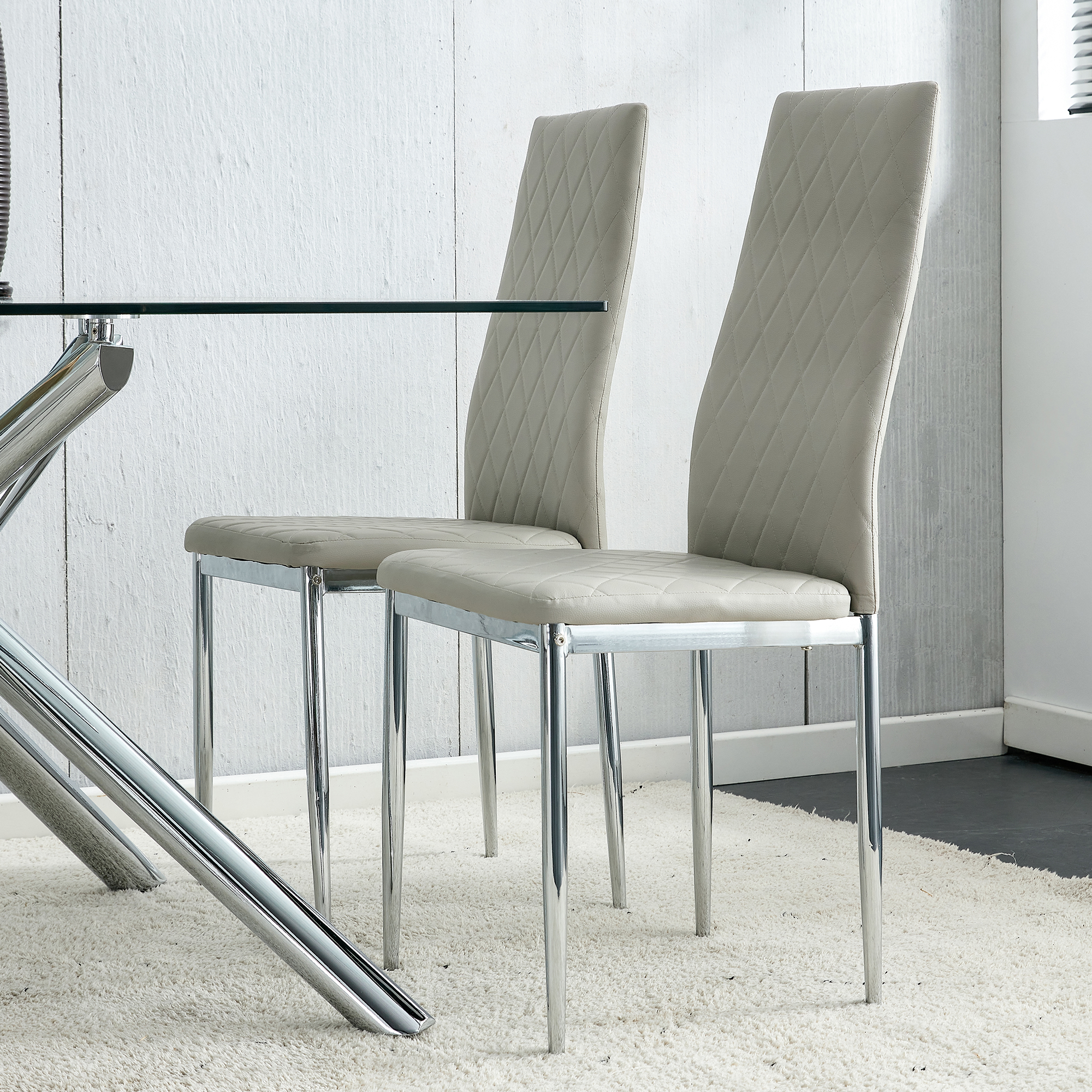 Glass Dining Table, Dining Chair set 4 ,4 Grey High backrest plating Chair leg Dining Chairs and 1 Glass Dining Table .Table Size 62'' x 35''x 29''