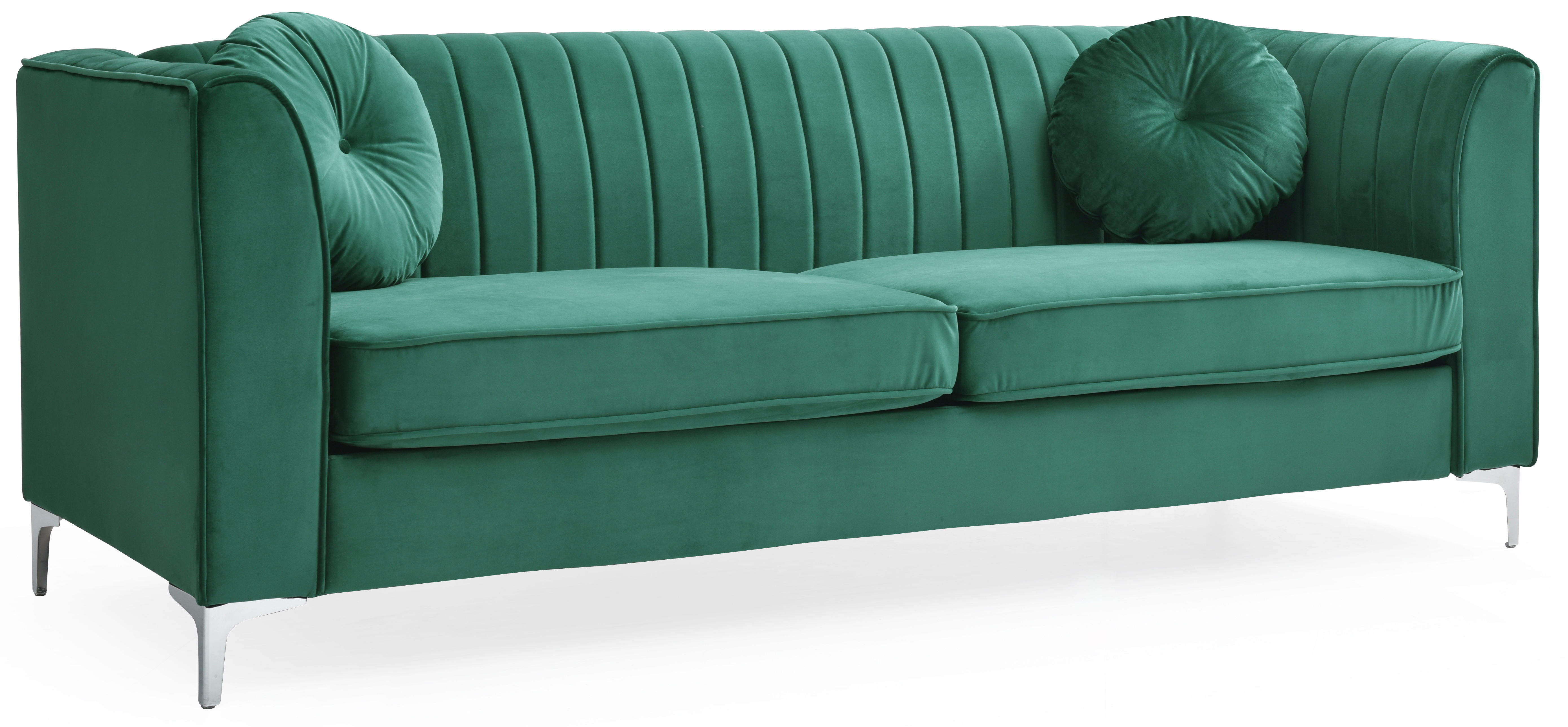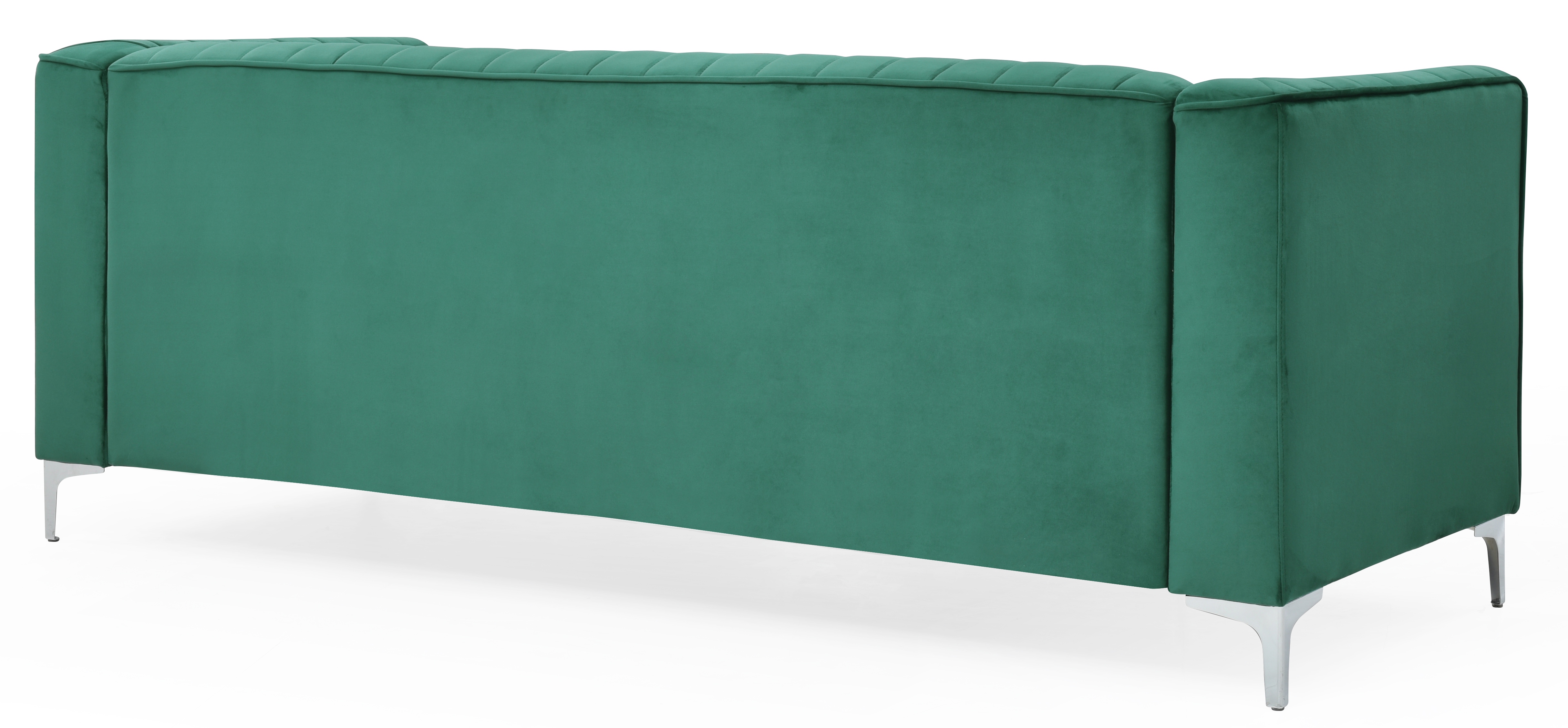 Soft Velvet Channel Tufted on the Inside of the Arms and Backs. Pocketed Coil Cushion Seats Make this Set Comfortable and Stylish.Chrome Nailhead trimmed and finished off with Chrome Plated Legs , It also includes Round Matching Throw Pillows. KD Design allows for EZ Delivery to any Home or Room! Choose from Sofa. Loveseat Chair Or Reversible Chaise Sectional. Soft Velvet Micro Suede Cover. Chrome Legs. Pocketed Coil Cushions. Throw Pillow. Pocketed Coil Cushions. Channel Quilting. EZ Delivery-Semi Assembled. Glued,Screwed, Stapled. .