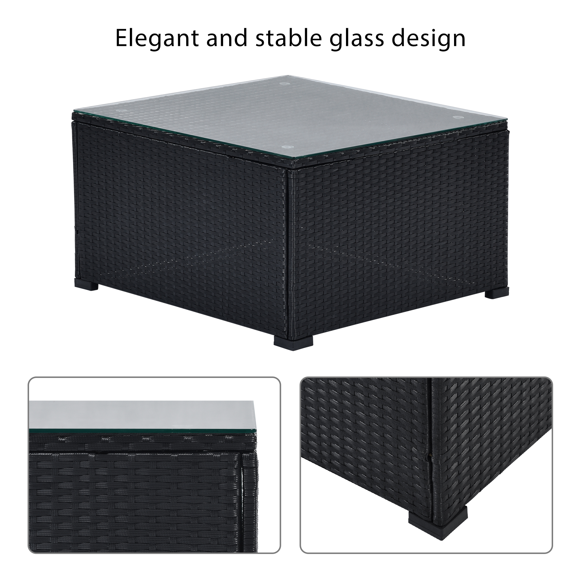 【Stylish center table】 A large square rattan table creates a centerpiece for the sectional and is covered with an elegant tempered glass topper for both style and ease of cleaning ,which perfectly highlights your patio or poolside decor.