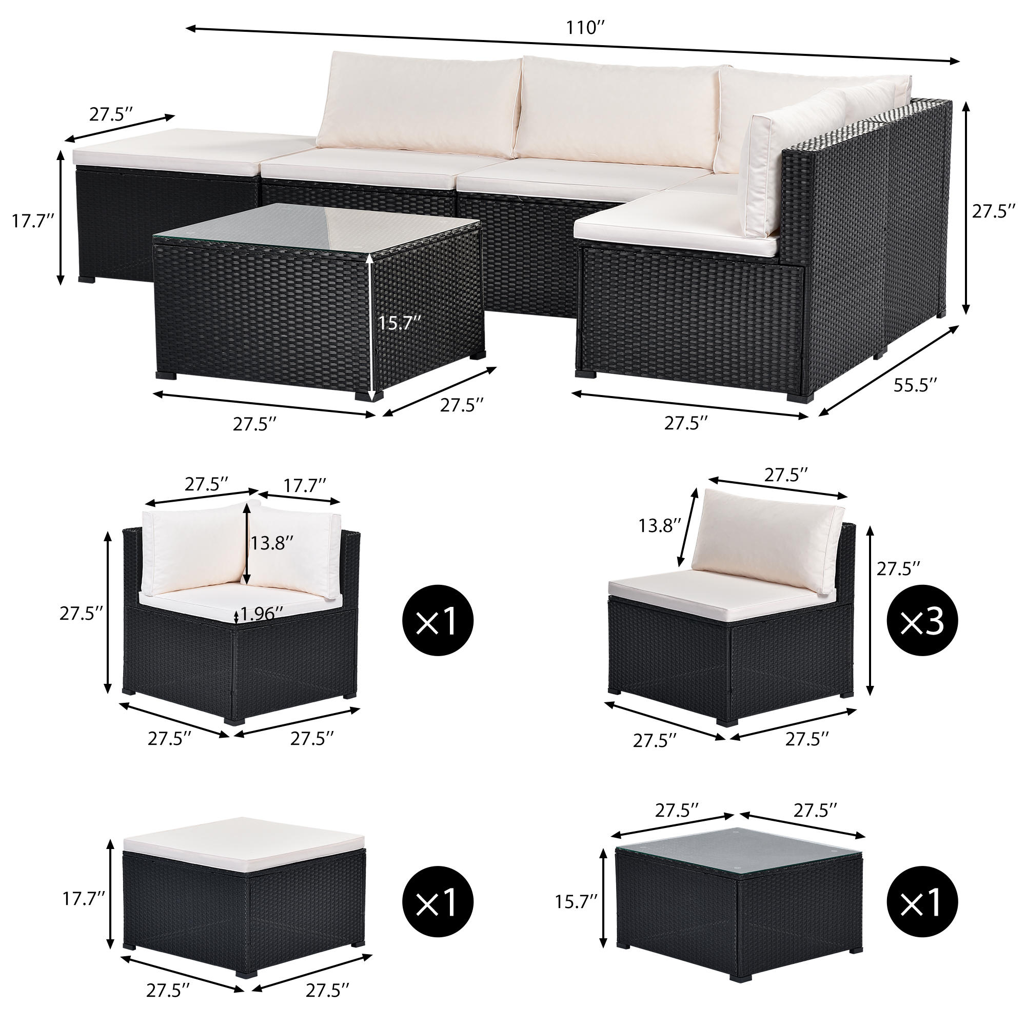 【6 Pieces Set Include】Comes with 1 corner sofa, 3 armless sofas, 1 coffee table with tempered glass top, 1 ottoman, providing relaxation for up to 5 persons.
