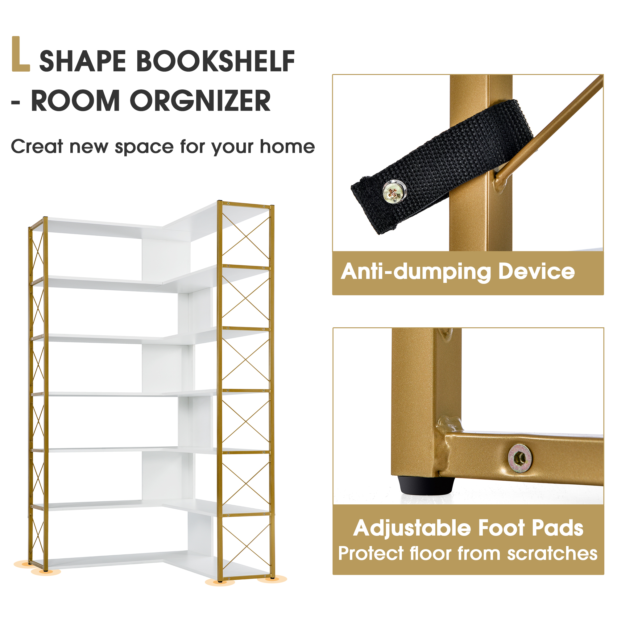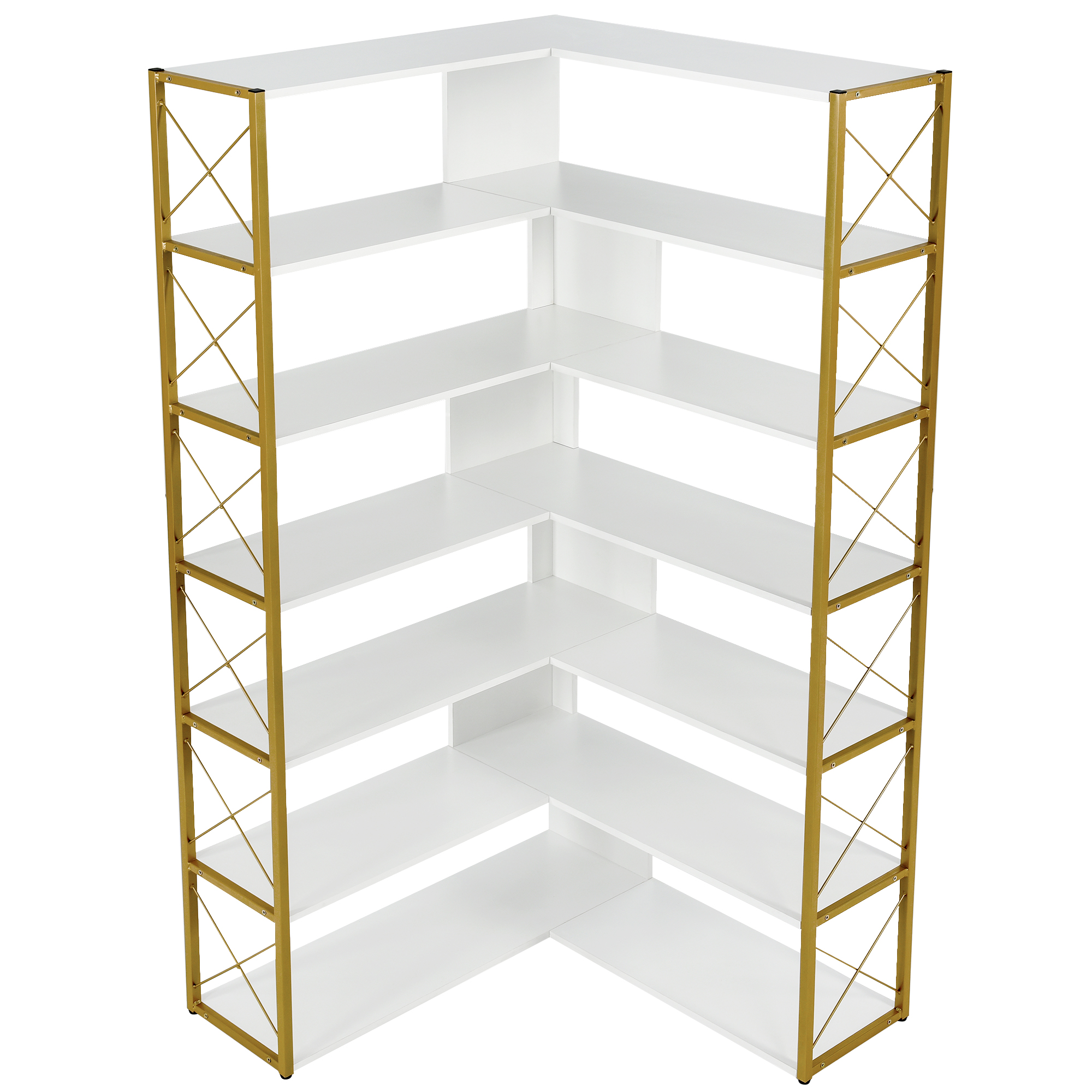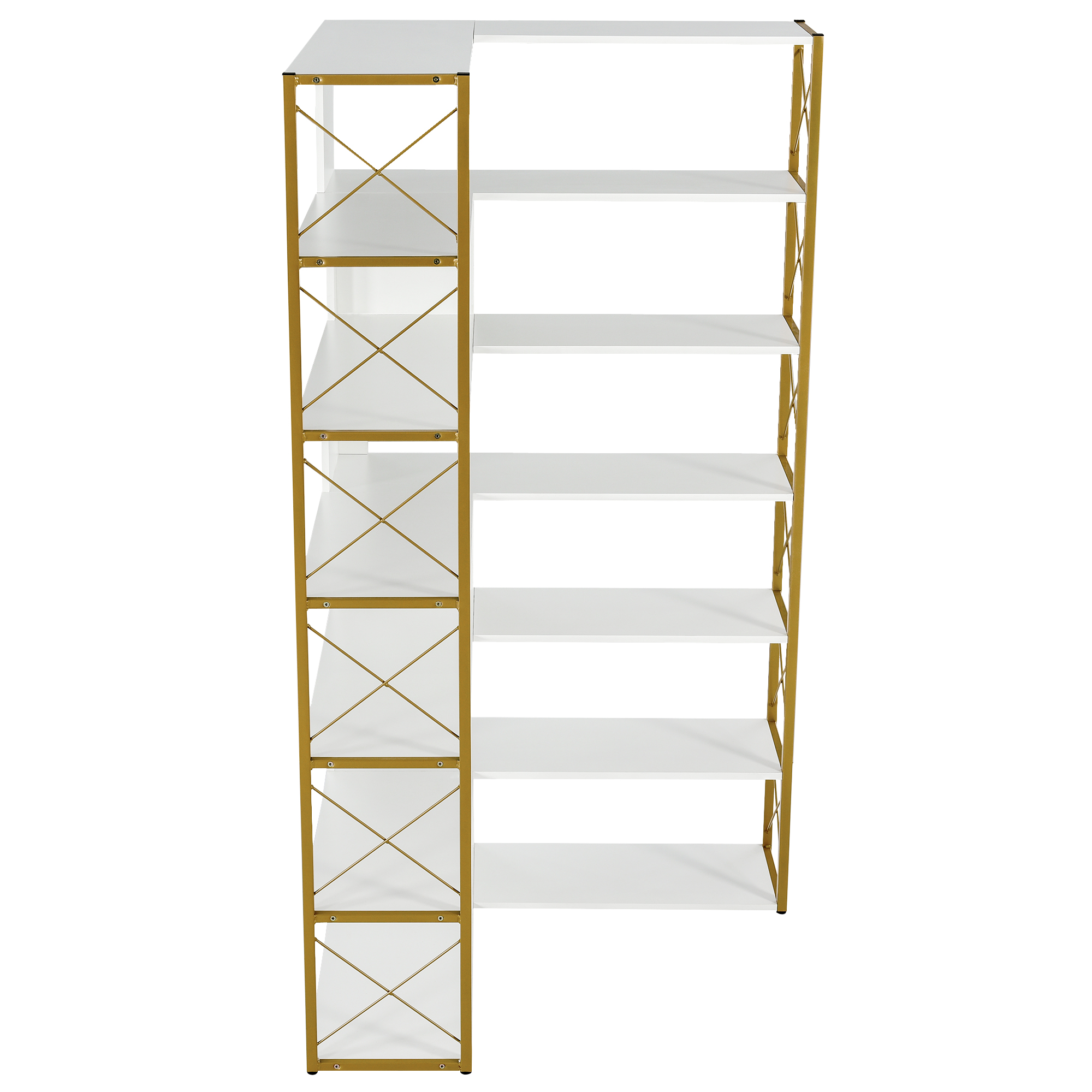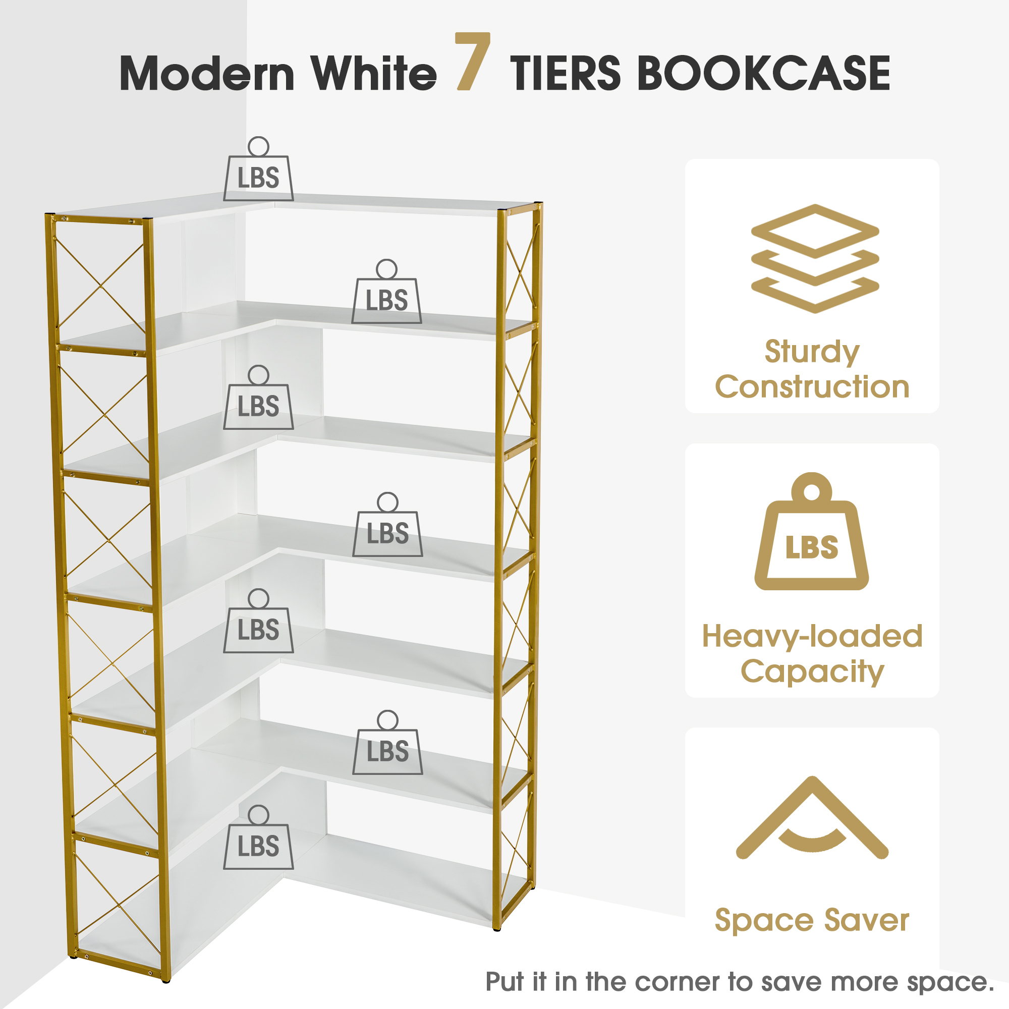7-Tier Bookcase Home Office Bookshelf, L-Shaped Corner Bookcase