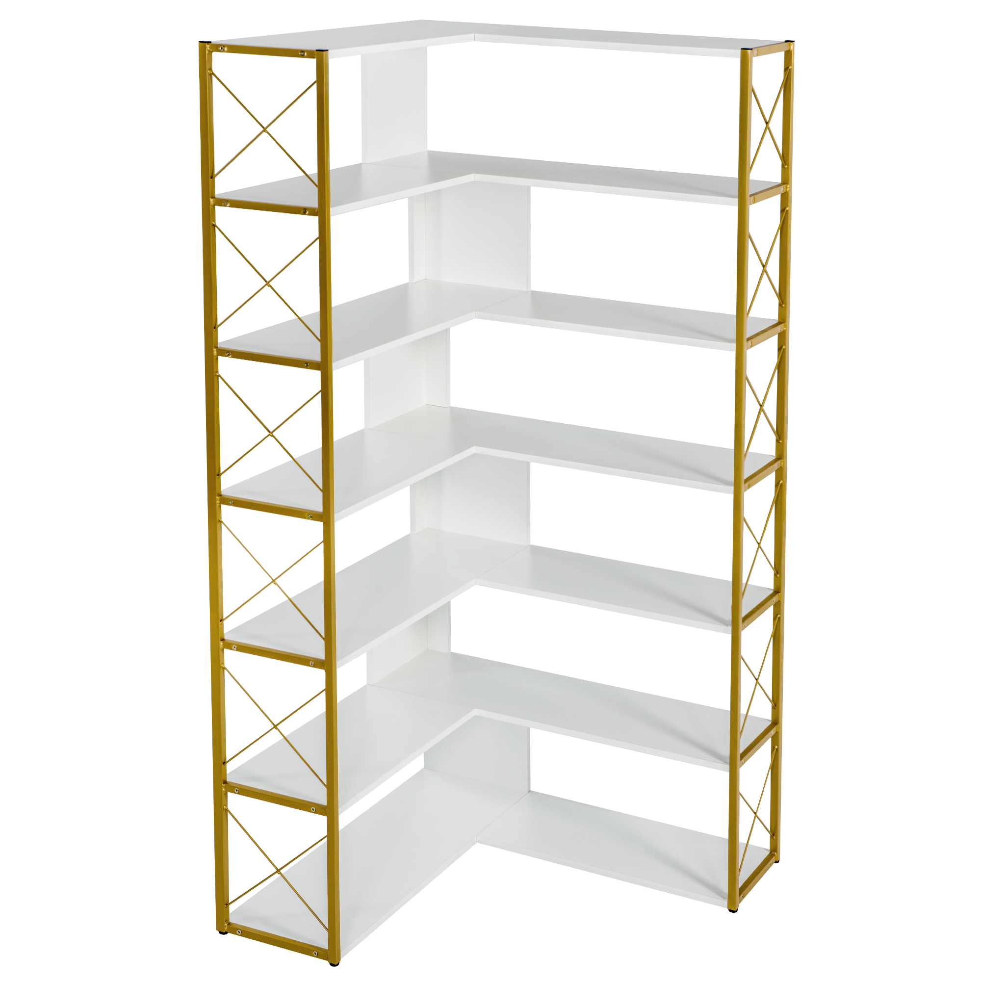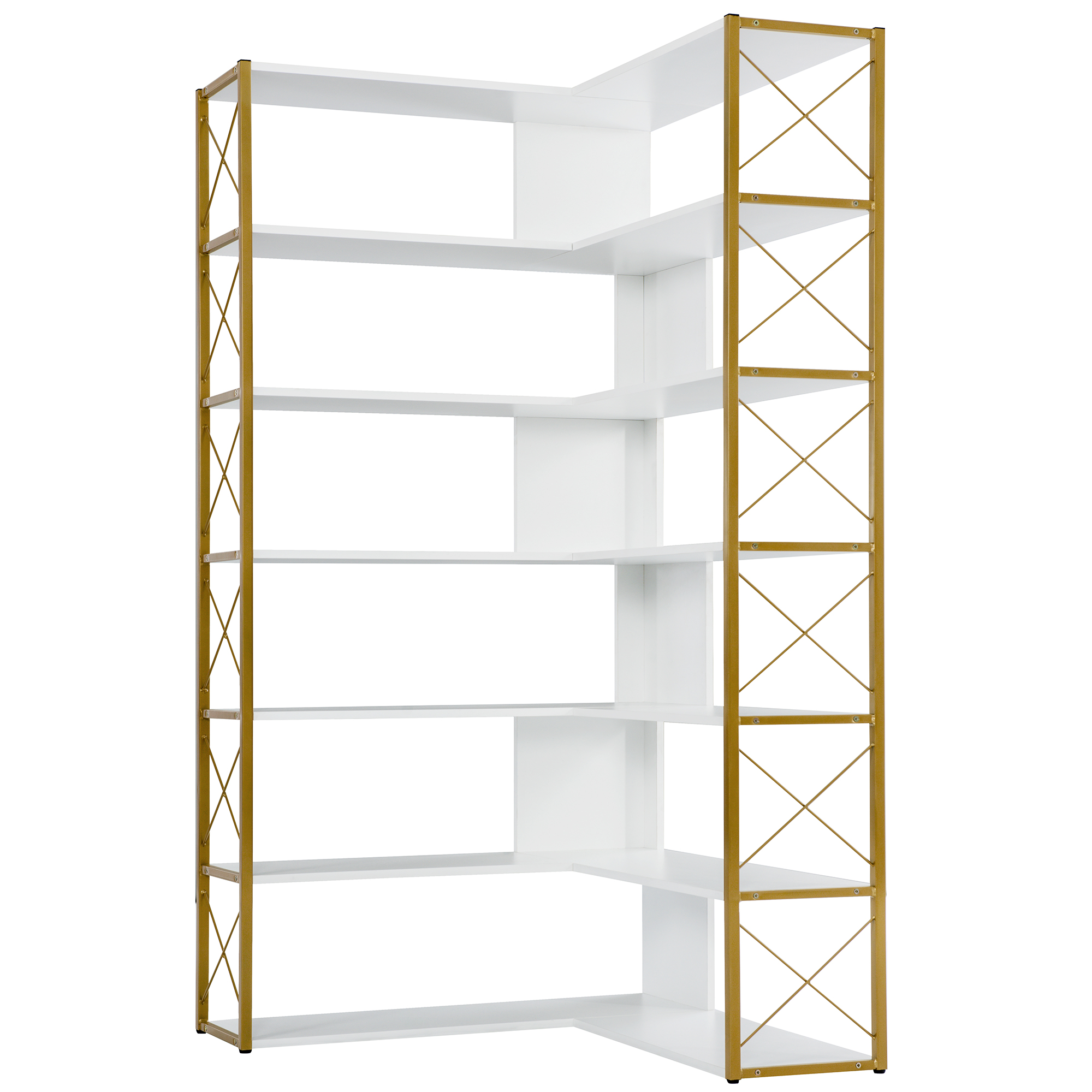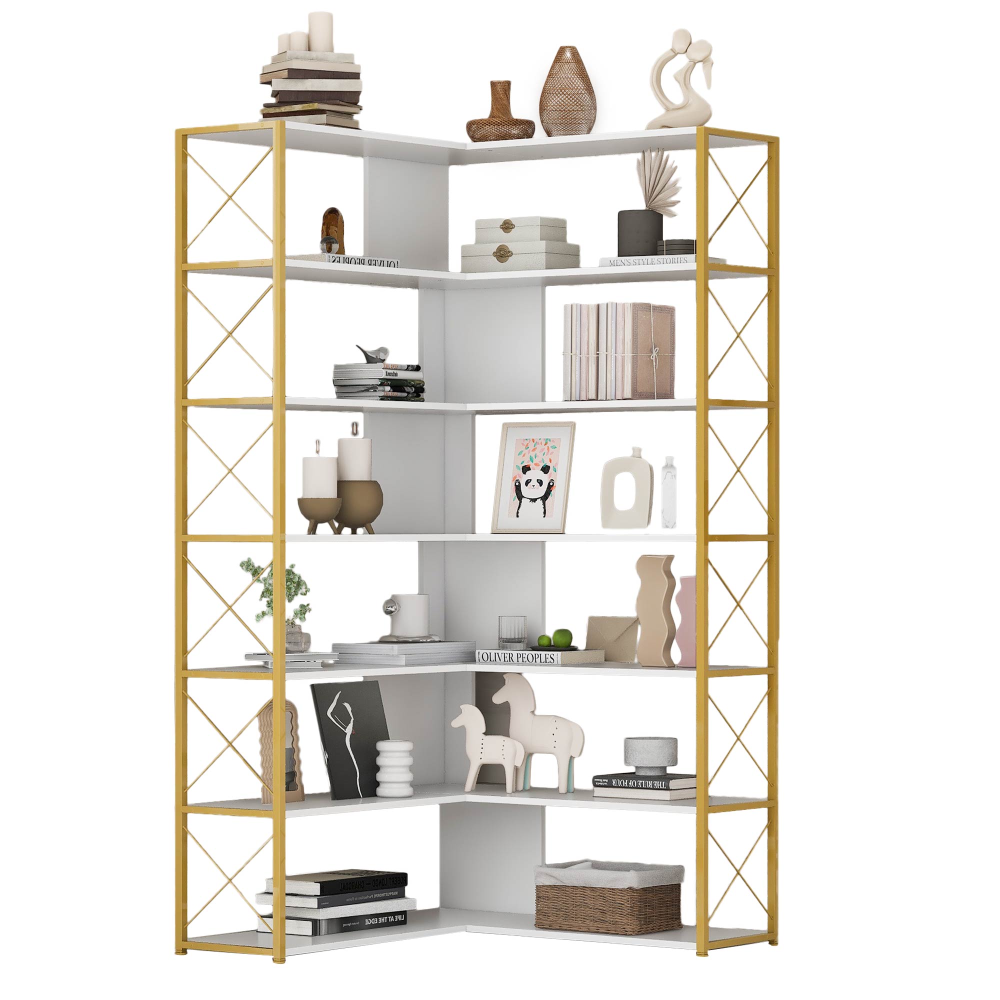 7-Tier Bookcase Home Office Bookshelf, L-Shaped Corner Bookcase