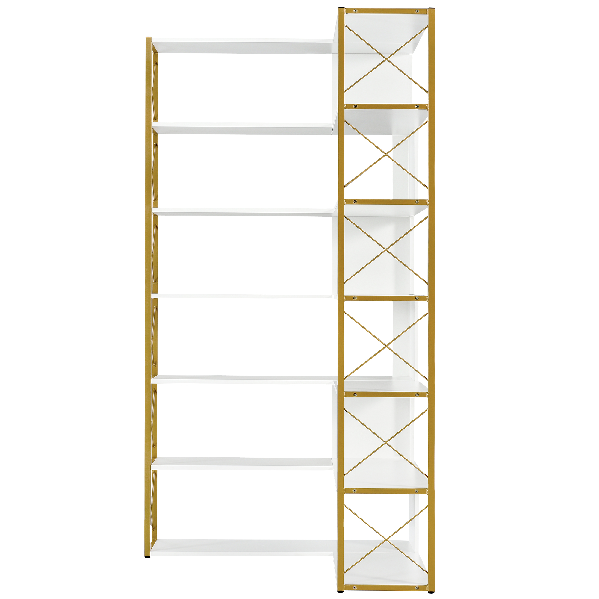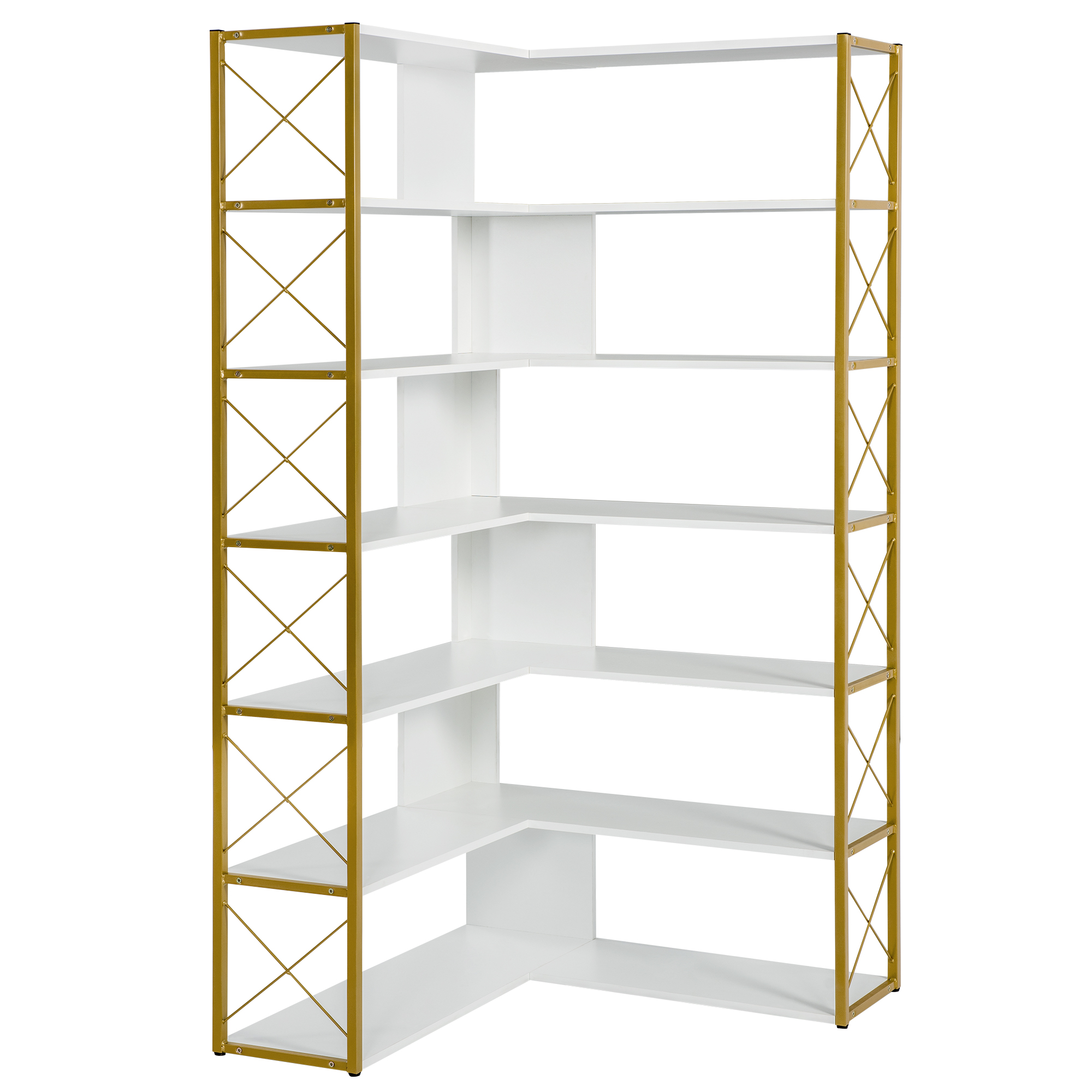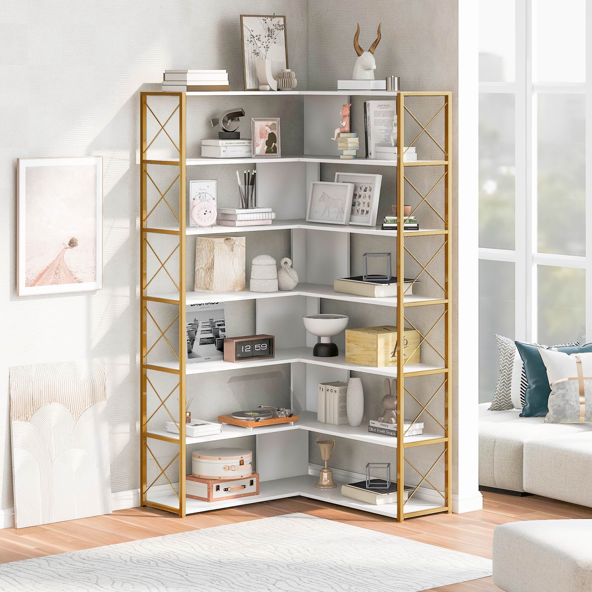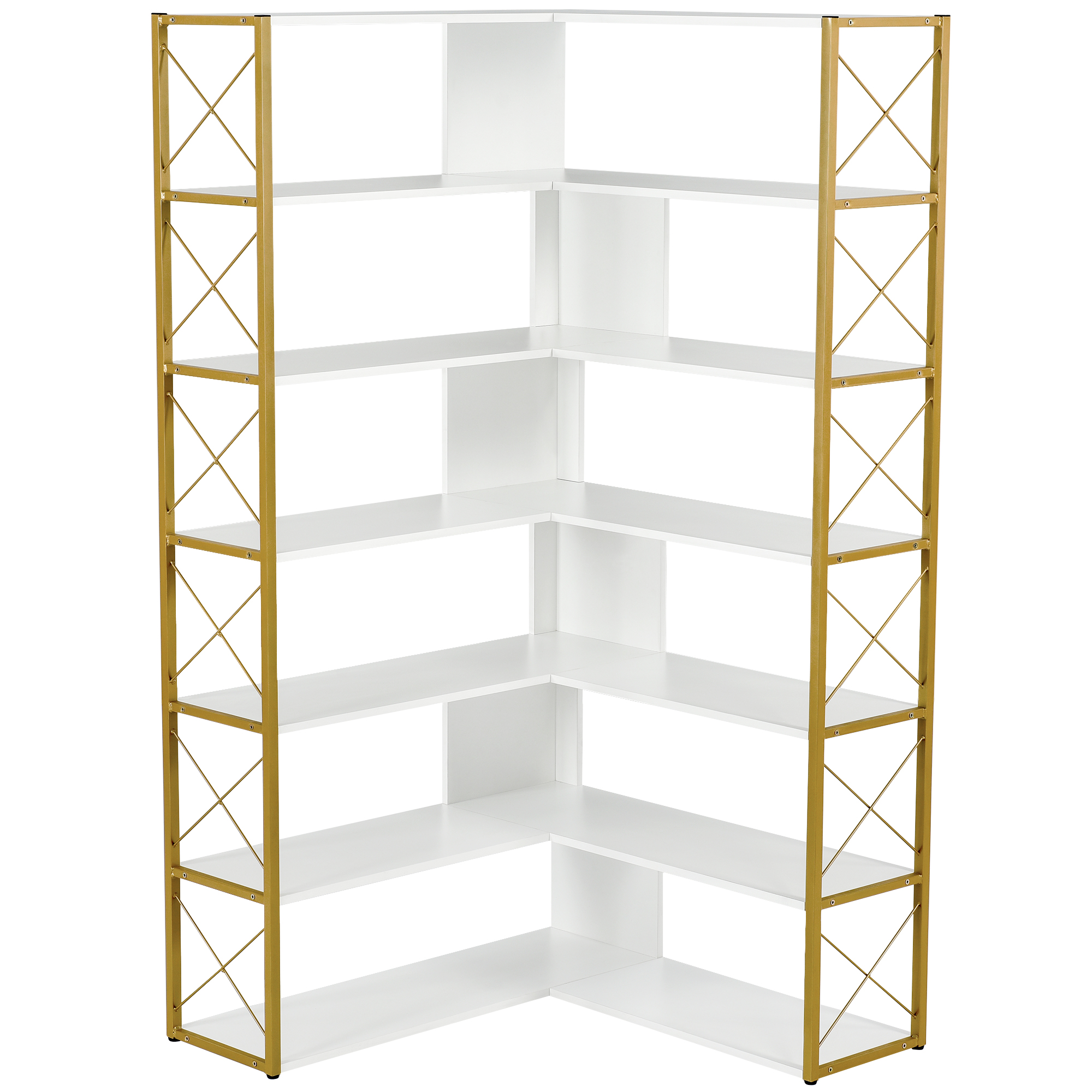 7-Tier Bookcase Home Office Bookshelf, L-Shaped Corner Bookcase