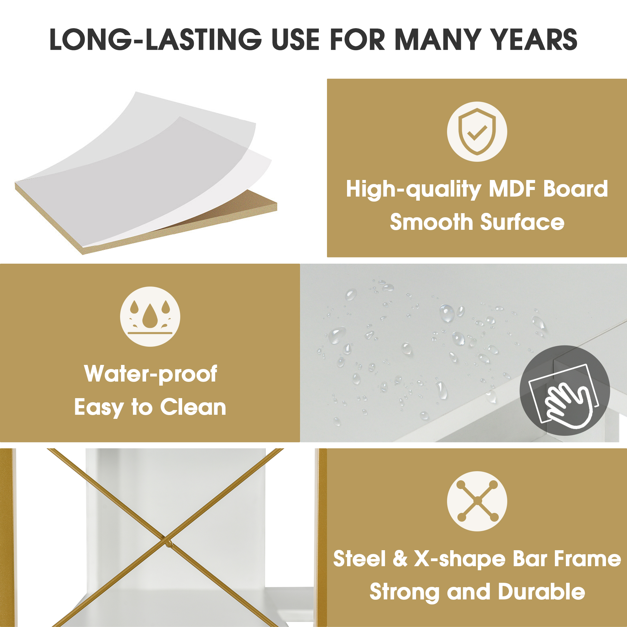 This tall bookshelf has a metal frame and high-quality MDF boards with high density and durability, both can ensure stability and long-term usage in daily life. The surface of the MDF boards is smooth, water-proof, and easy to clean. The combination of metal and MDF boards makes this bookshelf not only very practical but also can save space as much as possible.