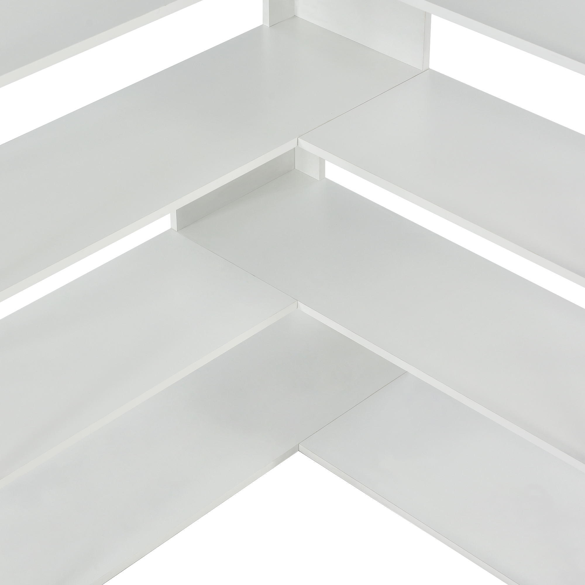 As a piece of functional furniture, this elegant and tall bookshelf has an L-shaped design, and it makes more efficient use of corner space. The X-shaped design on both sides is not only graceful but also can further strengthen the stability of the whole bookshelf and can be used as a safe facility to prevent items from falling.