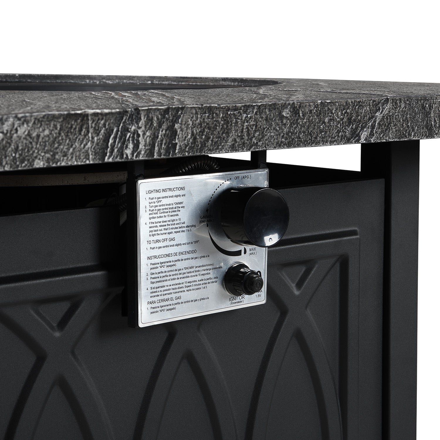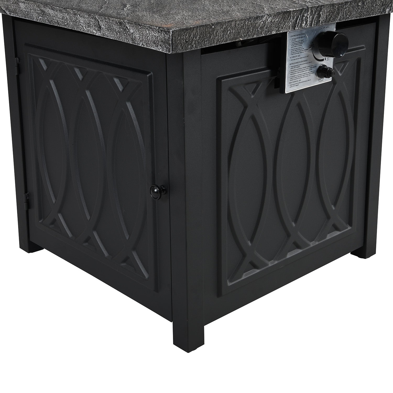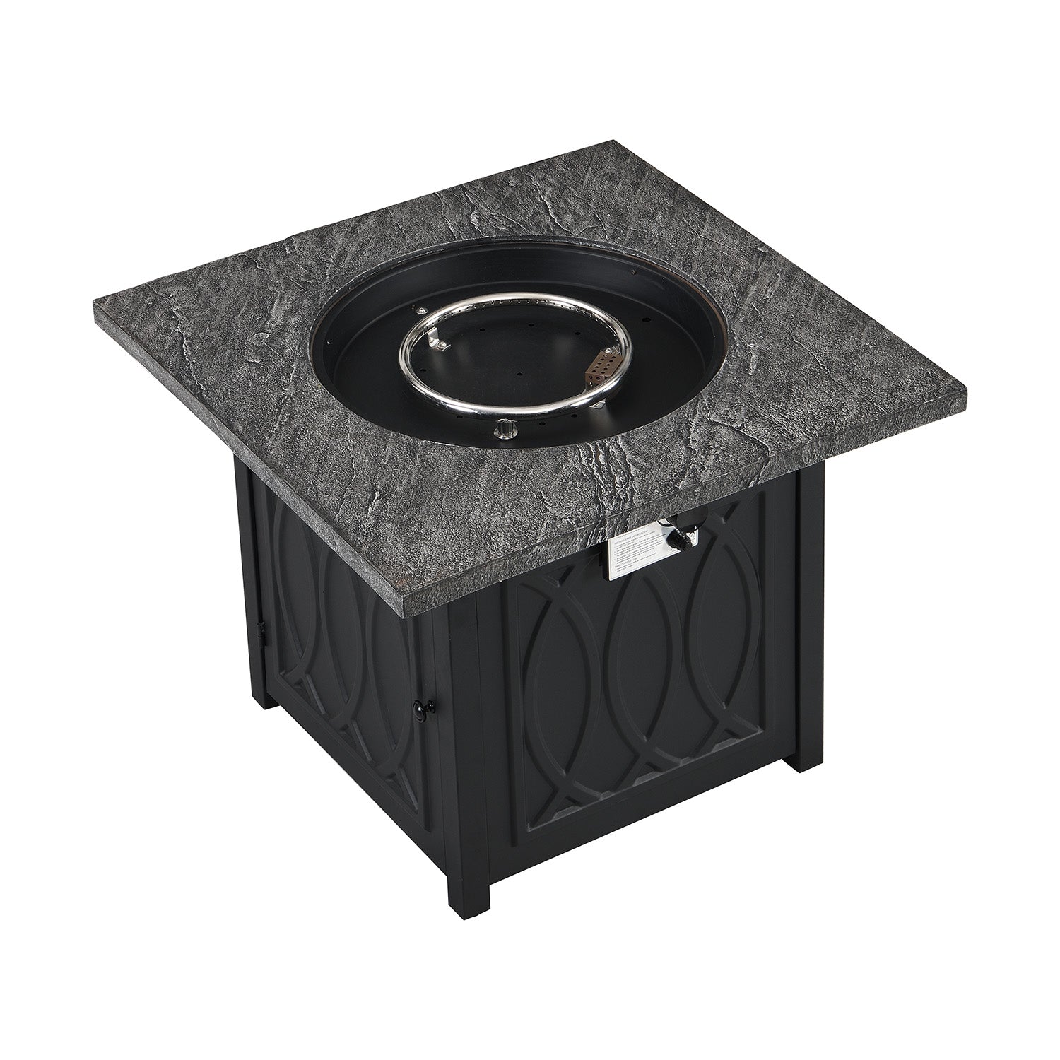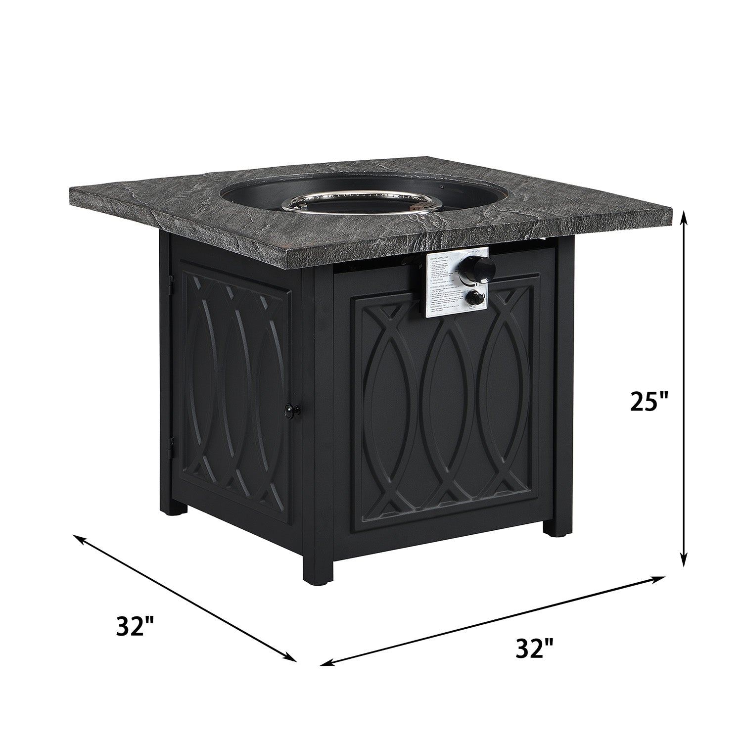 Gray Fire Pit Table, 32-inch Square 50,000 BTU Auto-Ignition Propane Gas Firepit with Waterproof Cover