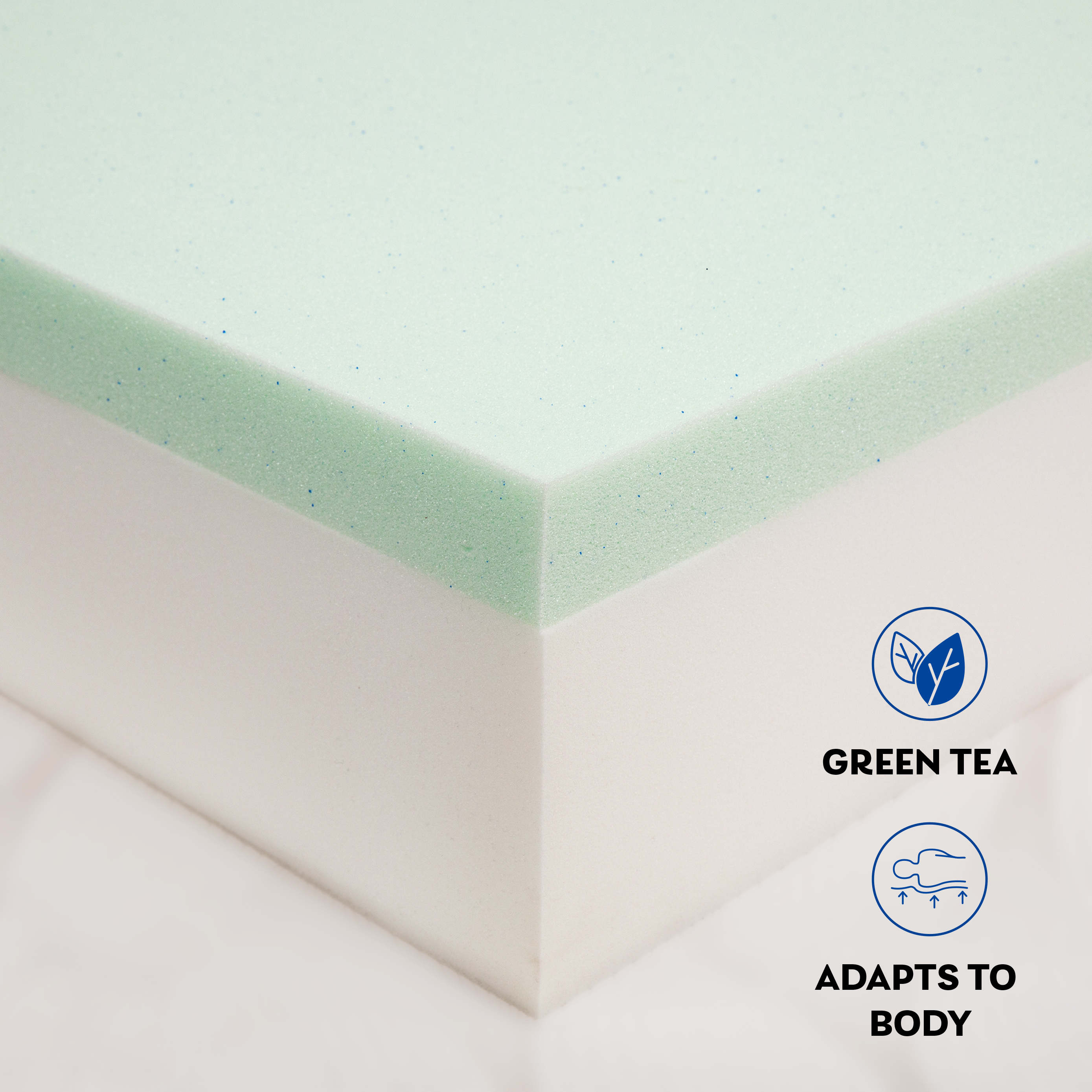• Green Tea Gel Infused Memory Foam - The memory foam is infused with a cooling gel that keeps all of the positive properties of memory foam, while mitigating temperature issues.