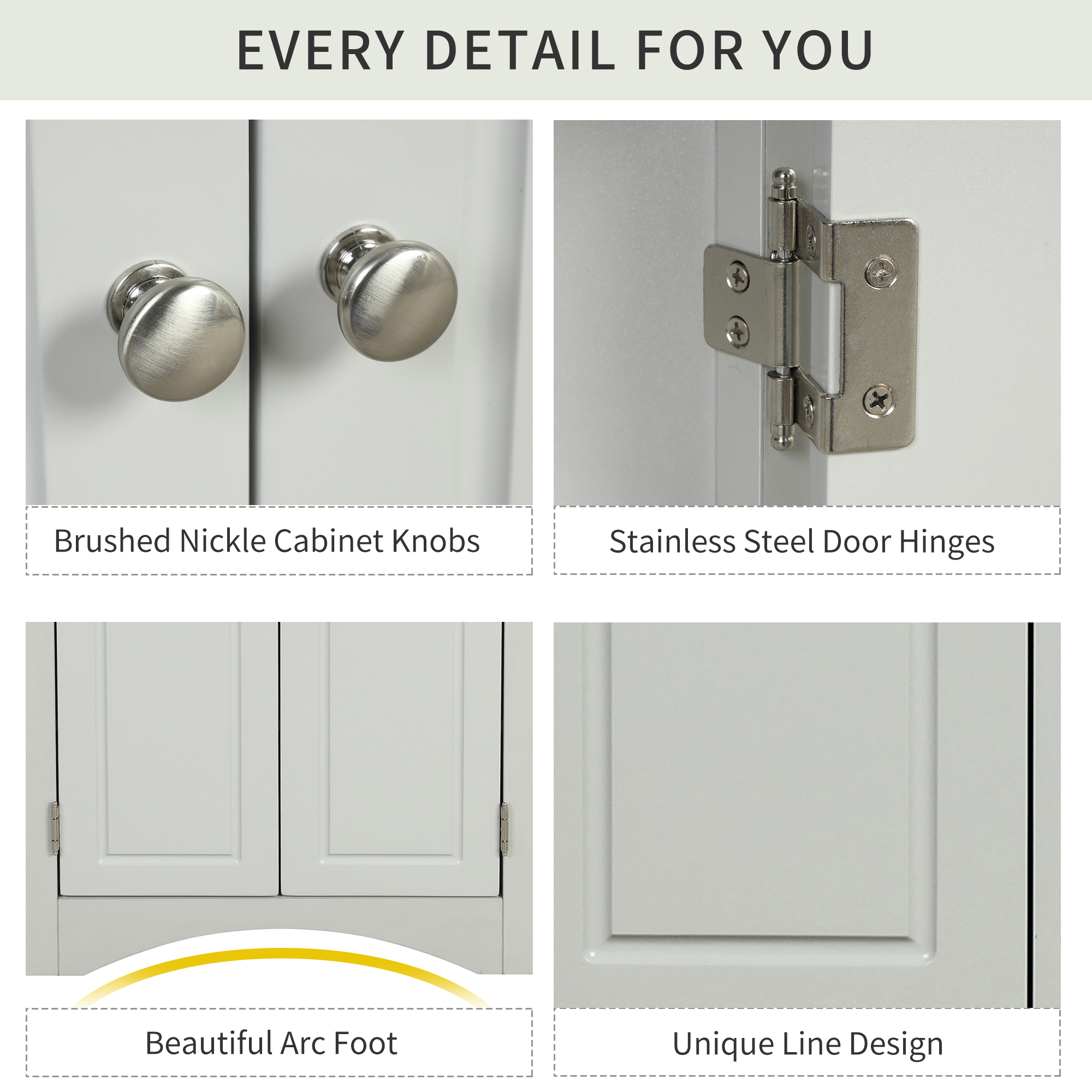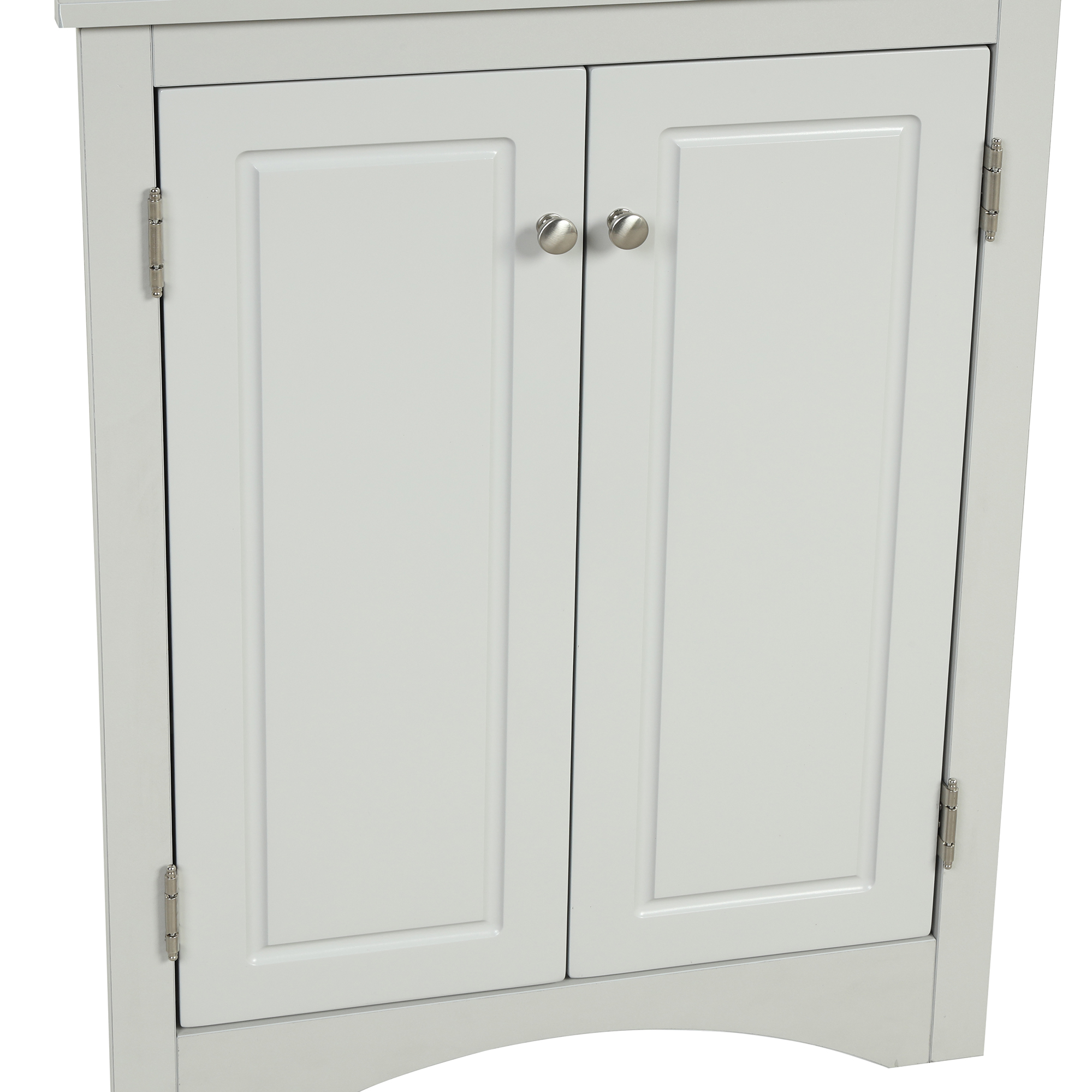 ★AFFORDABLE CABINET: This corner storage cabinet with doors is designed not only to meet your visual demands but also to satisfy your functional needs. With inside adjustable shelves, it can meet your various storage needs. Brushed nickel knobs make it convenient for you to open and close.