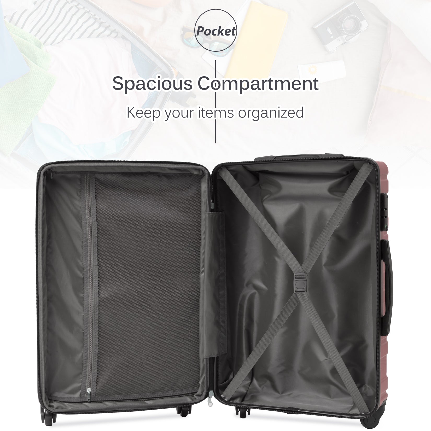 - [Handy Packing] - Includes a spacious, highly functional interior with mesh pockets and elastic tie-down straps. Pack neatly and securely.
