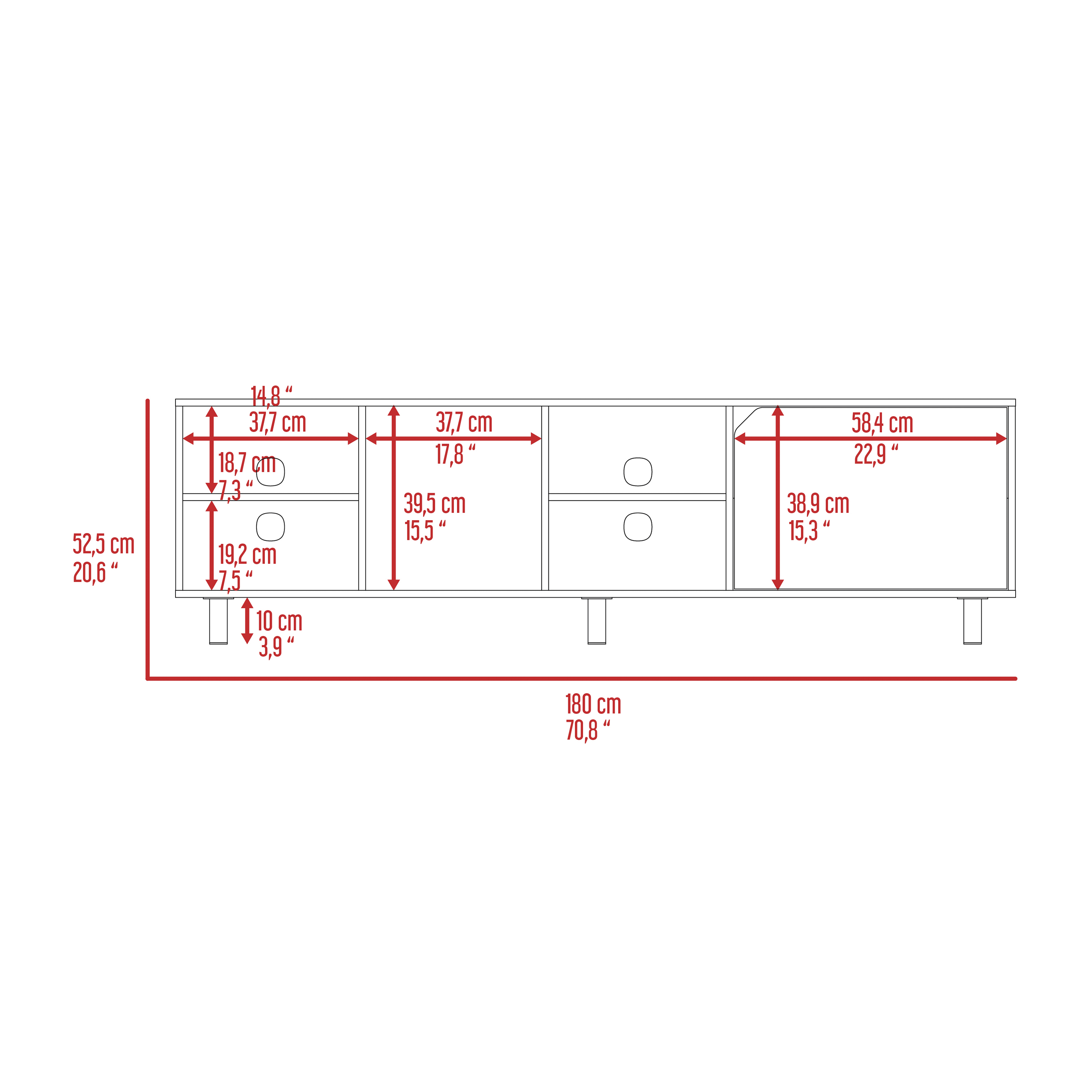 The new product of the collection, the Harwich TV Stand, is excellent for you if you have always dreamed of an ideal spot to organize your new TV with a modern touch and functionality due to its drawers and shelves suitable for storage. Its one-of-a-kind and ergonomic design make it ideal for any environment. It features back holes on the inside to keep your cables orderly.Set includes: One (1) TV standDimensions: 20.6 inches high x 70.8 inches wide x 13.7 inches deepFinish Color: Light OakMaterials: Manufactured woodNumber of shelves: 5-ShelfNumber of doors: 1-DoorFour open shelvesBack holesFive legs 3.9"TV capacity 70"