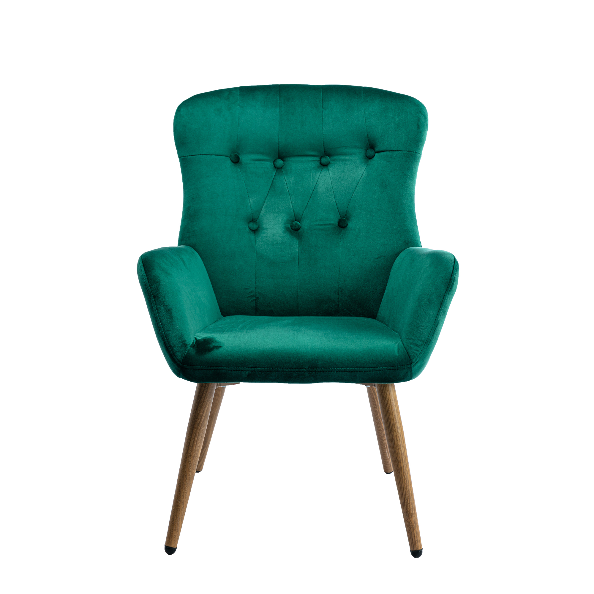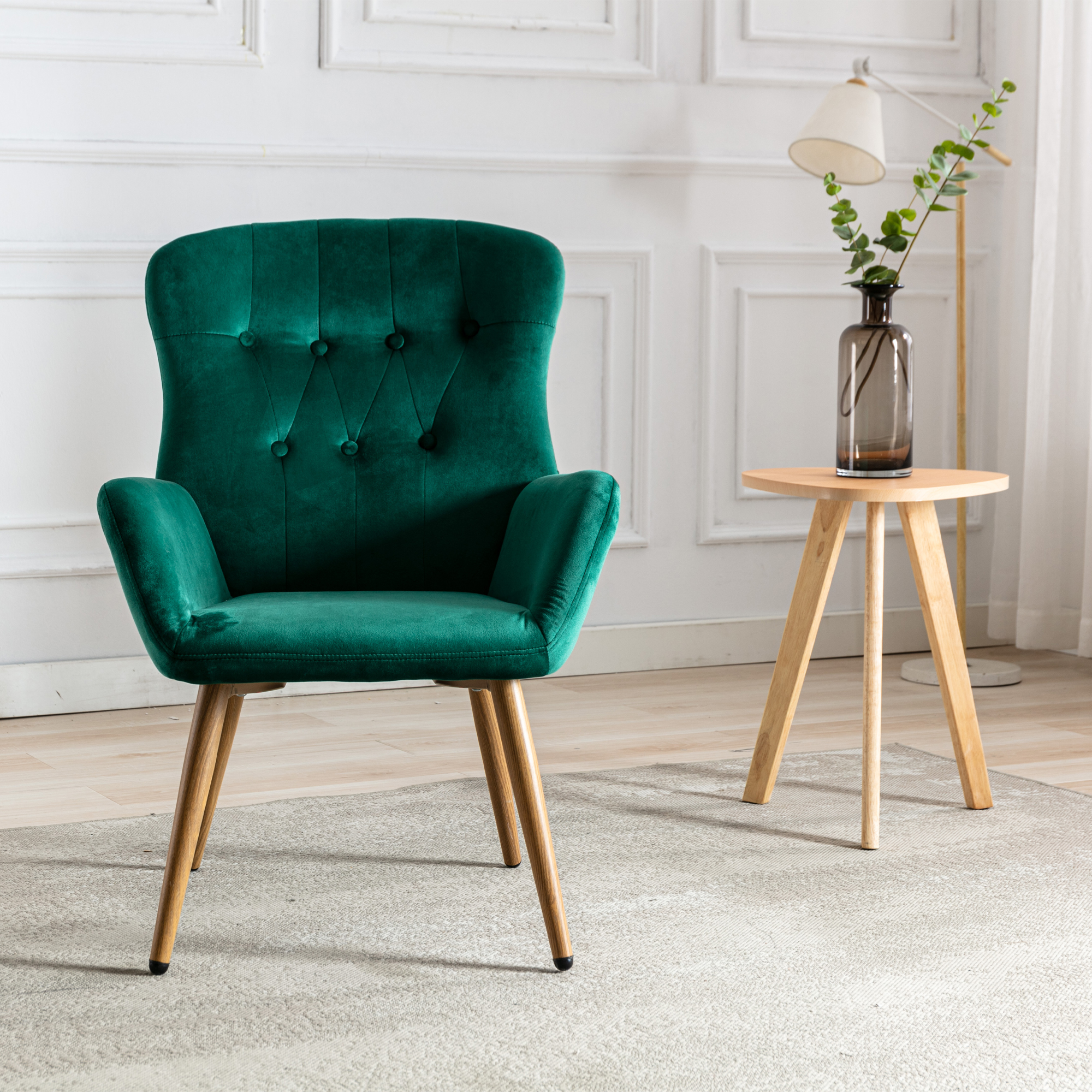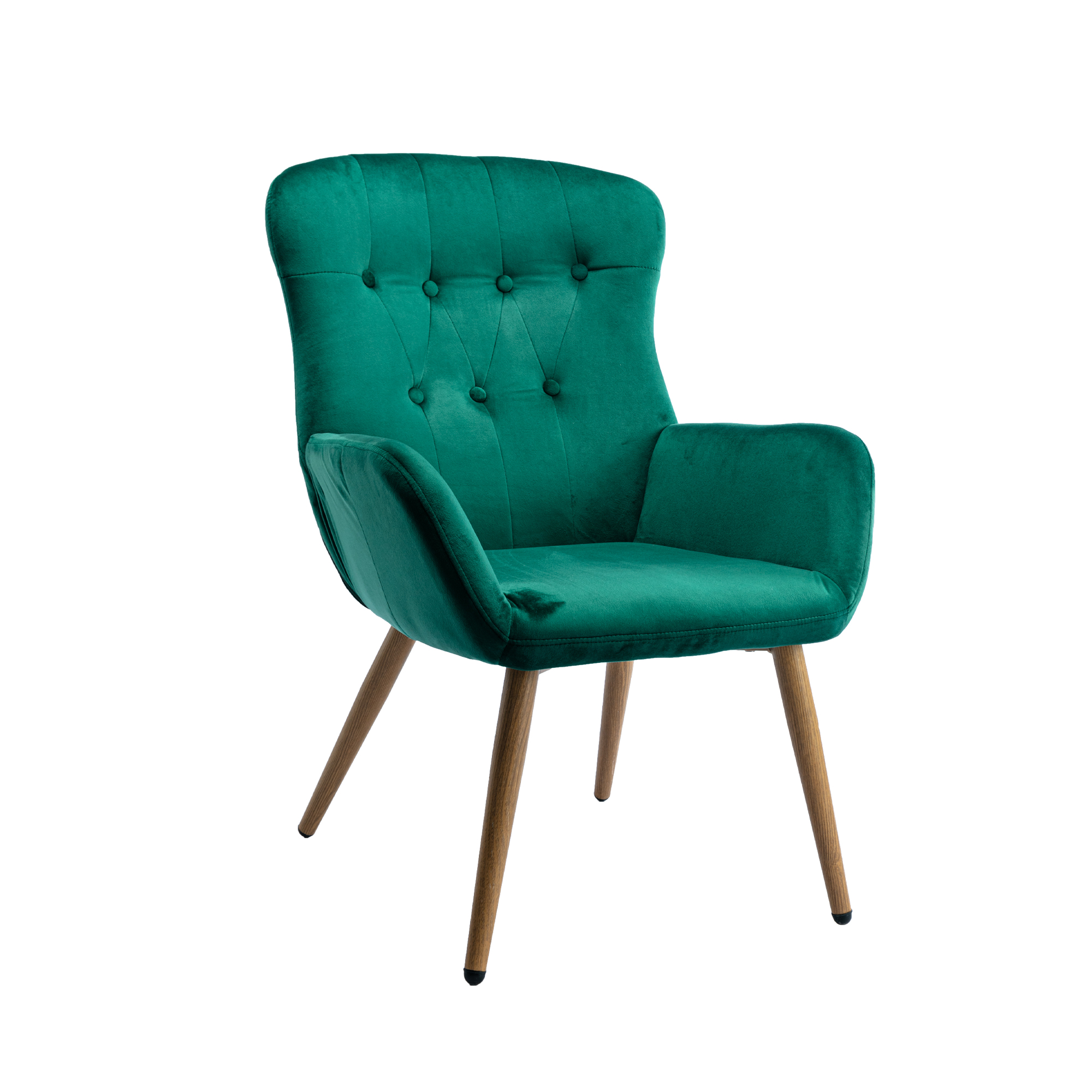 Hengming Accent Chair Modern Tufted Button Wingback Vanity Chair with Arms Upholstered Tall Back Desk Chair with Metal Legs for Living Room Bedroom Waiting Room(Green)