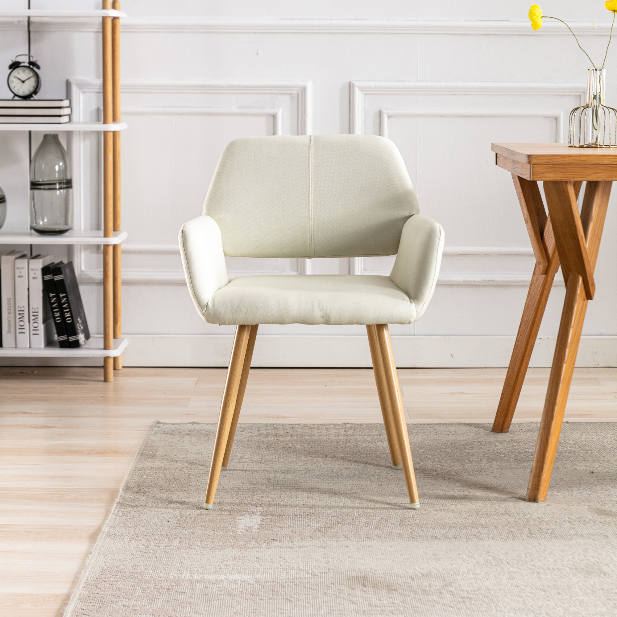 Hengming Small Modern Living Dining Room Accent Chairs Fabric Mid-Century Upholstered Side Seat Club Guest with Metal Legs Legs (Beige)