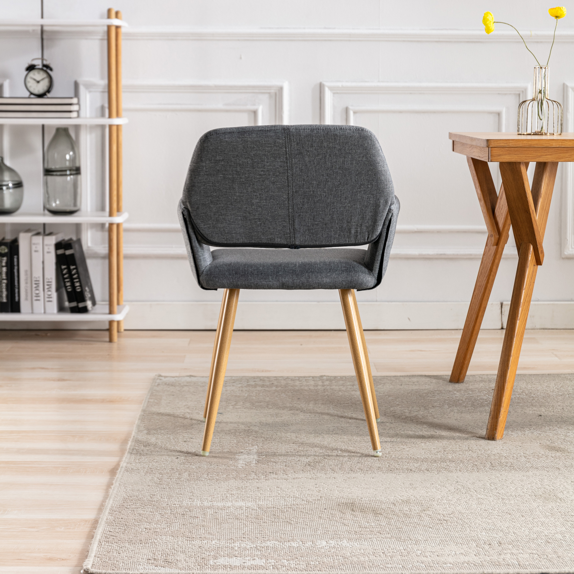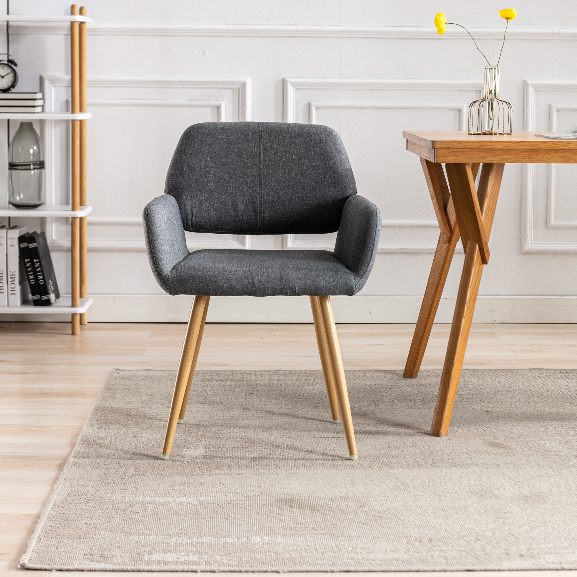 Hengming Small Modern Living Dining Room Accent Chairs Fabric Mid-Century Upholstered Side Seat Club Guest with Metal Legs Legs (Gray)