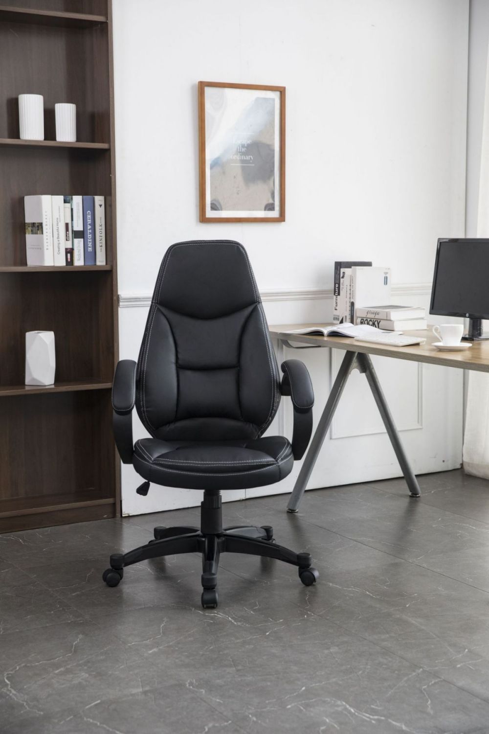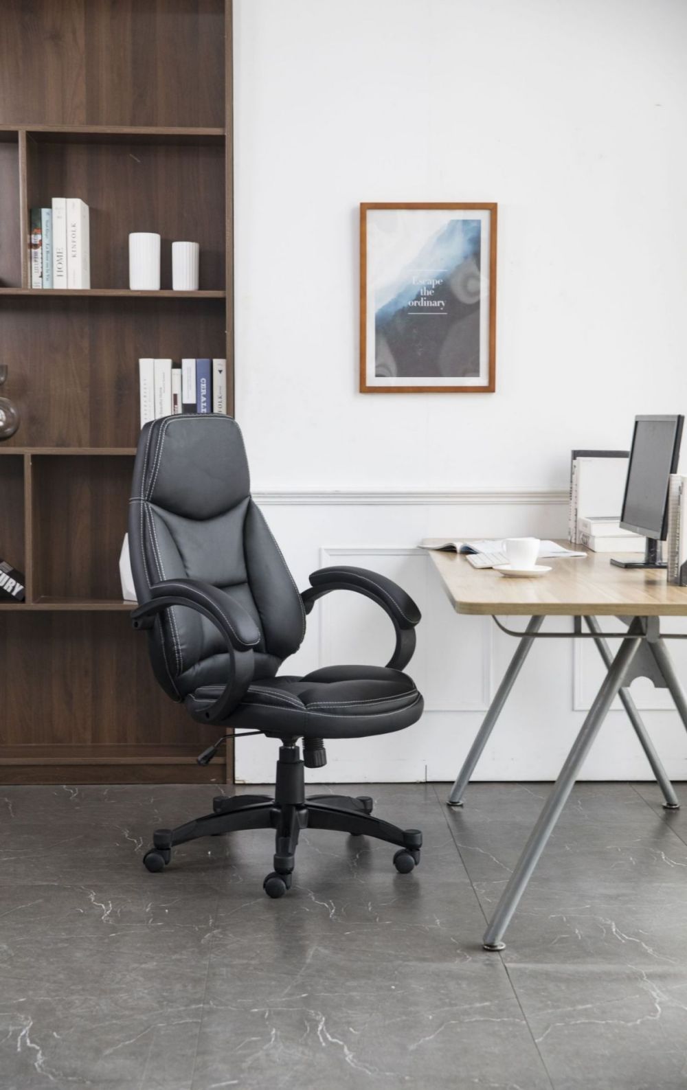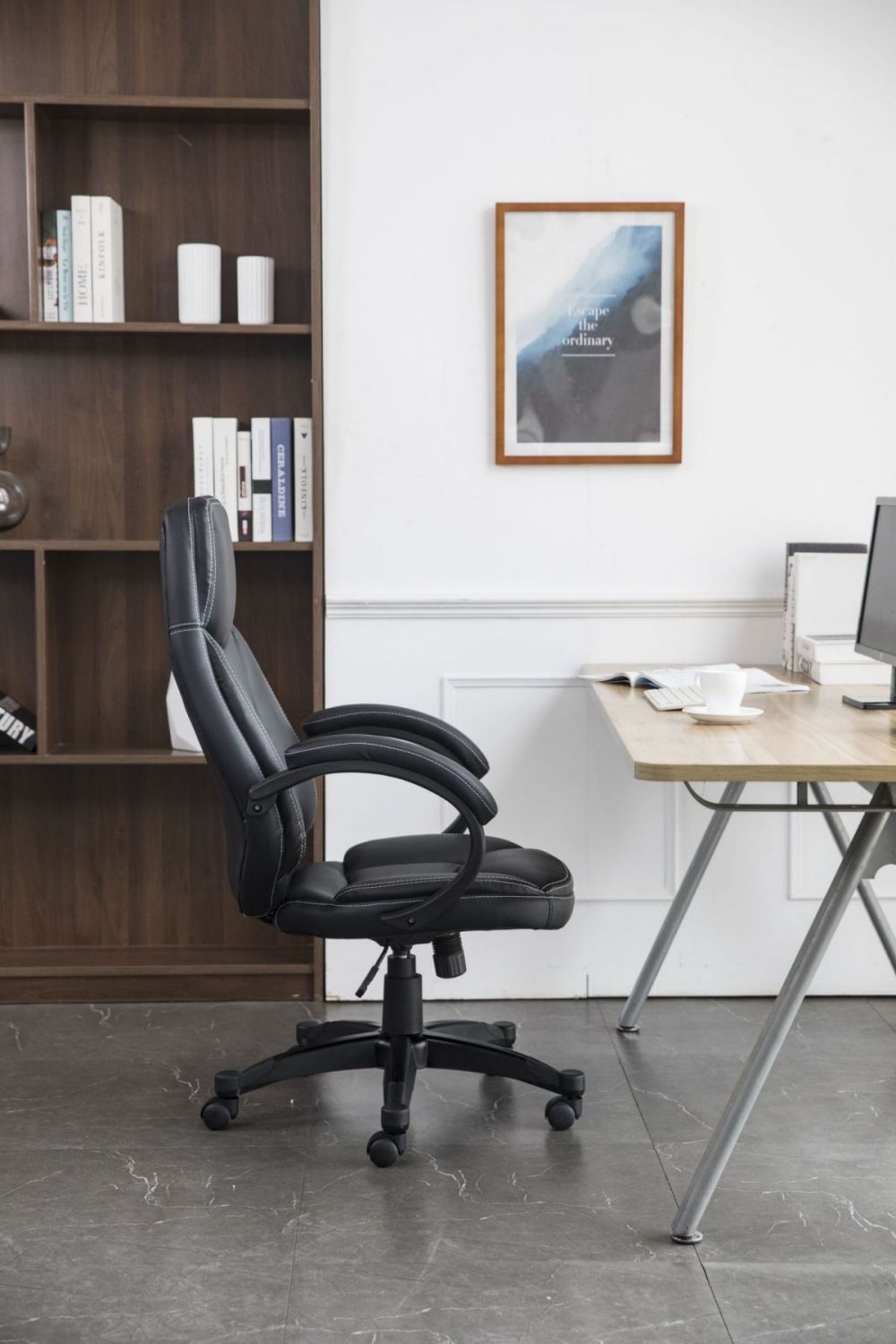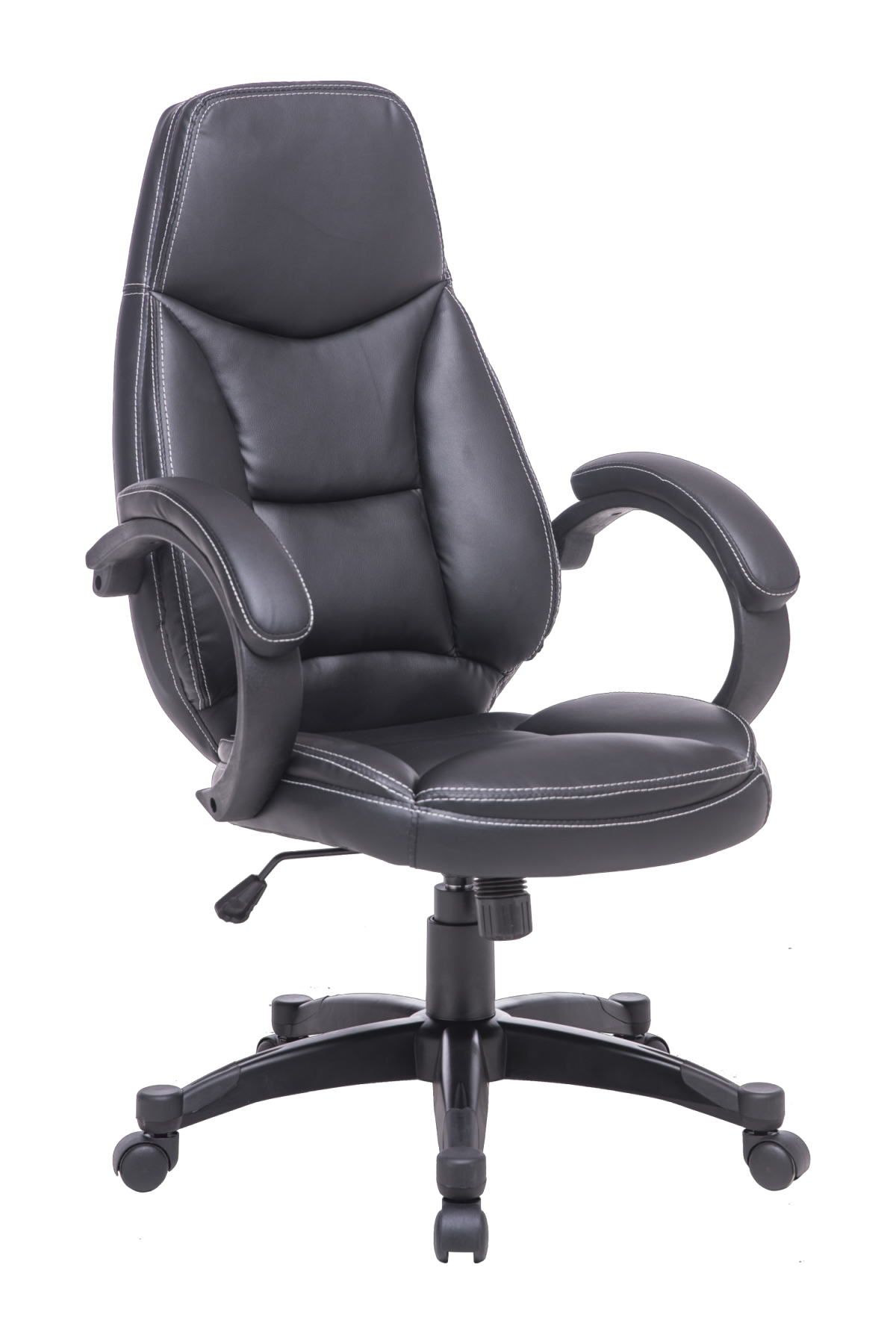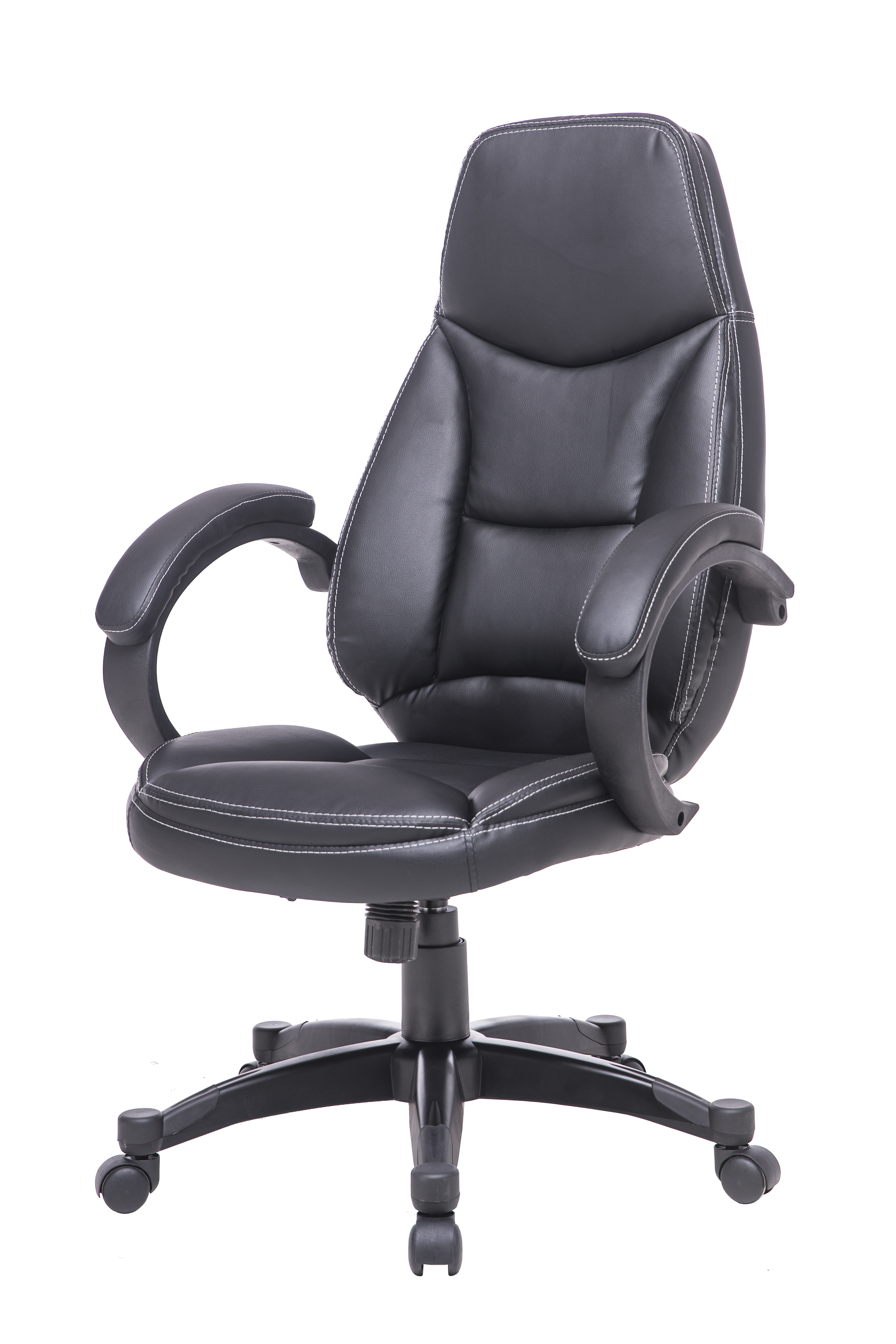 Comfortable executive chair upholstered in Faux Black Leather.