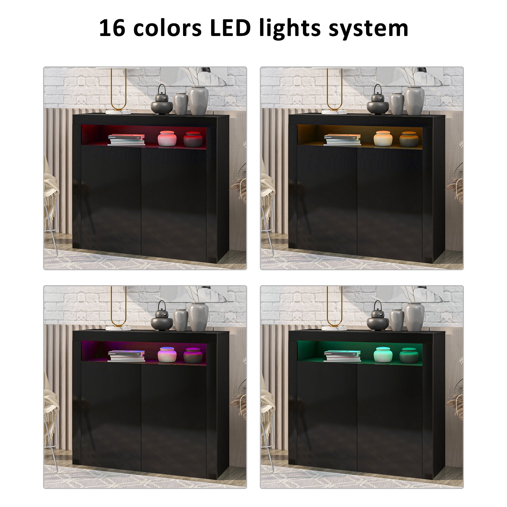 Decor Your Space: Modern minimalist LED light cupboard cabinet, high-end luxury, make life more layered. It has 16 state lighting colors and 4 lighting modes. You can choose from 7 color jumpy change, all fade out &fade in, 7 color fade change and 3 base color jumpy to enhance the fun in your Living room. A detailed instruction is placed inside the controller box, if you didn’t find it, it always be welcome to contact us.