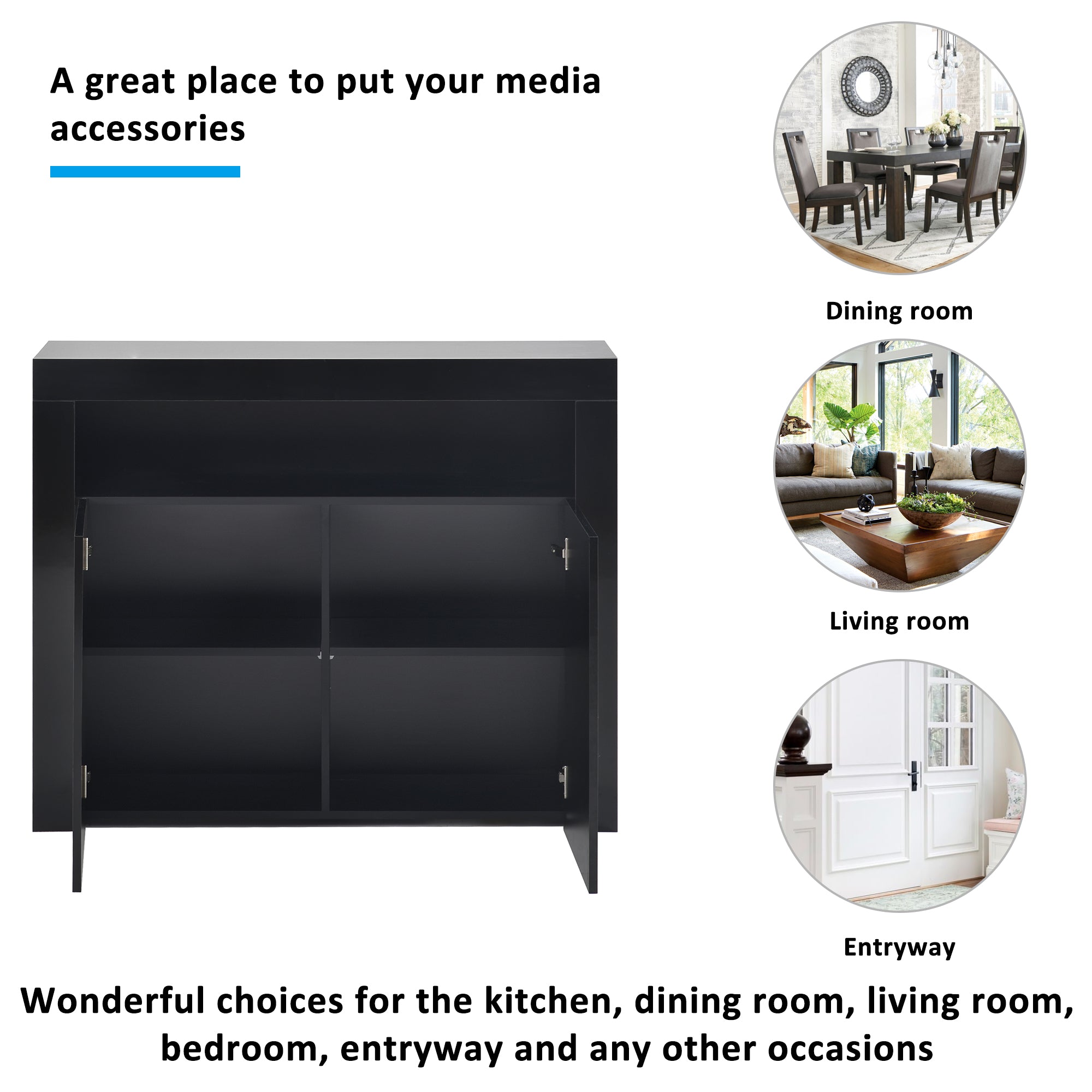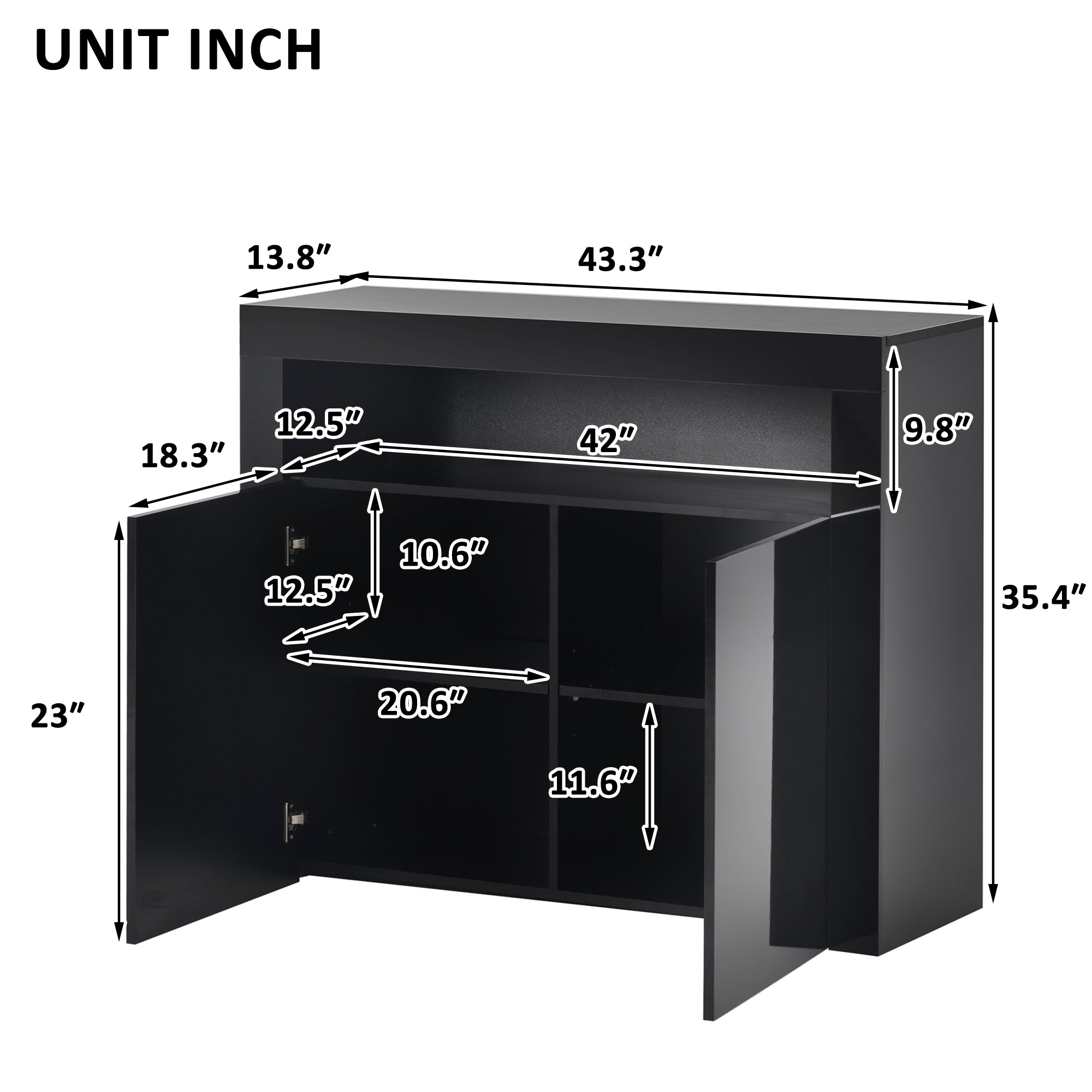 Modern Design: With the combination of high gloss appearance and modern trend characteristics, this sideboard reflects the modern sense of technology. Simple straightforward lines represent modern trend at the same time, simple but classic.