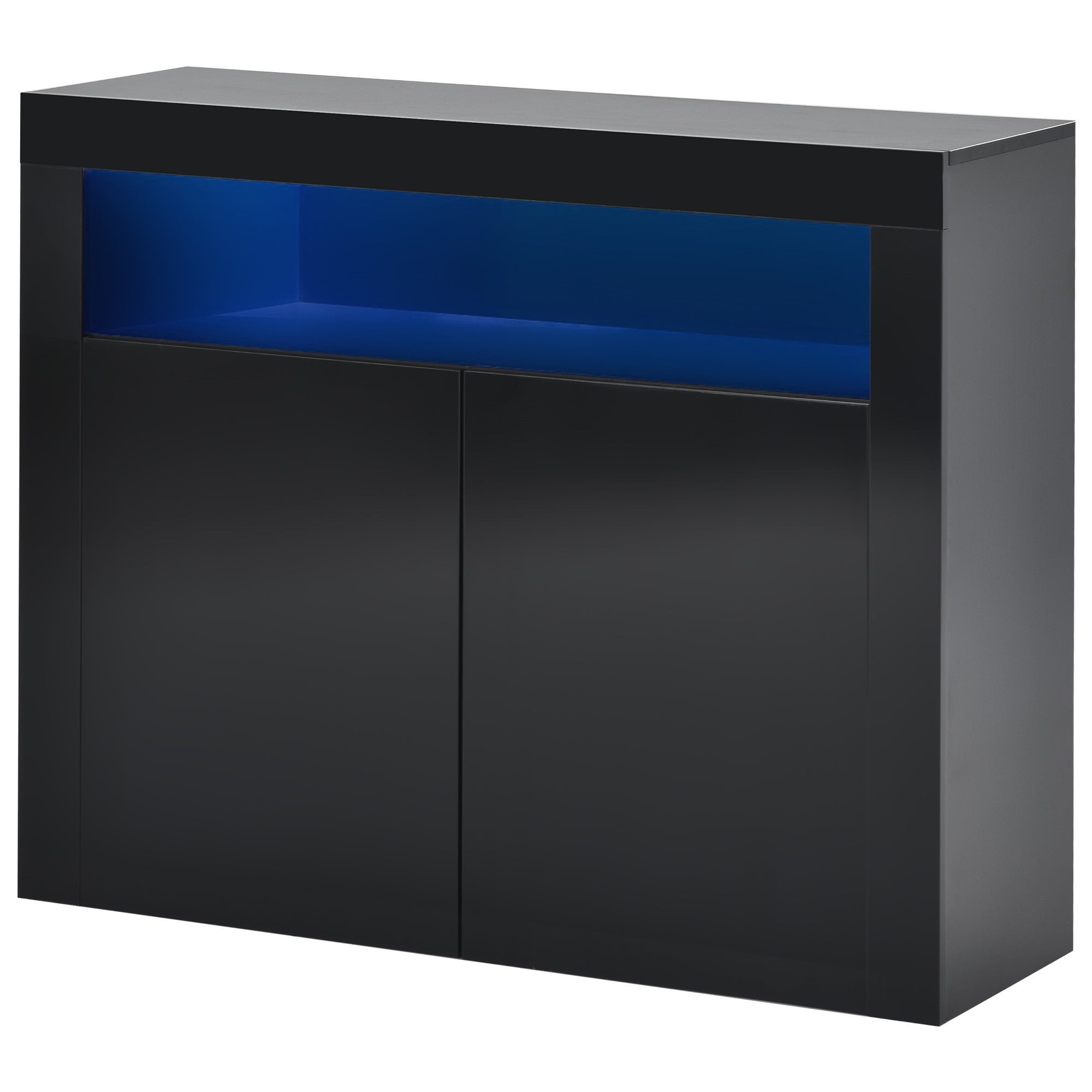 High Gloss Sideboard Modern 2-Door Storage Cabinet with LED Lights, 16 Colors