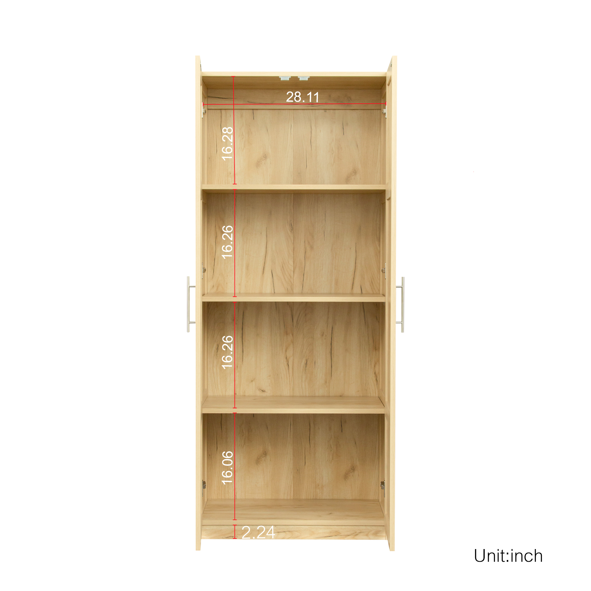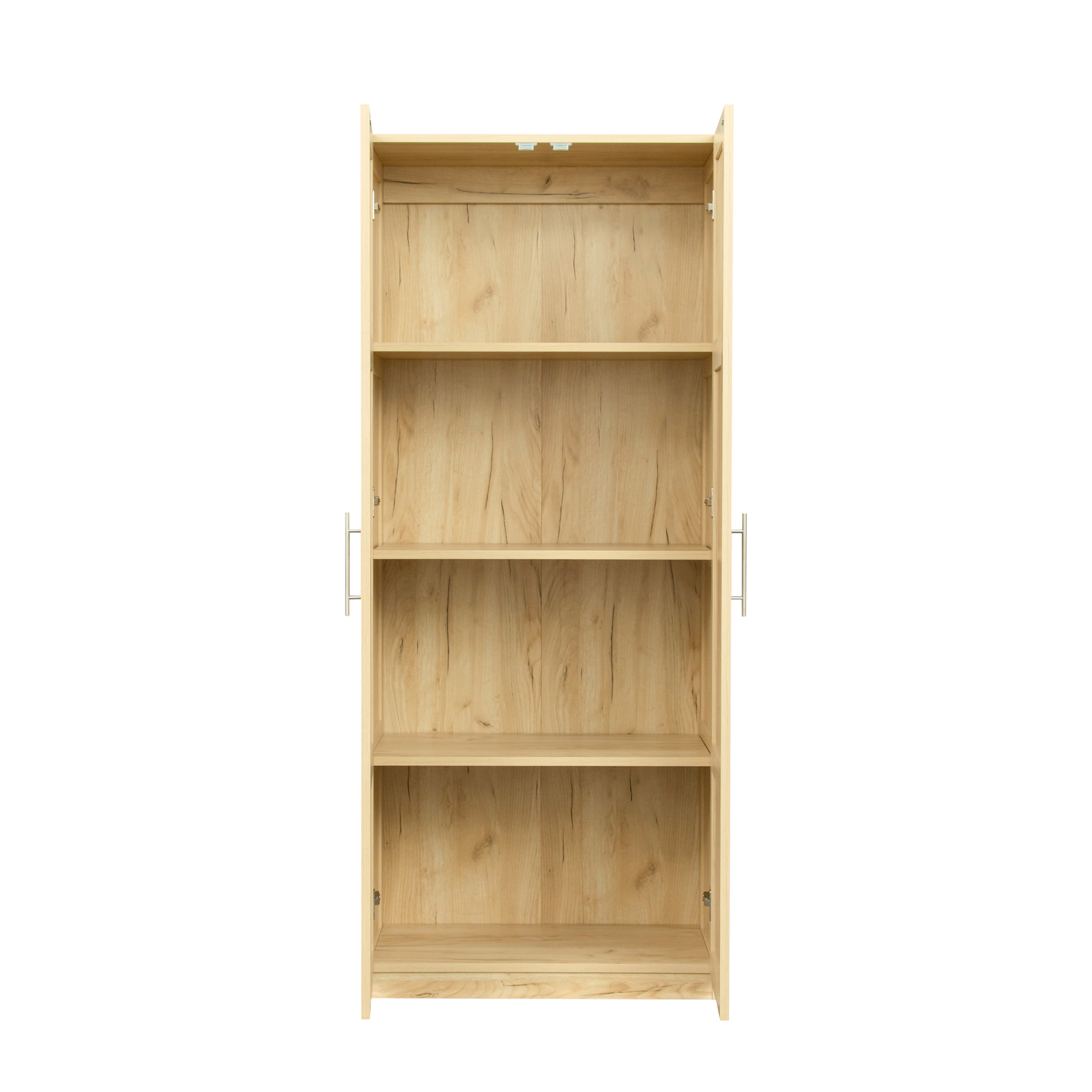 High wardrobe and kitchen cabinet with 2 doors and 3 partitions to separate 4 storage spaces, oak