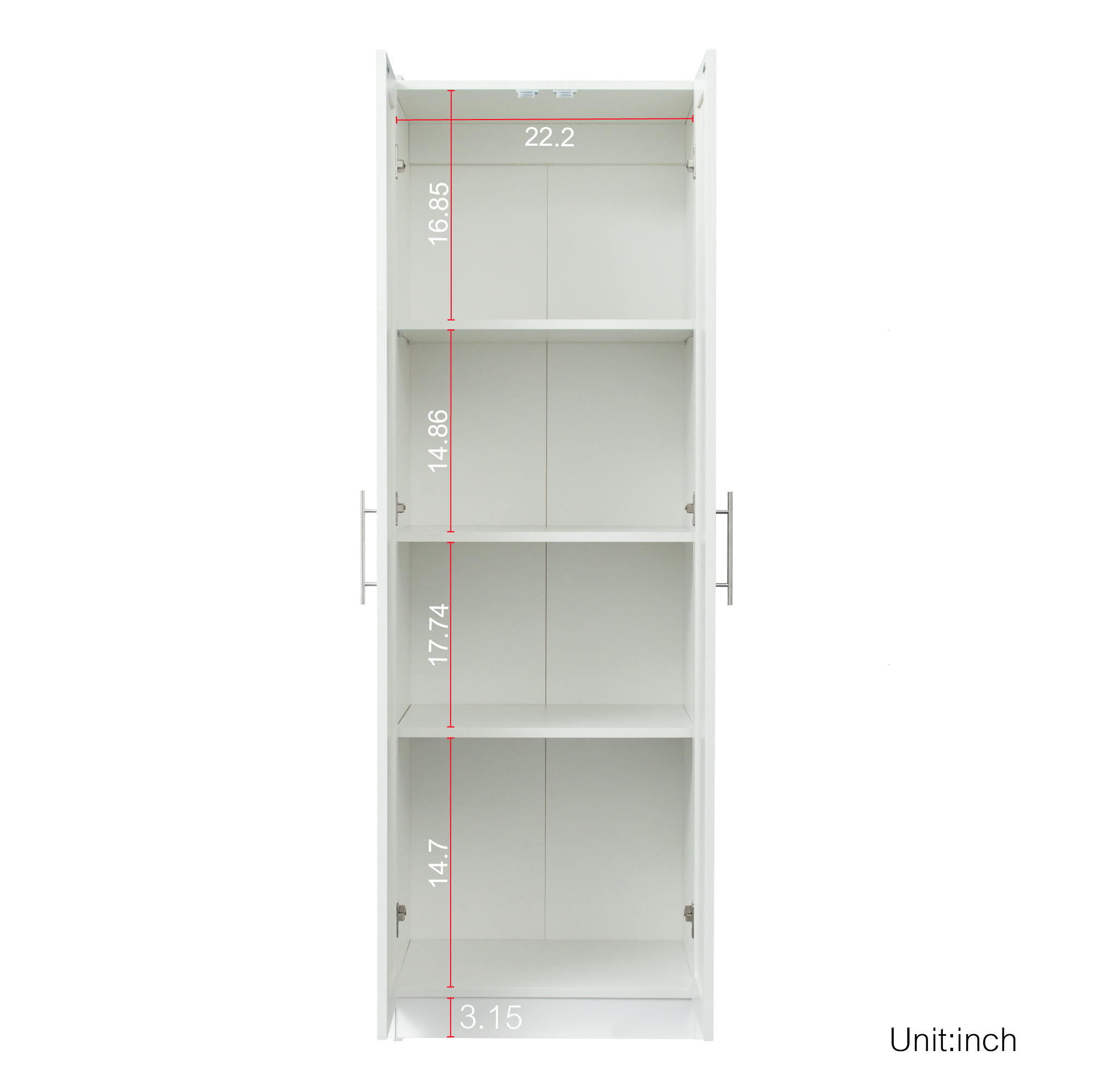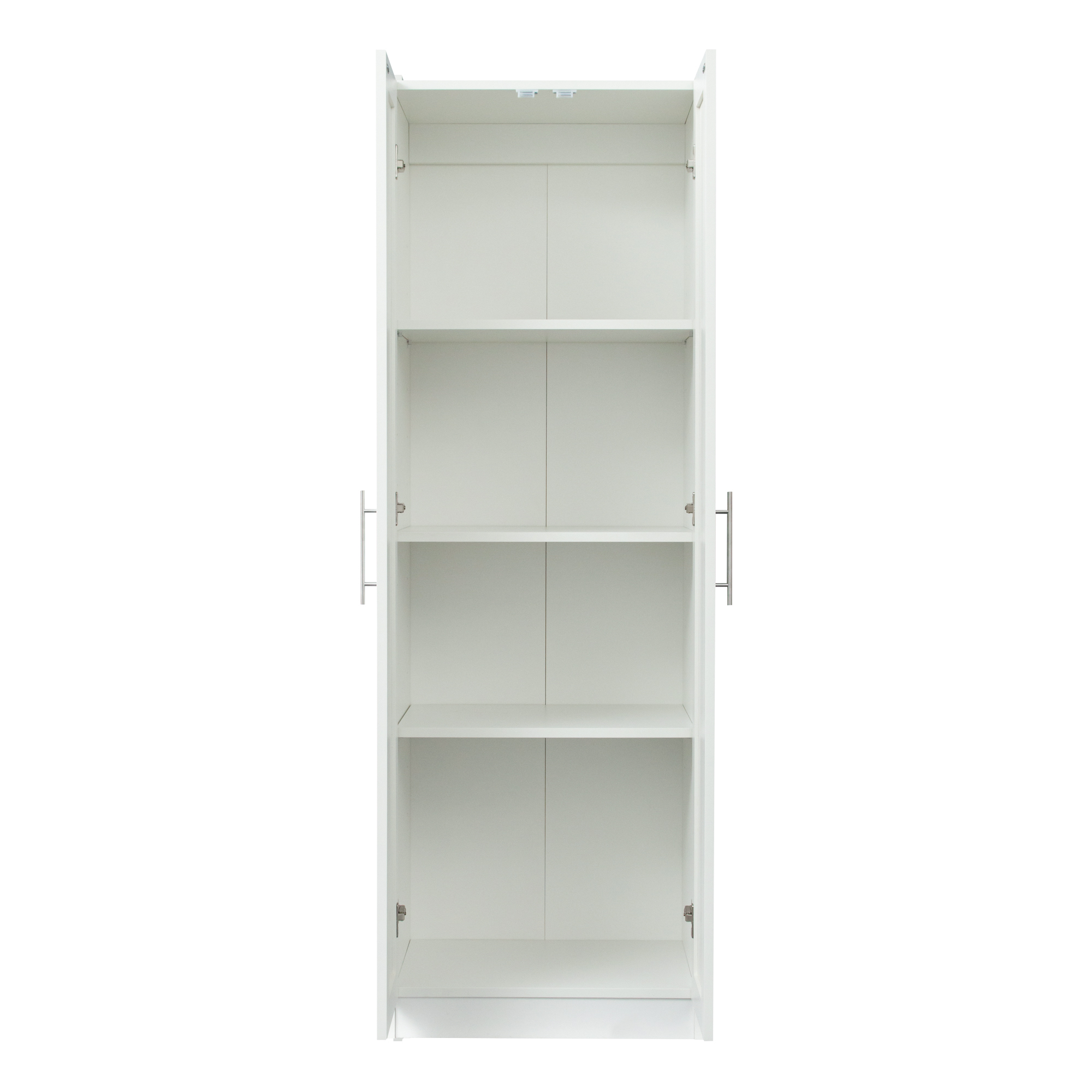 High wardrobe and kitchen cabinet with 2 doors and 3 partitions to separate 4 storage spaces, White
