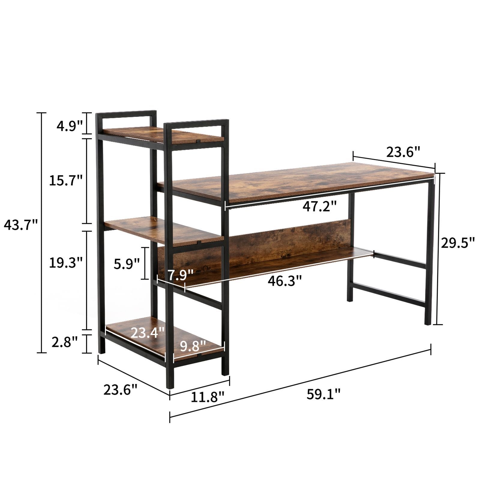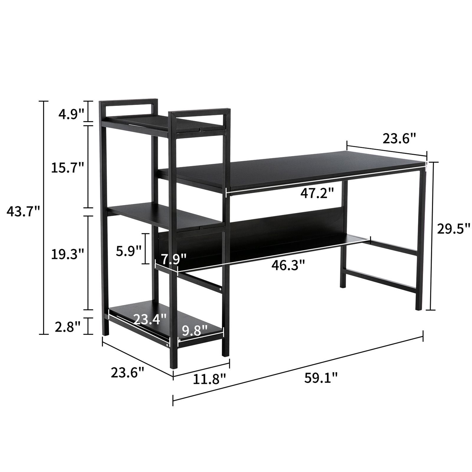 - Great Work Assistant: The table top is 47.24" length,the shelf is 11.81" length,and the entire length is 59.06 " .Desktop offers you a large working & writing space, which ensures that you have enough space to work or study comfortably.