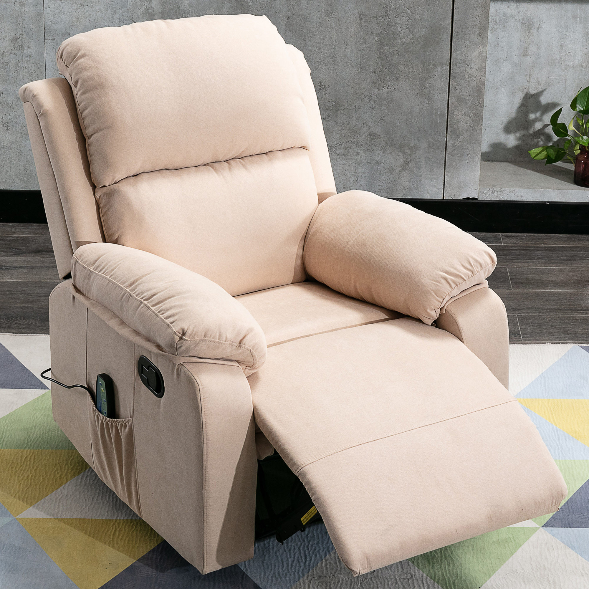 Home Overstuffed Pillow Armrest Recliner Chair Sofa with 6 Point Remote Control Massage