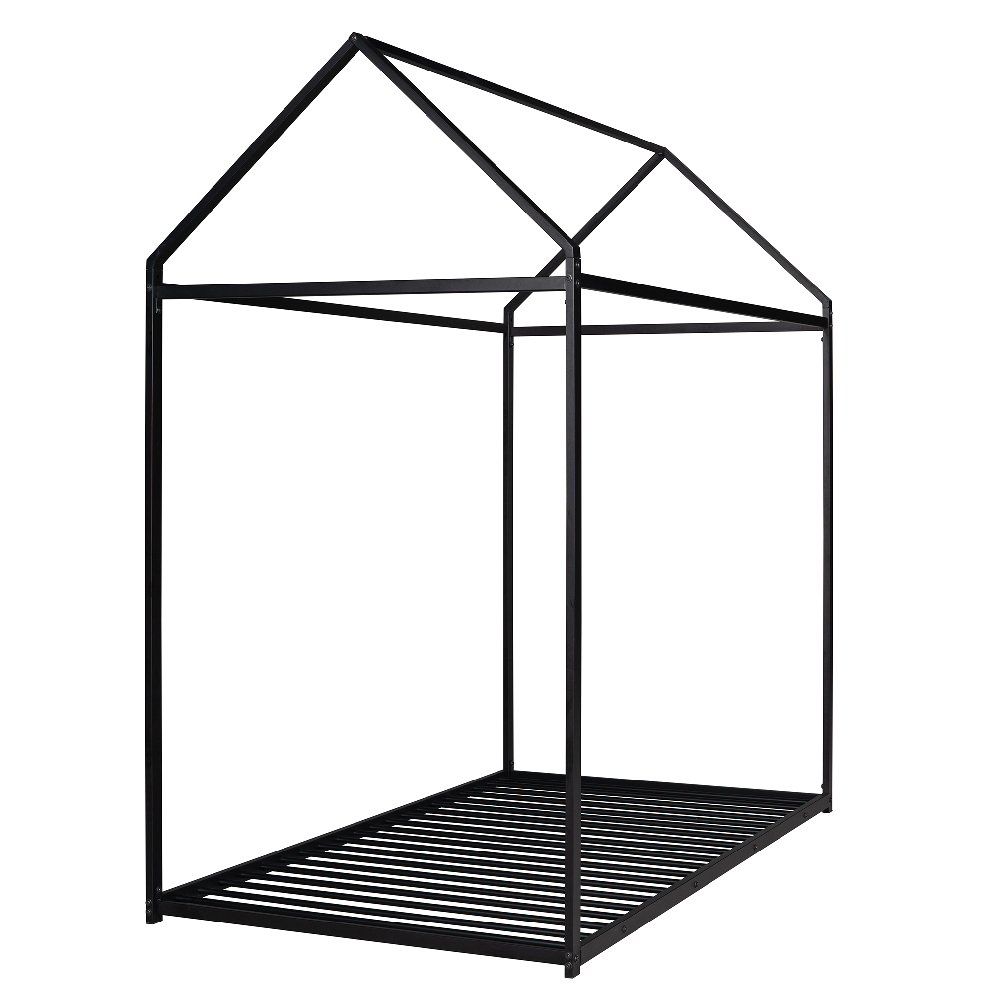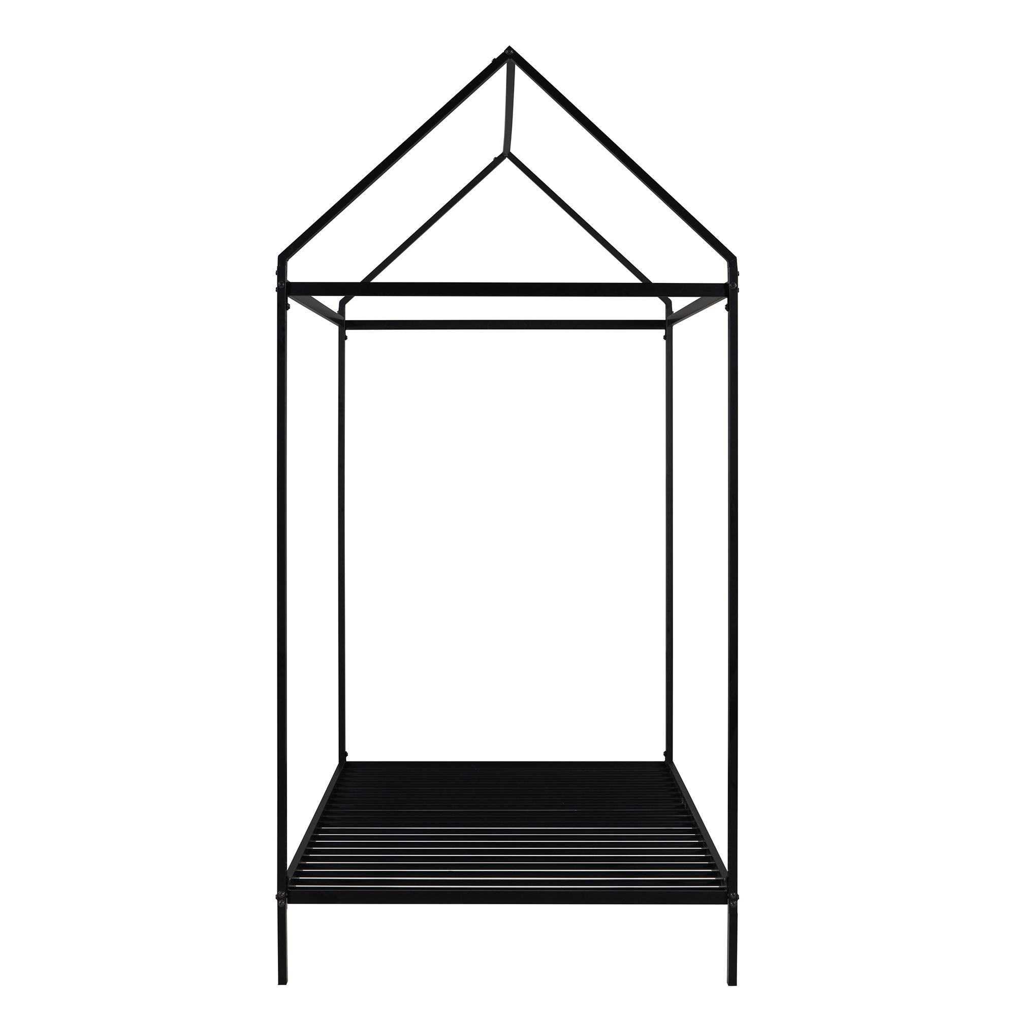 This super cool house bed is ideal for your family. You can create a cool bedroom hideaway and allow your child's imagination to take flight. You can decorate it according to your child's personality due to its versatile and simple framework like drape fabric, wind fairy lights, or attach toys. This Kids metal house bed is also perfect as a reading nook or a playhouse . This bed frame is made of Metal, making it exceedingly sturdy and durable. with stable slat let the bed frame Weight capacity reach 350LBS,