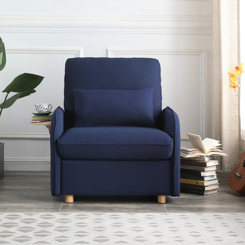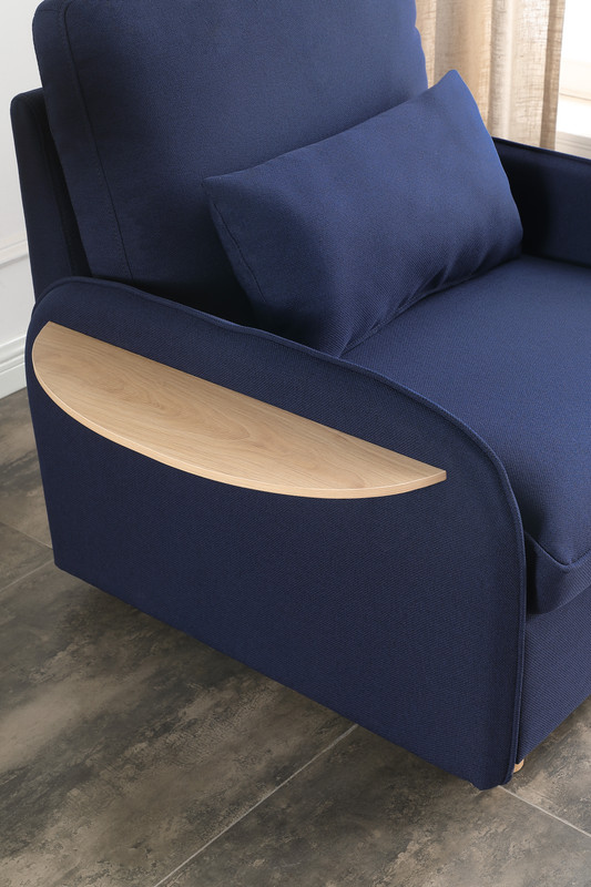 Huckleberry's collection brings a chair and ottoman with storage in modern fashion. The chair's folding side table can hold your phone, books, coffee, remote, or other things that you find essential when it's time to unwind. Ample storage is also available under the ottoman's seat when lifted. Comfortable chair with extra support from the lumbar pillow. Both the chair and ottoman stand strong with wooden legs.Ottoman Dimension: 28.5"W x 20.5"D x 17"HStorage Dimension: 22"W x14.5"D x 6.75"HFolding Side Table Dimension: 5.75"W x 26"D1 Throw Pillow26" Seat Width17" Seat Height20" Seat Depth18.5" Back Height21.25" Arm Height2" Wooden Leg HeightPocket Coil SeatRemovable Seat and Back Cushion