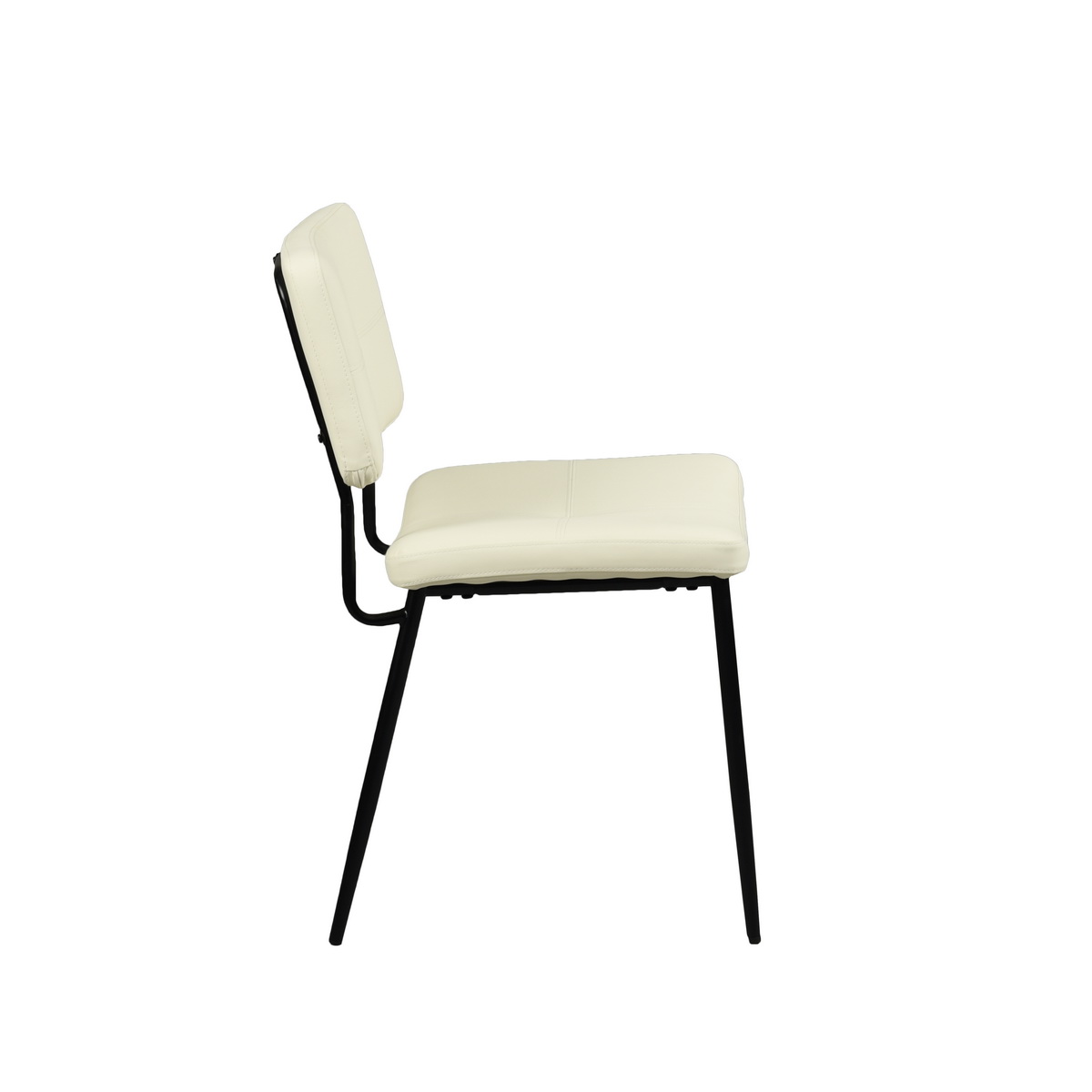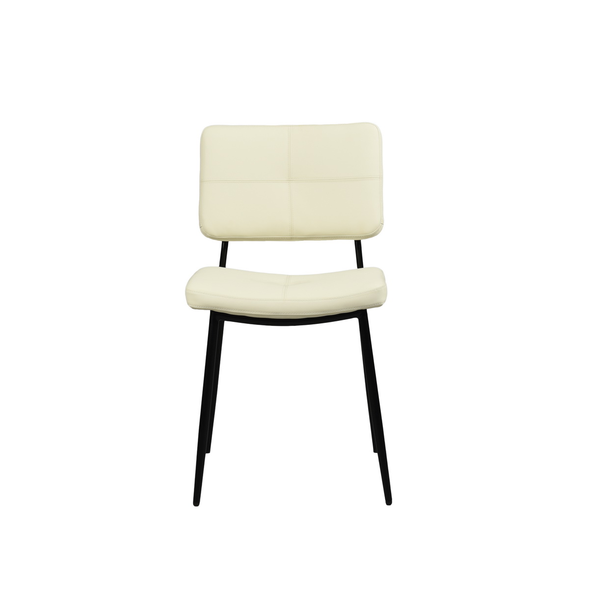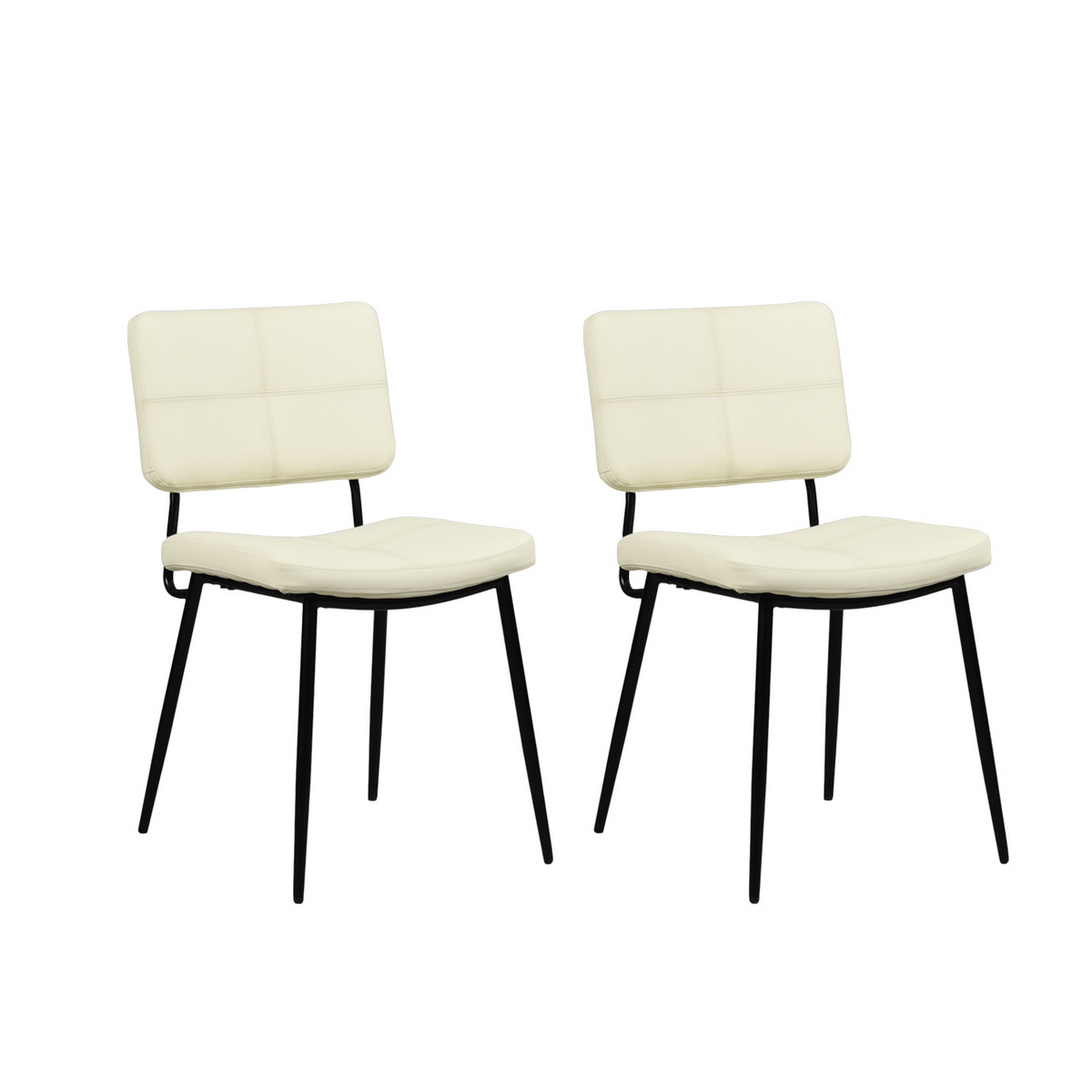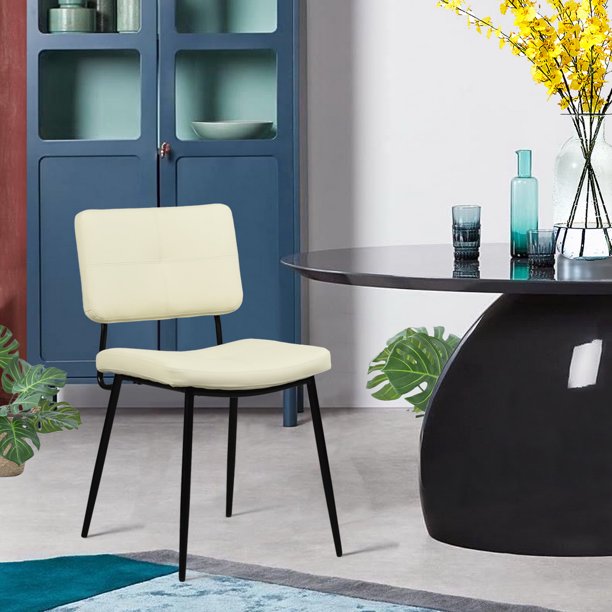 This set of two upholstered side chairs have a mid-century modern look and wide seats for the right place to sit in your dining room or home office. Chairs are built with a black metal frame, and they showcase thin, flared legs with plastic glides on the bottom to protect your floors. The backrest is ergonomically designed to ensure comfort while sitting for a long time 2Pcs chairs are included. Each chair accommodates up to 250 lbs.