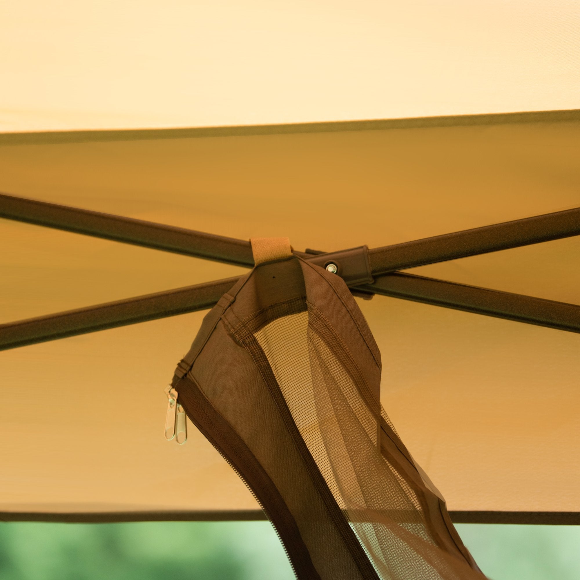 The gazebo with mesh sidewalls is perfect for family parties, weddings, picnics, sporting events, outdoor vending, craft fairs, camping trips, and more. This peak top hexagonal gazebo features a solid steel frame for stability and six mesh sidewalls (each with a zippered door) for ventilation and insect protection. With this versatile gazebo, your family and friends will have an ideal spot to enjoy outdoor living at a variety of events.