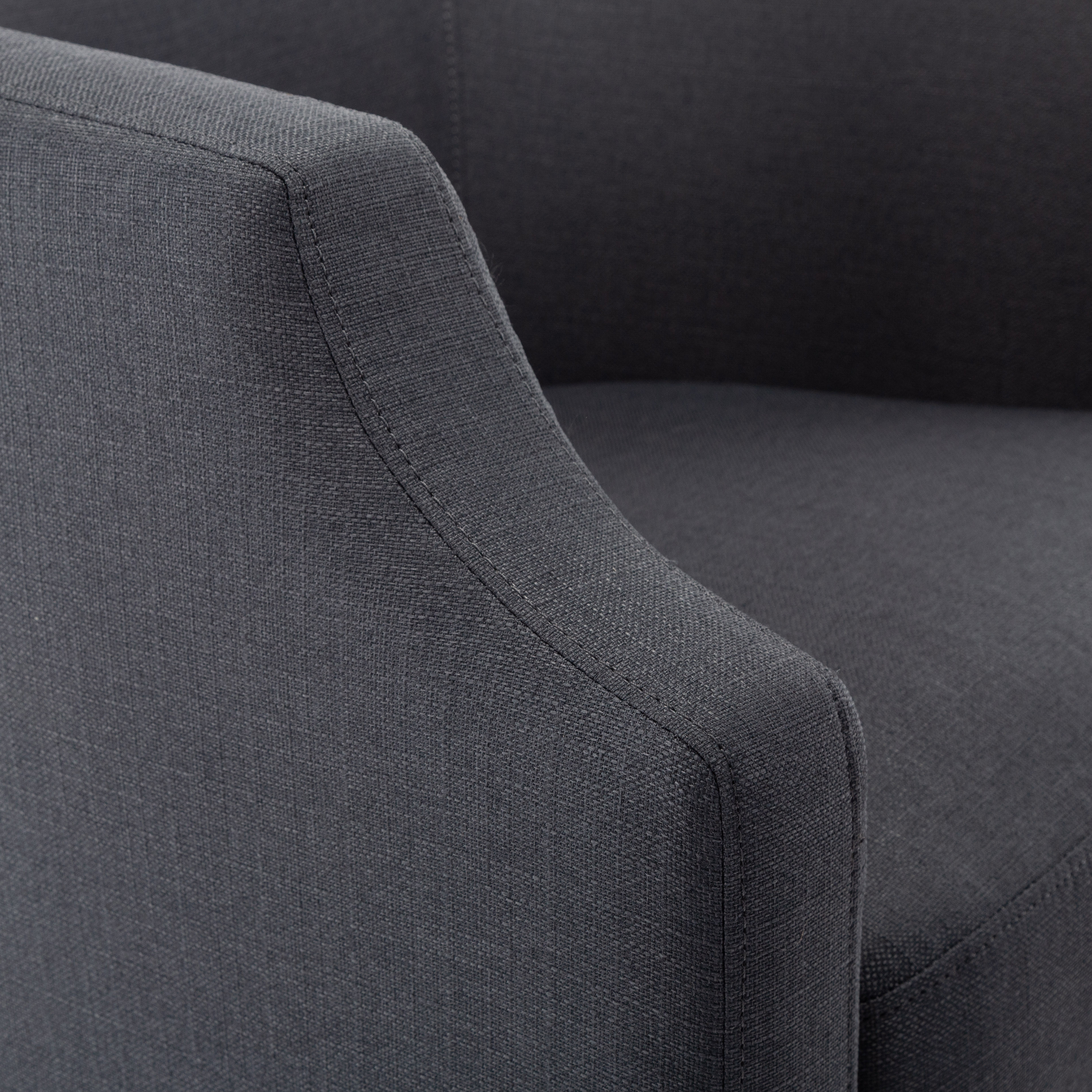 Crisply tailored with a stylish clip arm design, the Isabelle swivel barrel chair is sleek and comfortable. Perfectly proportioned with a comfortable pocket coil seat system, this swivel chair takes ease of conversation to the next level. Right sized so it will fit wonderfully in any room of the house. Available in your choice of Linen, Sky Blue or Ashen Grey.
